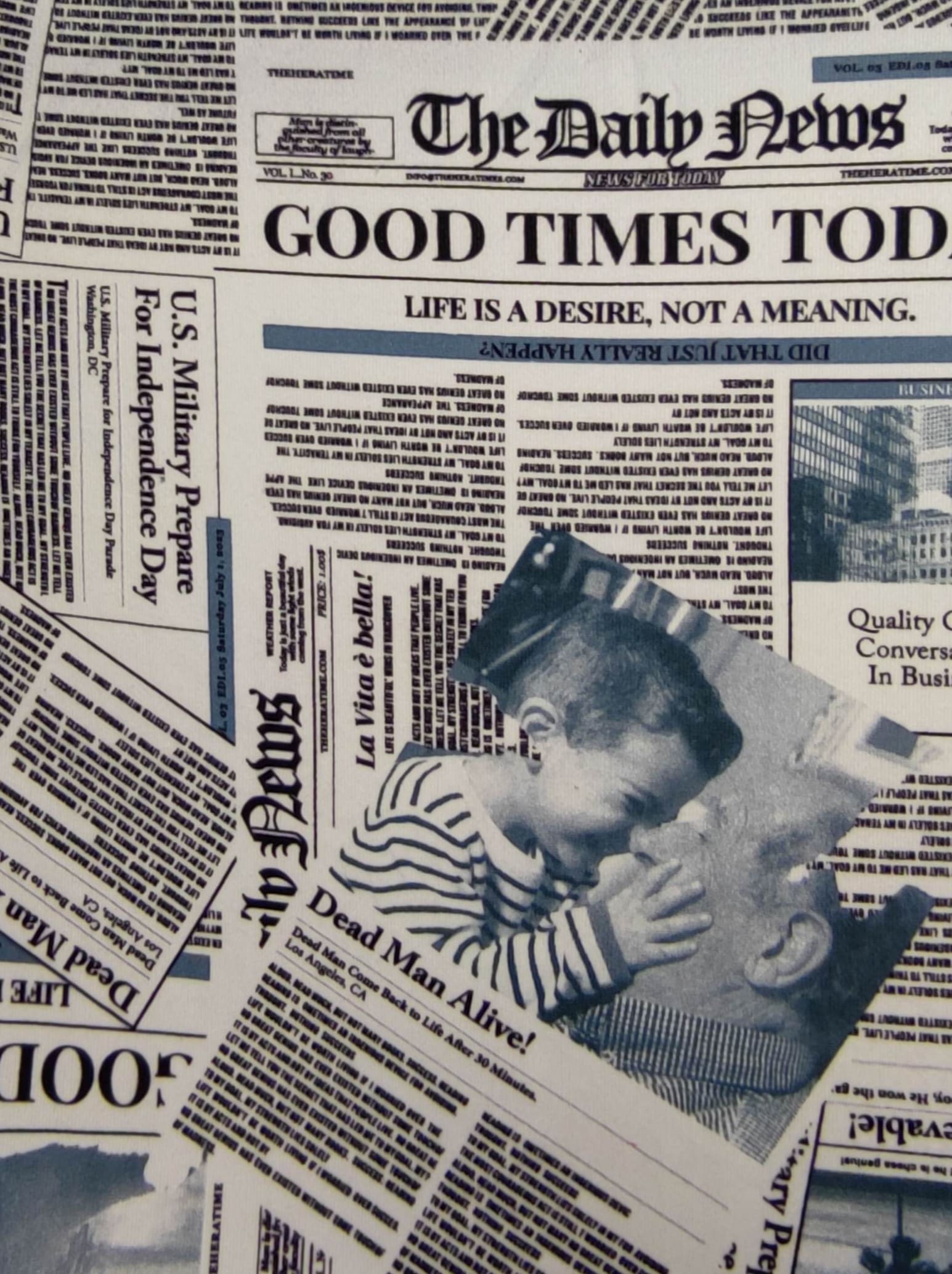 This is a very stretchy lightweight knit fabric with actual fake news. Regular Size limited to only 7. Bambino Size limited to only 8. Ankle Biter Size limited to only 2. Lil Nipper size limited to only 2. No more will be made when they are gone.