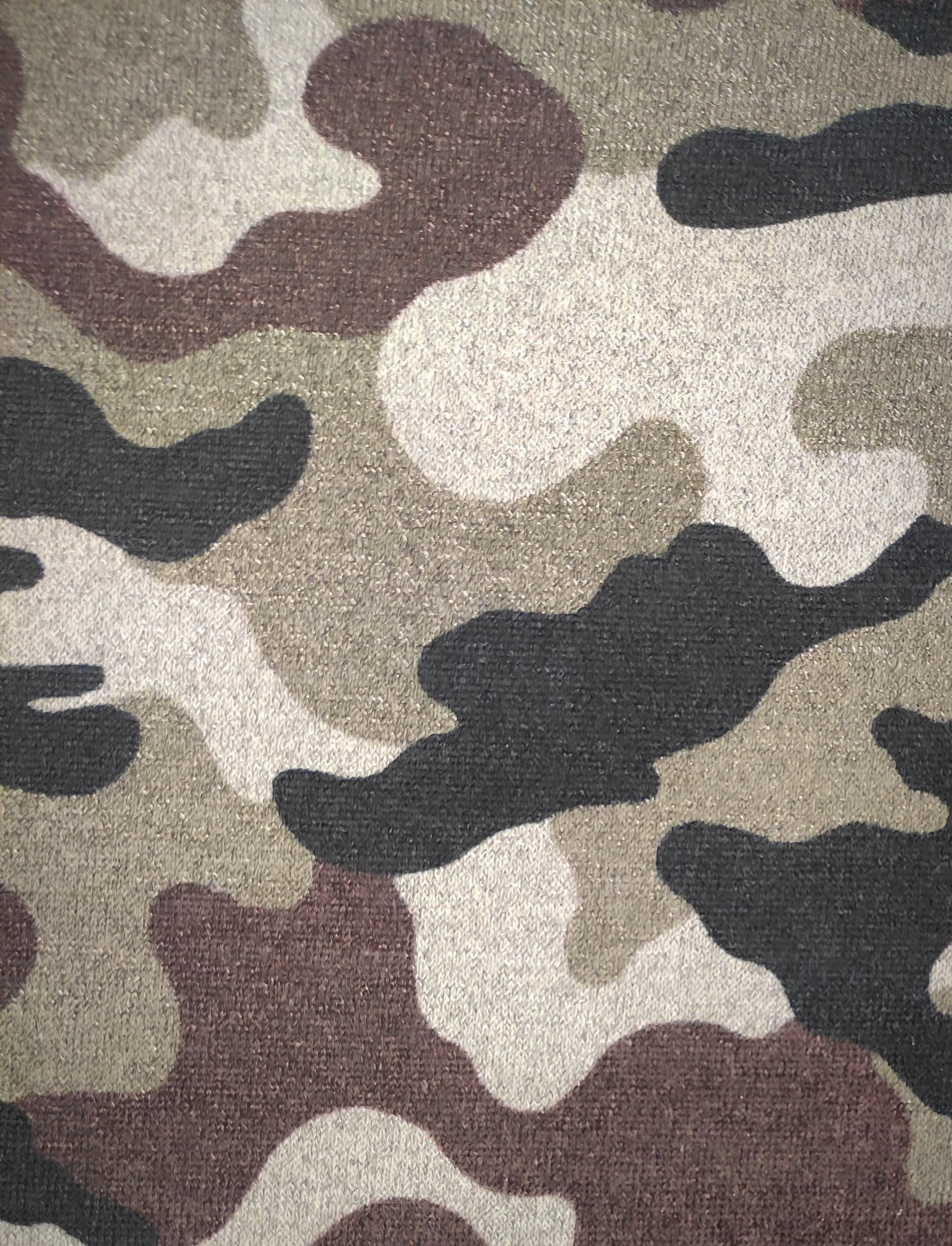 This is a very stretchy lightweight knit fabric with classic camouflage coloring. Regular Size limited to only 7. Bambino Size limited to only 8. Ankle Biter Size limited to only 2. Lil Nipper size limited to only 2. No more will be made when they are gone.