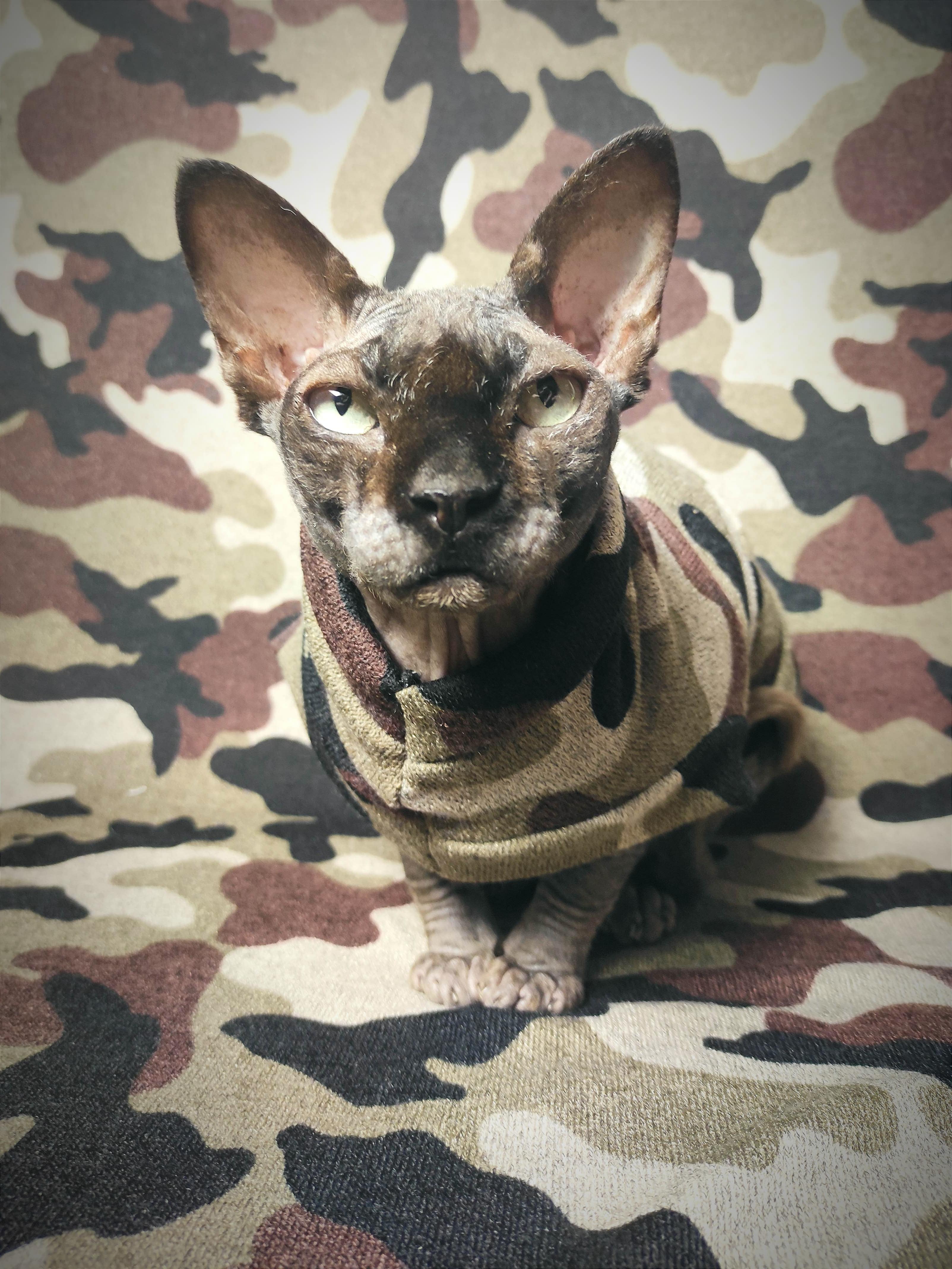 REGULAR size is for most adult hairless cats age 1 to 18. BAMBINO size fits hairless kittens age 6 months to 1 year and smaller adult cats. ANKLE BITER size fits hairless kittens 15 week to 6 month olds. LIL NIPPER size fits hairless kittens age 8 weeks to 15 week olds for when they are with the breeder or for the trip home. Custom orders are welcome for larger and smaller cats - pricing is the same - $27.50
