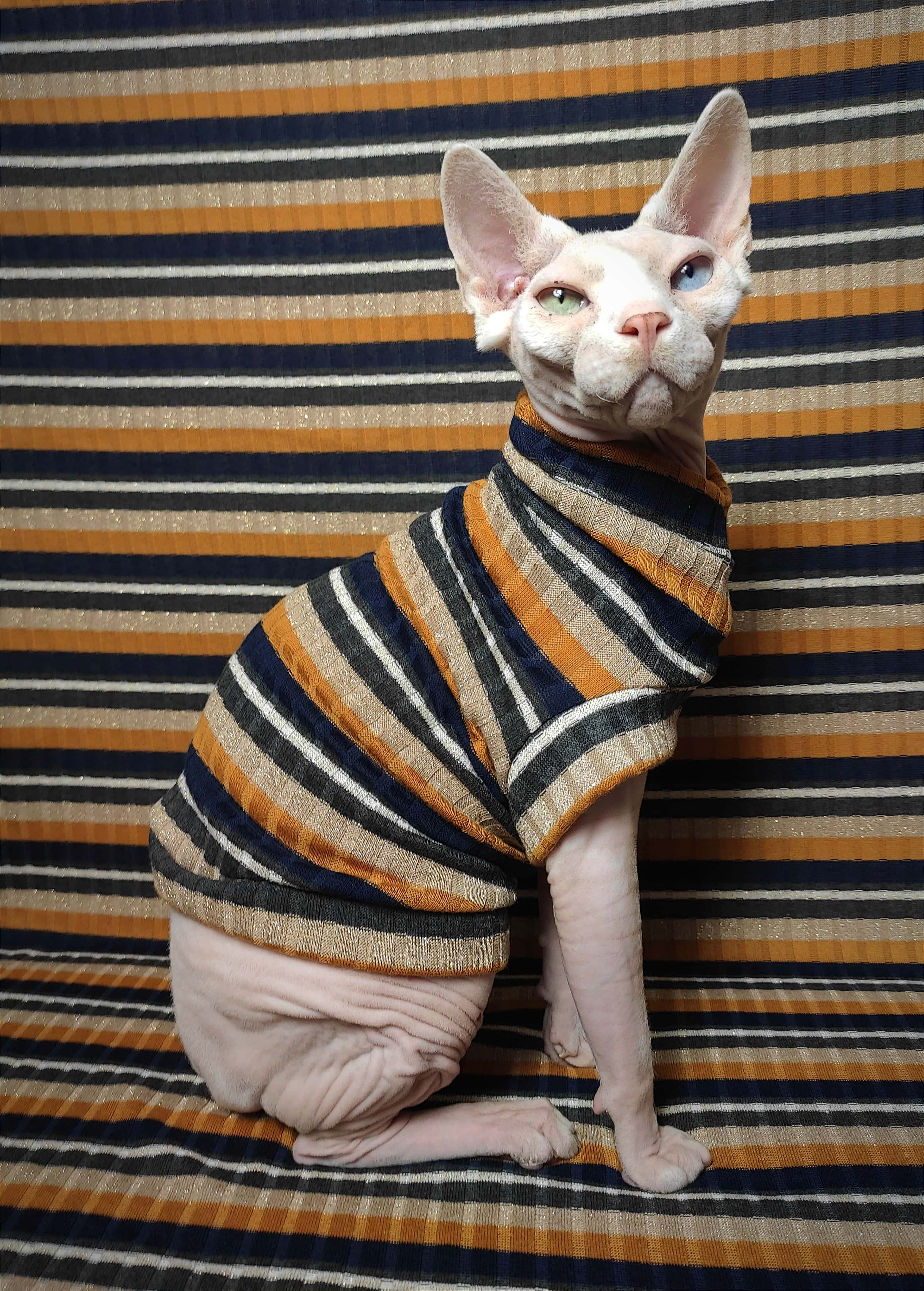 REGULAR size is for most adult hairless cats age 1 to 18. BAMBINO size fits hairless kittens age 6 months to 1 year and smaller adult cats. ANKLE BITER size fits hairless kittens 15 week to 6 month olds. LIL NIPPER size fits hairless kittens age 8 weeks to 15 week olds for when they are with the breeder or for the trip home. Custom orders are welcome for larger and smaller cats - pricing is the same - $27.50