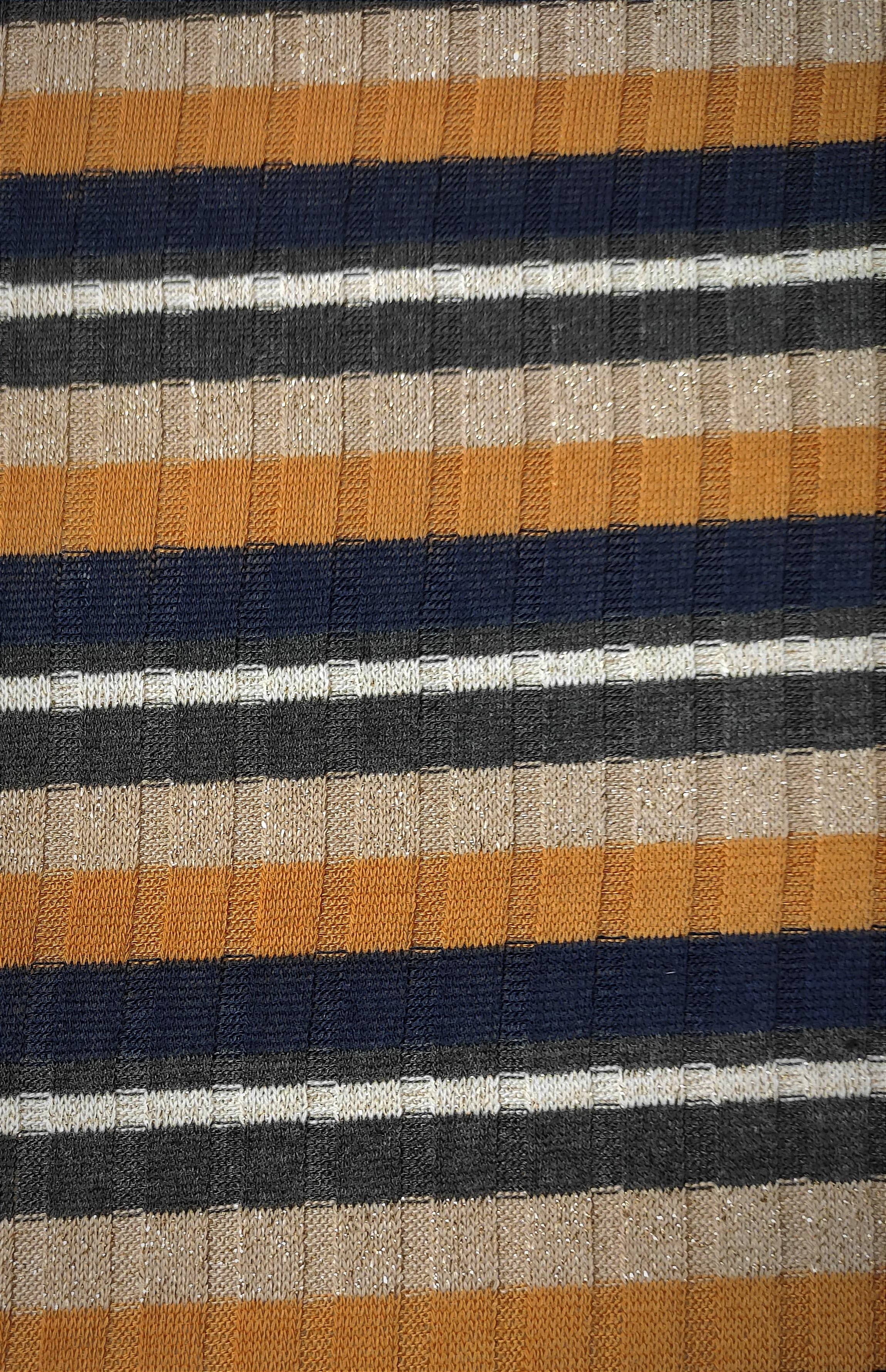 This is a very stretchy lightweight knit fabric with sparkly gold, yellow, tan, blue and green colored stripes. Regular Size limited to only 7. Bambino Size limited to only 8. Ankle Biter Size limited to only 2. Lil Nipper size limited to only 2. No more will be made when they are gone.