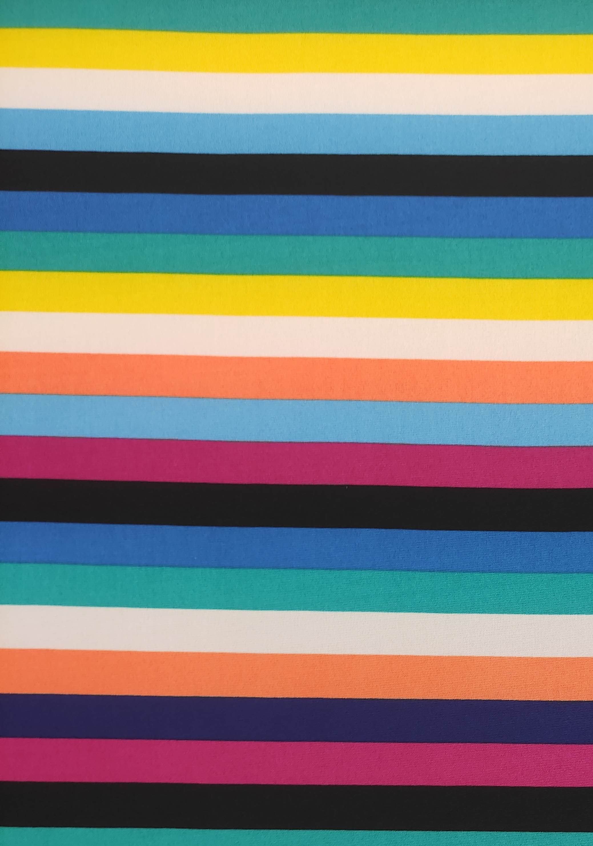 This is a beautiful lightweight stretchy poly blend fabric with thin colorful stripes and adorned with soft black velvet trim. Regular Size limited to only 9. Bambino Size is limited to only 10, Ankle Biter Size is limited to 2, Lil Nipper Size is limited to 2. No more will be made when they are gone.