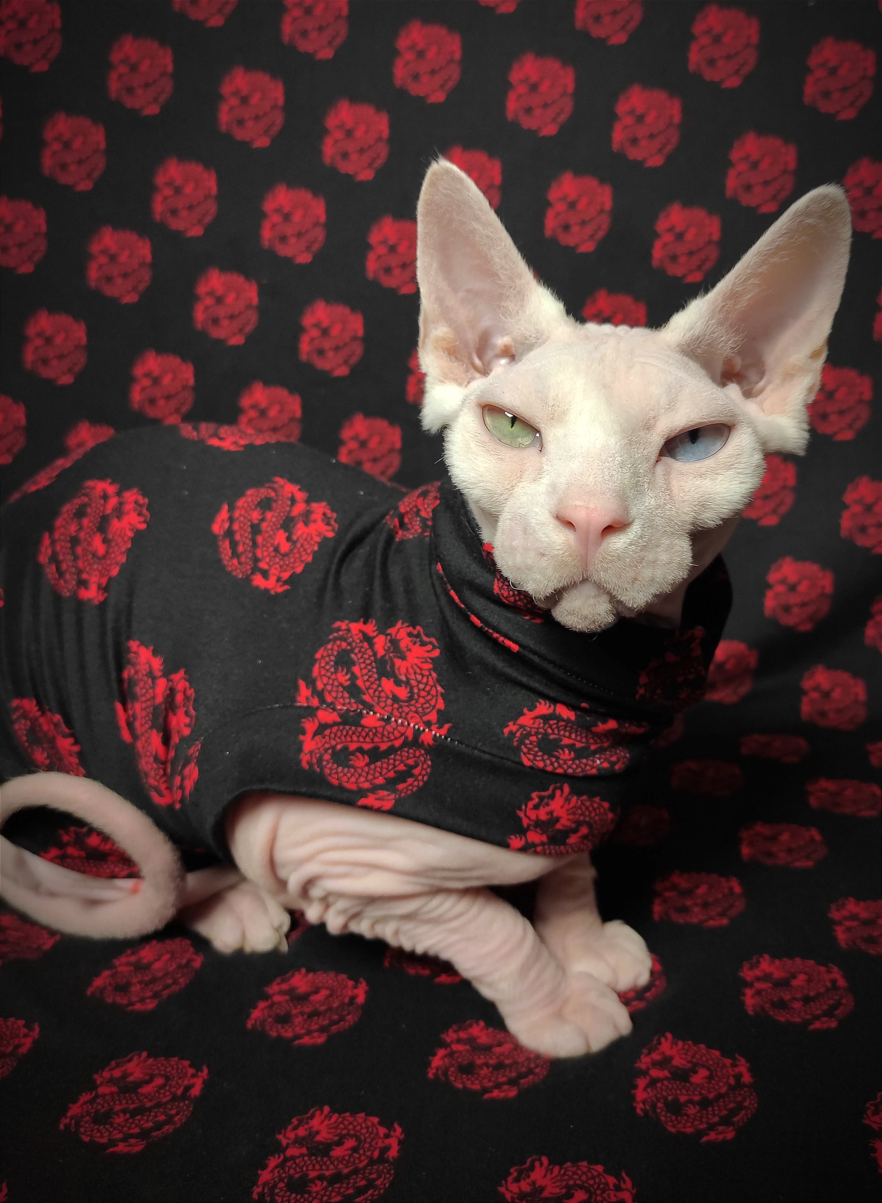 This sleepwear is a beautiful stretchy cotton blend fabric with red dragons on black background. Made with special seams that minimize the seem profile. Swag Sleepwear has a slimmer fit, larger armholes, and smaller trim to provide extra snuggly comfort for sleeping or catnapping! Regular Size limited to only 7. Bambino Size is limited to only 8, Ankle Biter Size is limited to 2, Lil Nipper Size is limited to 2. No more will be made when they are gone.