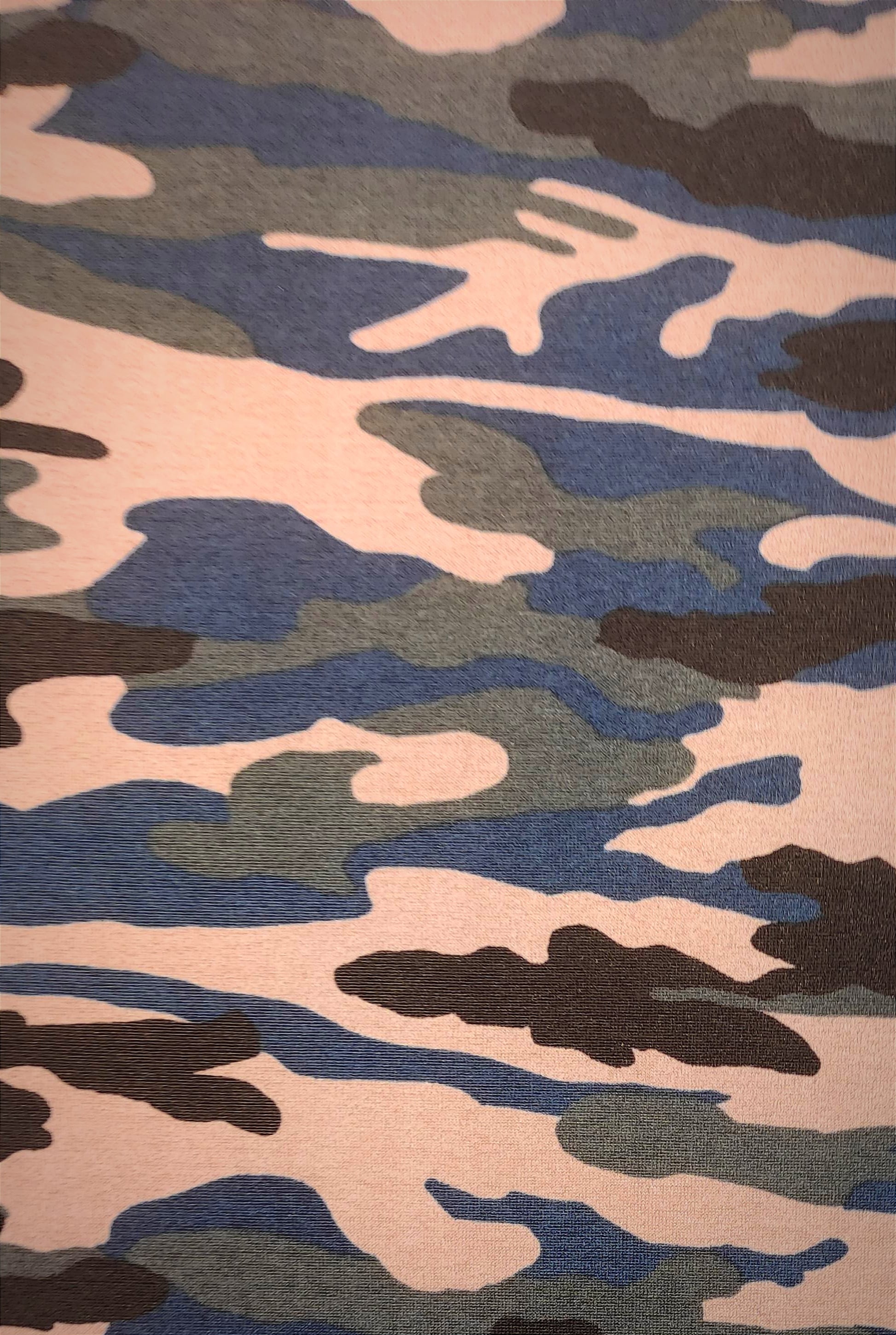 This is a very stretchy lightweight knit fabric with mainly pink and blue camouflage coloring. Regular Size limited to only 7. Bambino Size limited to only 8. Ankle Biter Size limited to only 2. Lil Nipper size limited to only 2. No more will be made when they are gone.