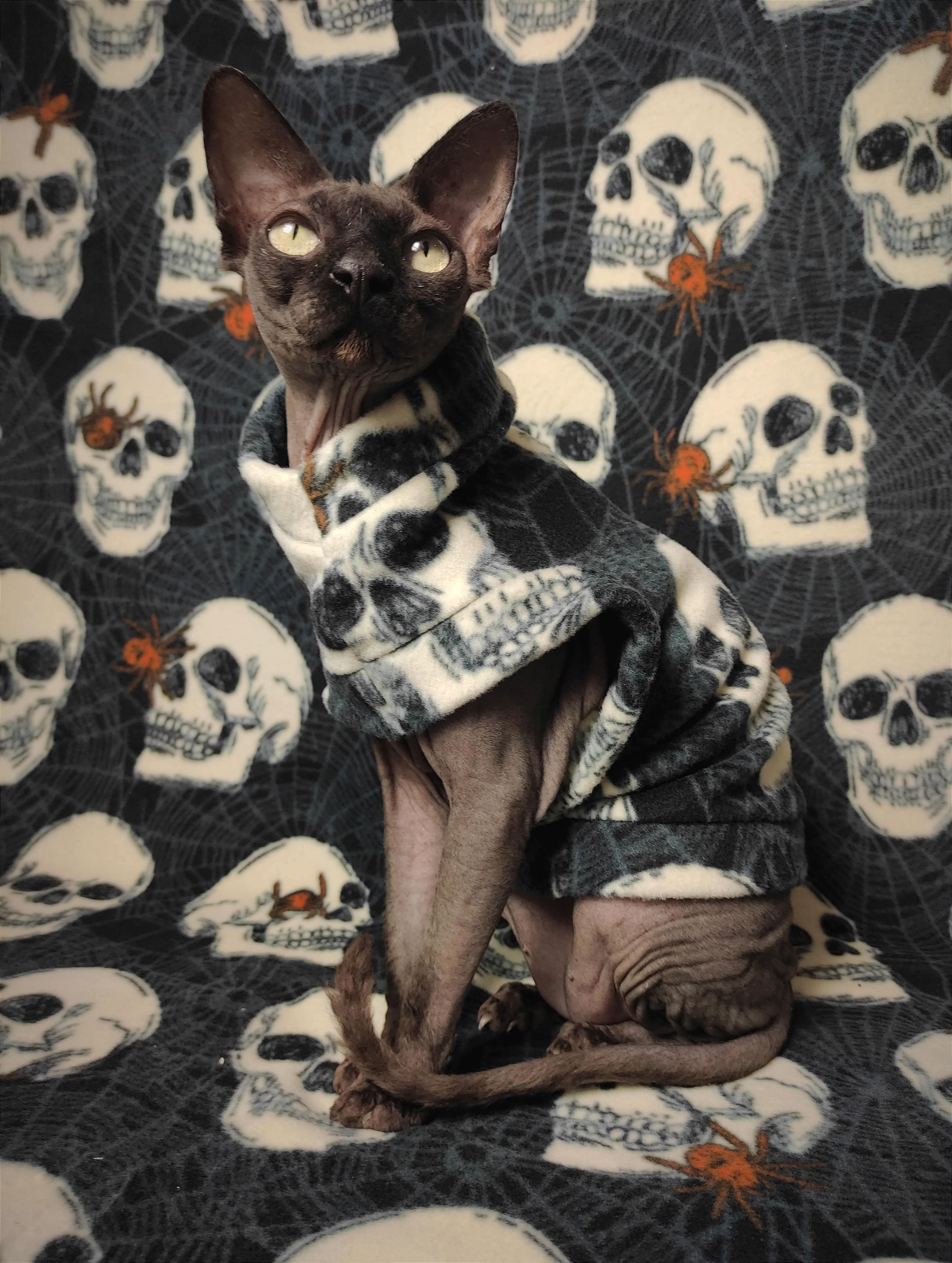 REGULAR size is for most adult hairless cats age 1 to 18. BAMBINO size fits hairless kittens age 6 months to 1 year and smaller adult cats. LIL NIPPER size fits hairless kittens age 8 weeks to 15 week olds for when they are with the breeder or for the trip home. Custom orders are welcome for larger and smaller cats - pricing is the same - $27.50