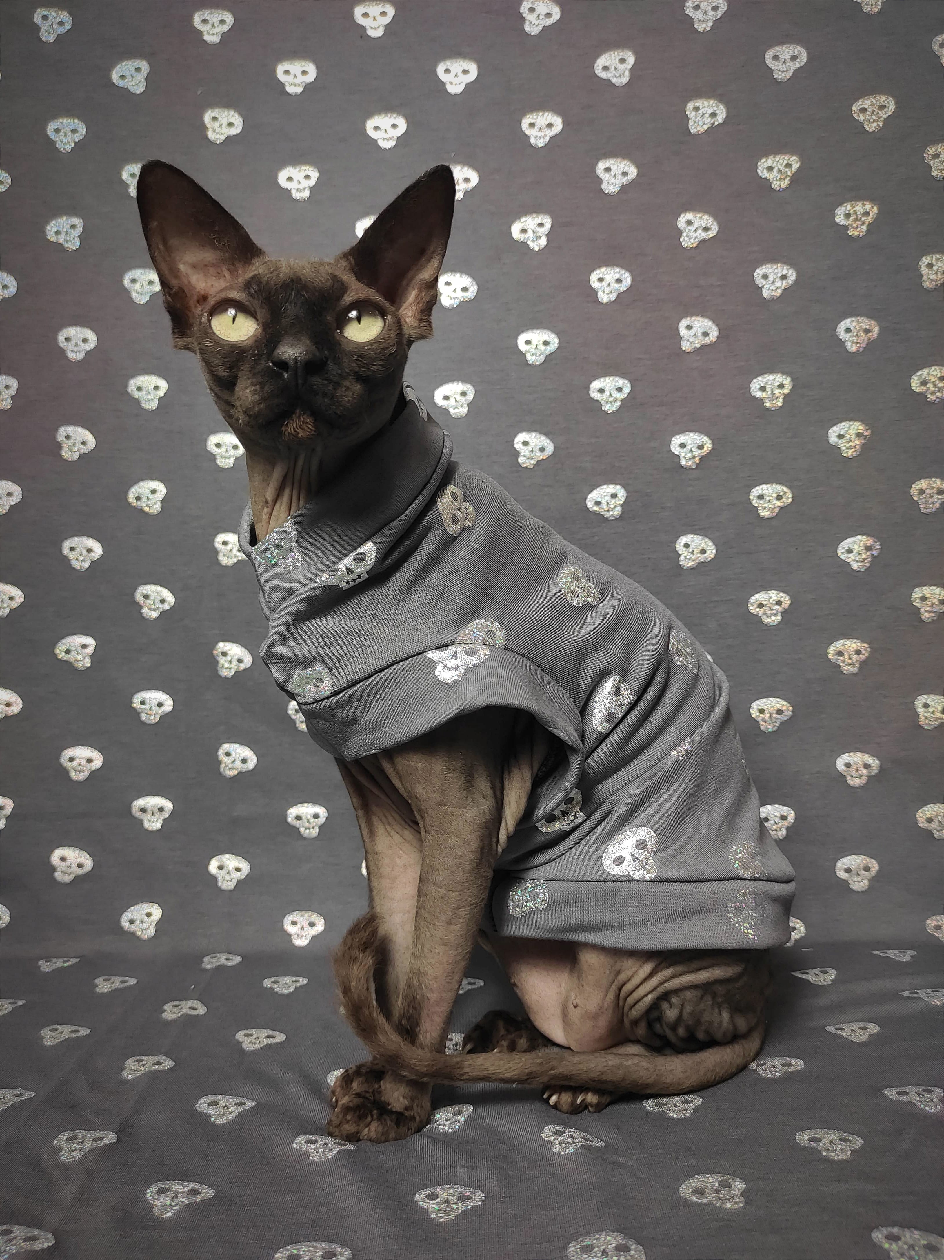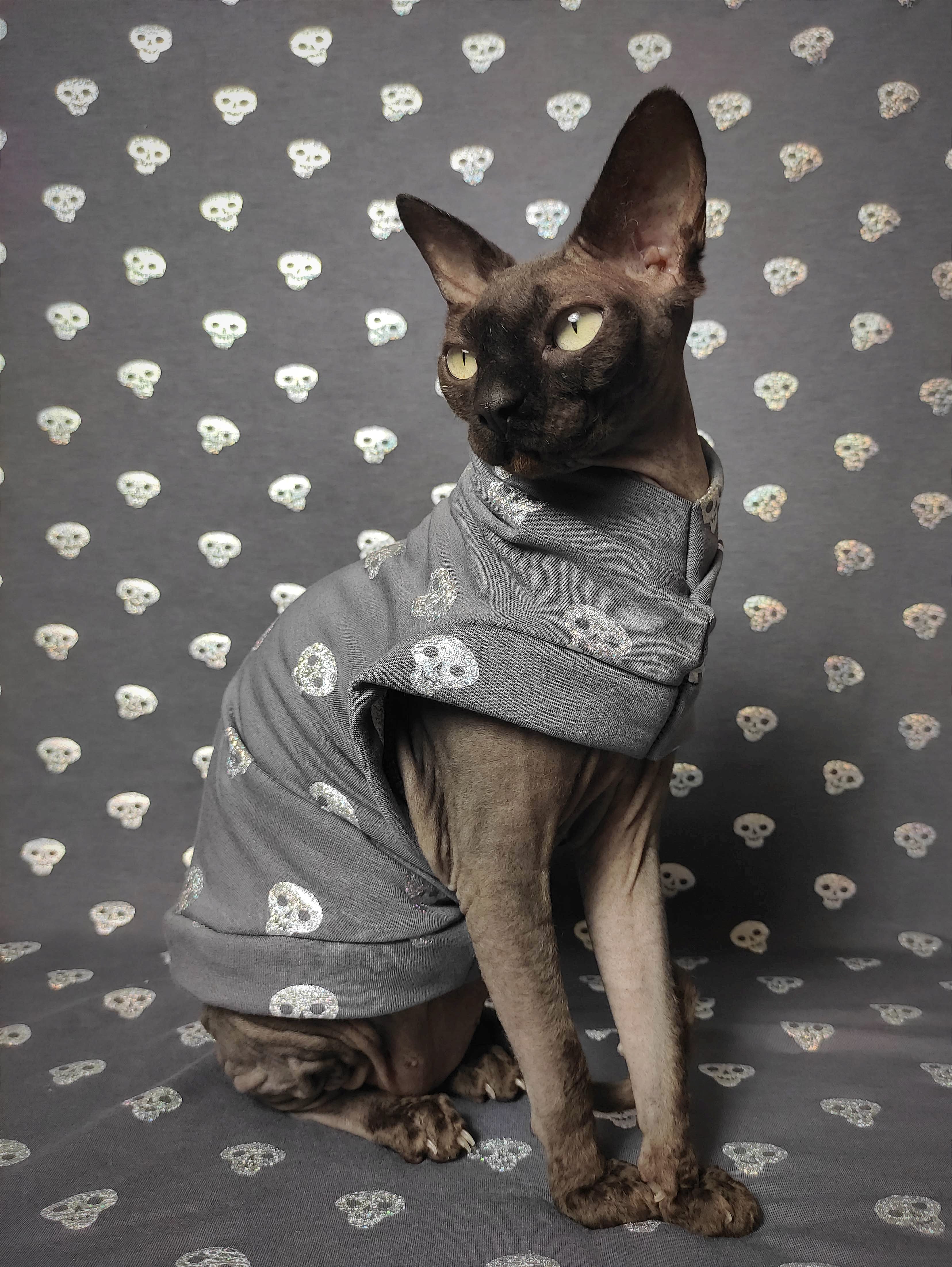 REGULAR size is for most adult hairless cats age 1 to 18. BAMBINO size fits hairless kittens age 6 months to 1 year and smaller adult cats. ANKLE BITER size fits kittens 15 weeks to 6 month olds. LIL NIPPER size fits hairless kittens age 8 weeks to 15 week olds for when they are with the breeder or for the trip home. Custom orders are welcome for larger and smaller cats - pricing is the same - $27.50