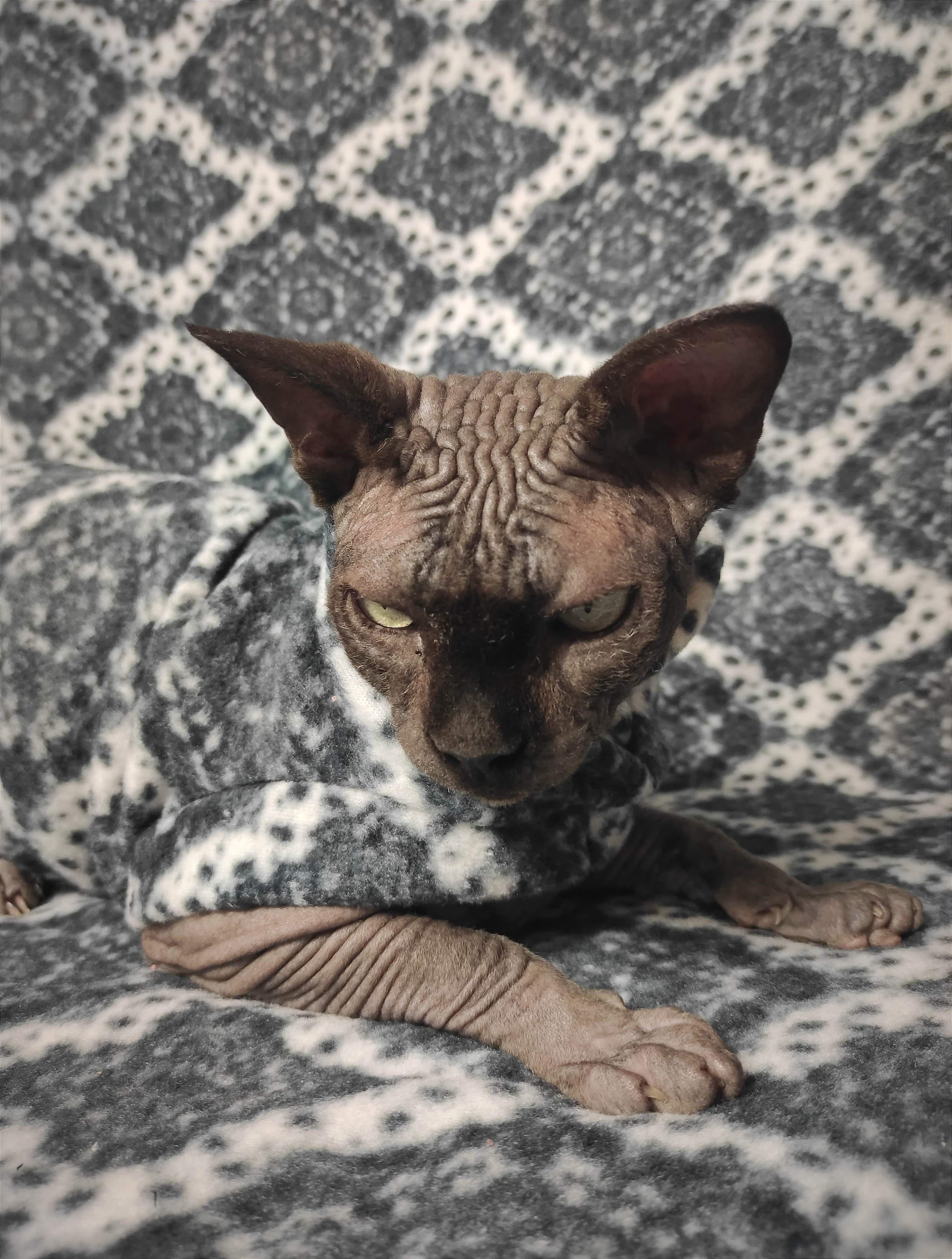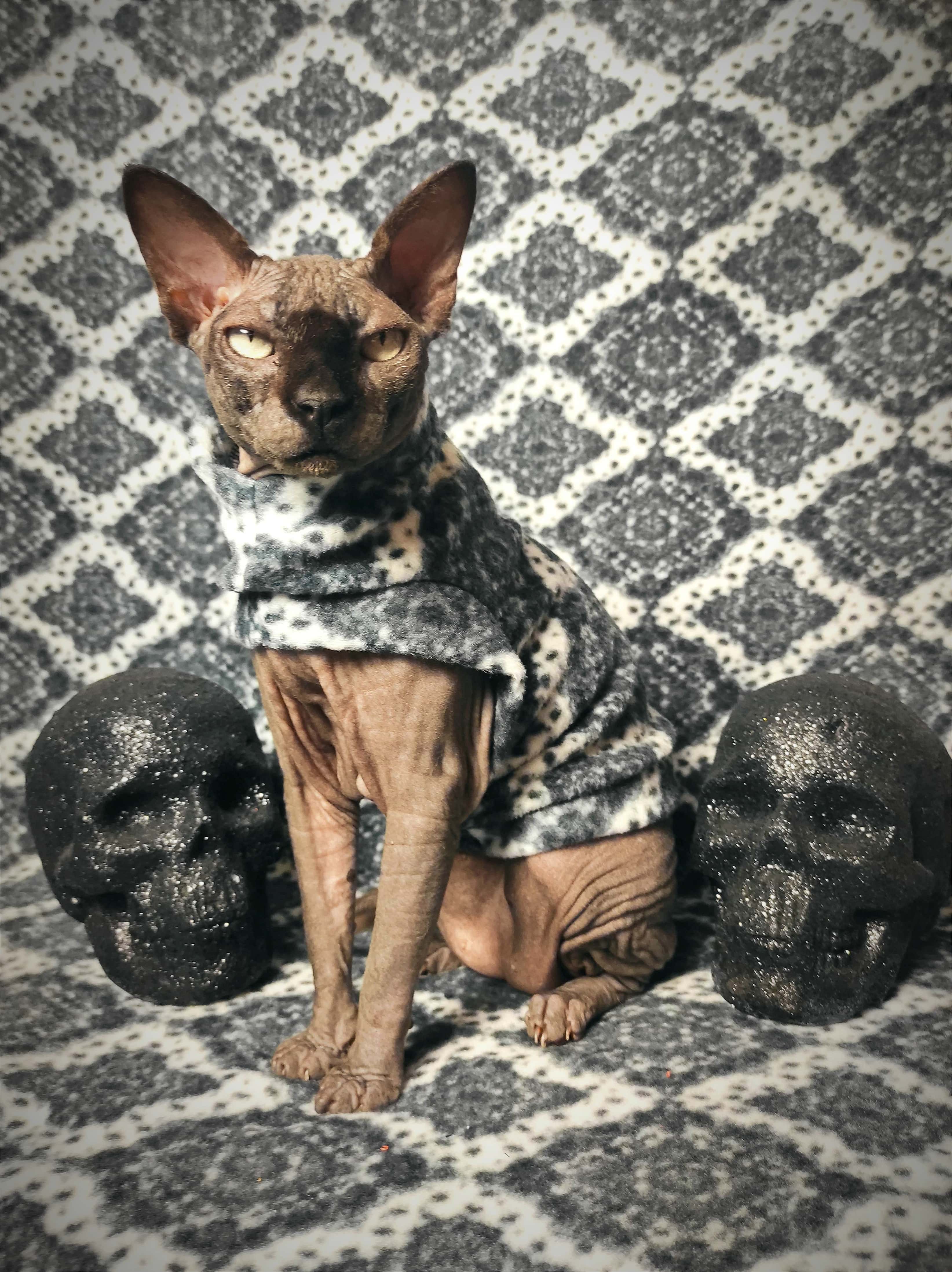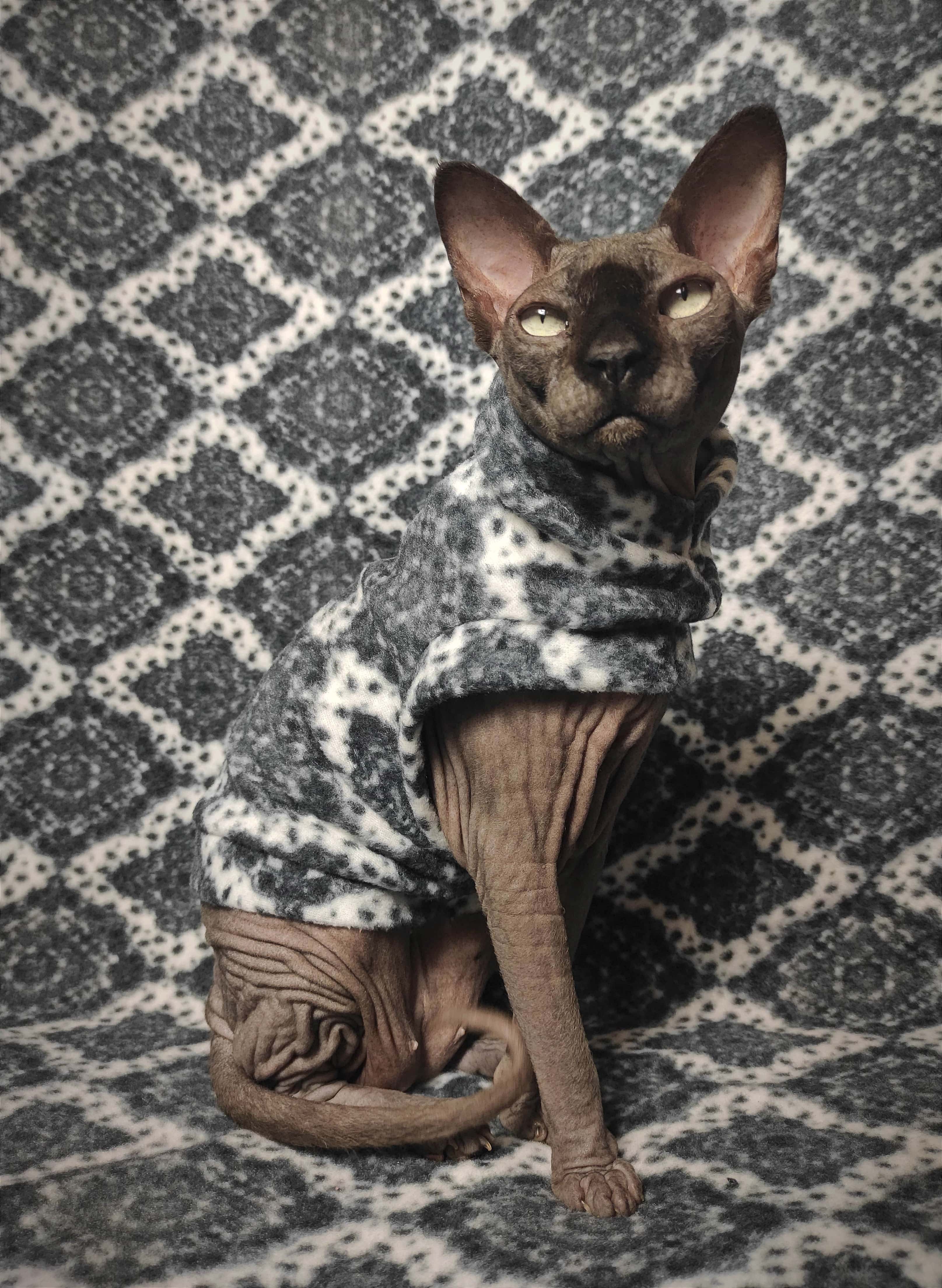 REGULAR size is for most adult hairless cats age 1 to 18. BAMBINO size fits hairless kittens age 6 months to 1 year and smaller adult cats. LIL NIPPER size fits hairless kittens age 8 weeks to 15 week olds for when they are with the breeder or for the trip home. Custom orders are welcome for larger and smaller cats - pricing is the same - $27.50