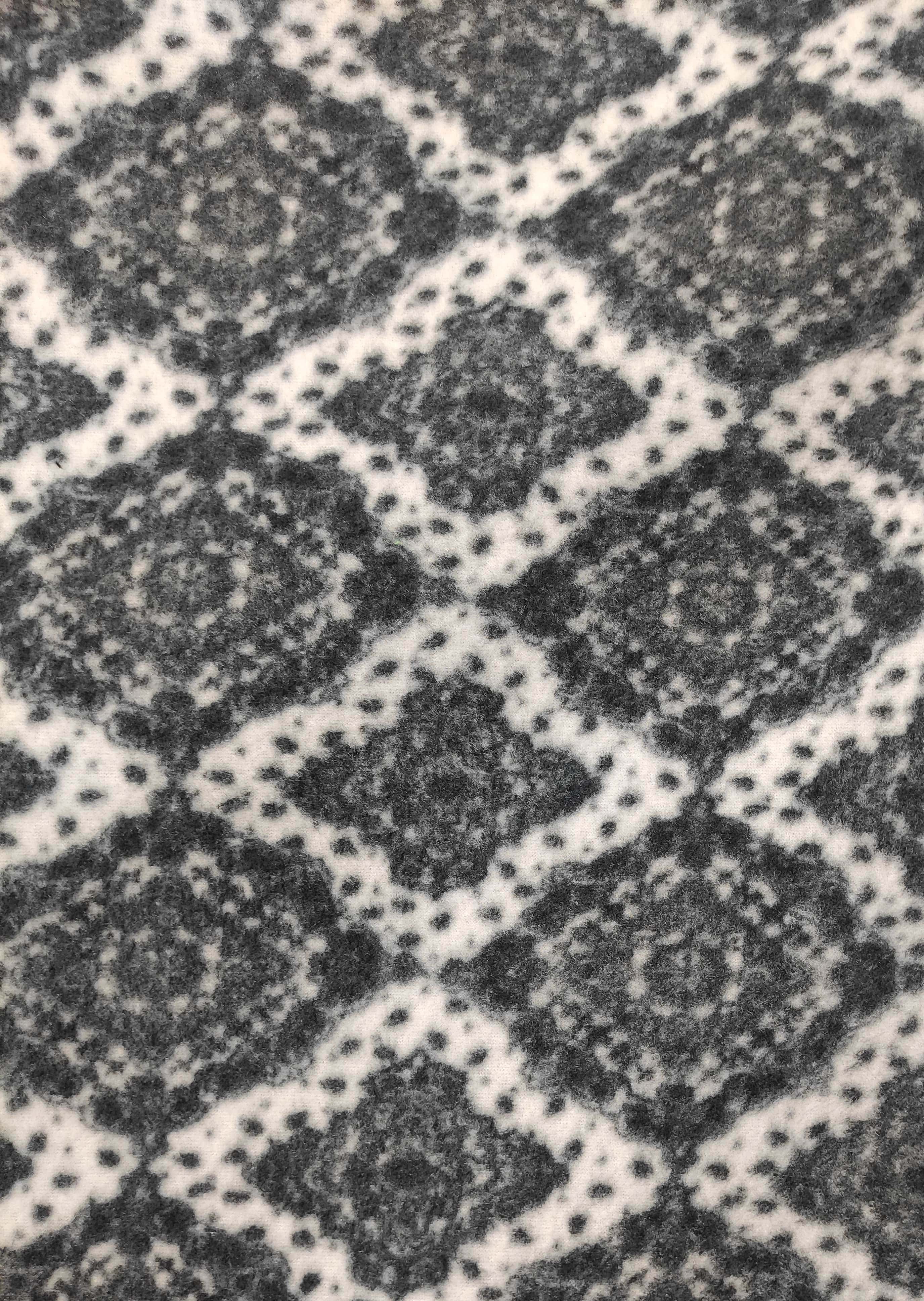 This is a soft medium weight stretchy fleece with repeating wallpaper pattern 😻