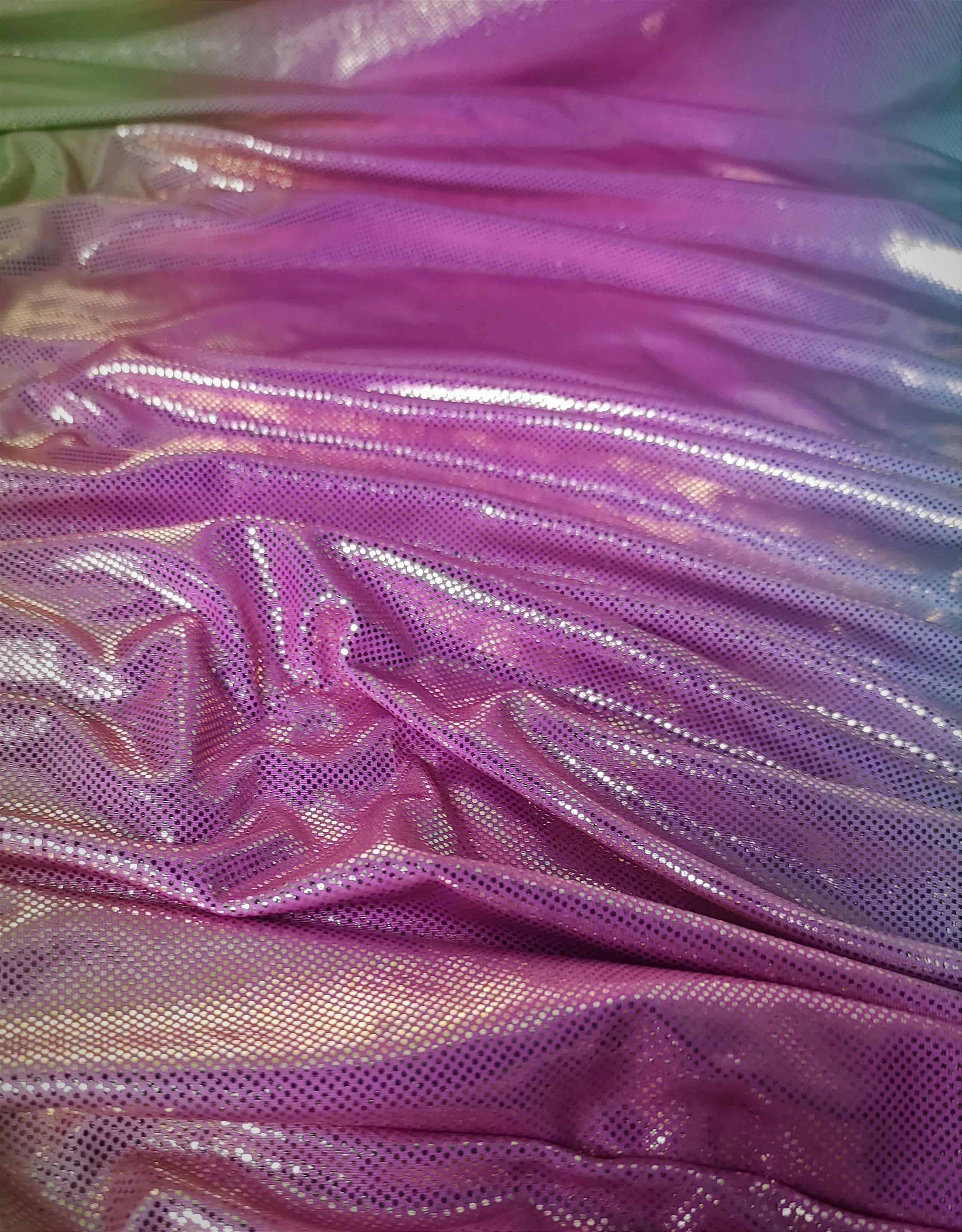 This is a stretchy and shiny lightweight metallic fabric with rainbow colors 😻