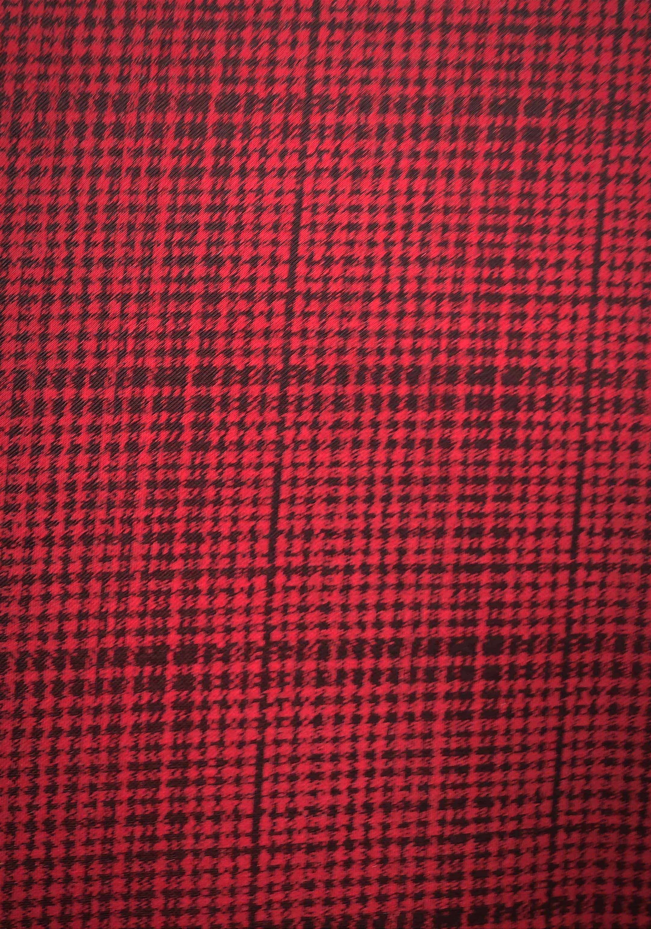 This is a lightweight stretchy cotton blend fabric with woven red and black plaid pattern.