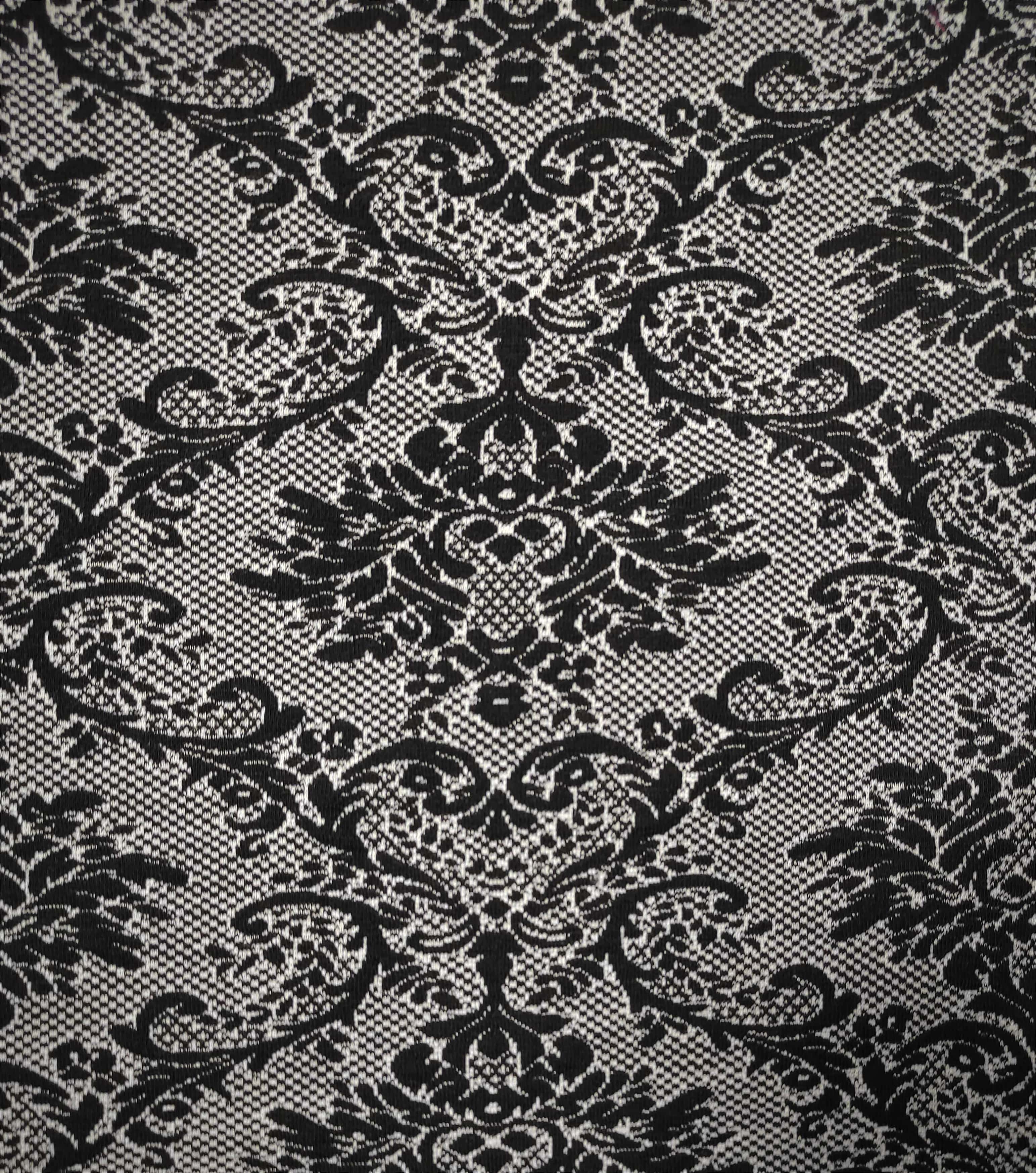 This is a beautiful medium weight stretch knit fabric that features a woven repeating gothic flourish pattern. Regular Size limited to only 9. Bambino Size is limited to only 7, Ankle Biter Size is limited to 2, Lil Nipper Size is limited to 2. No more will be made when they are gone.