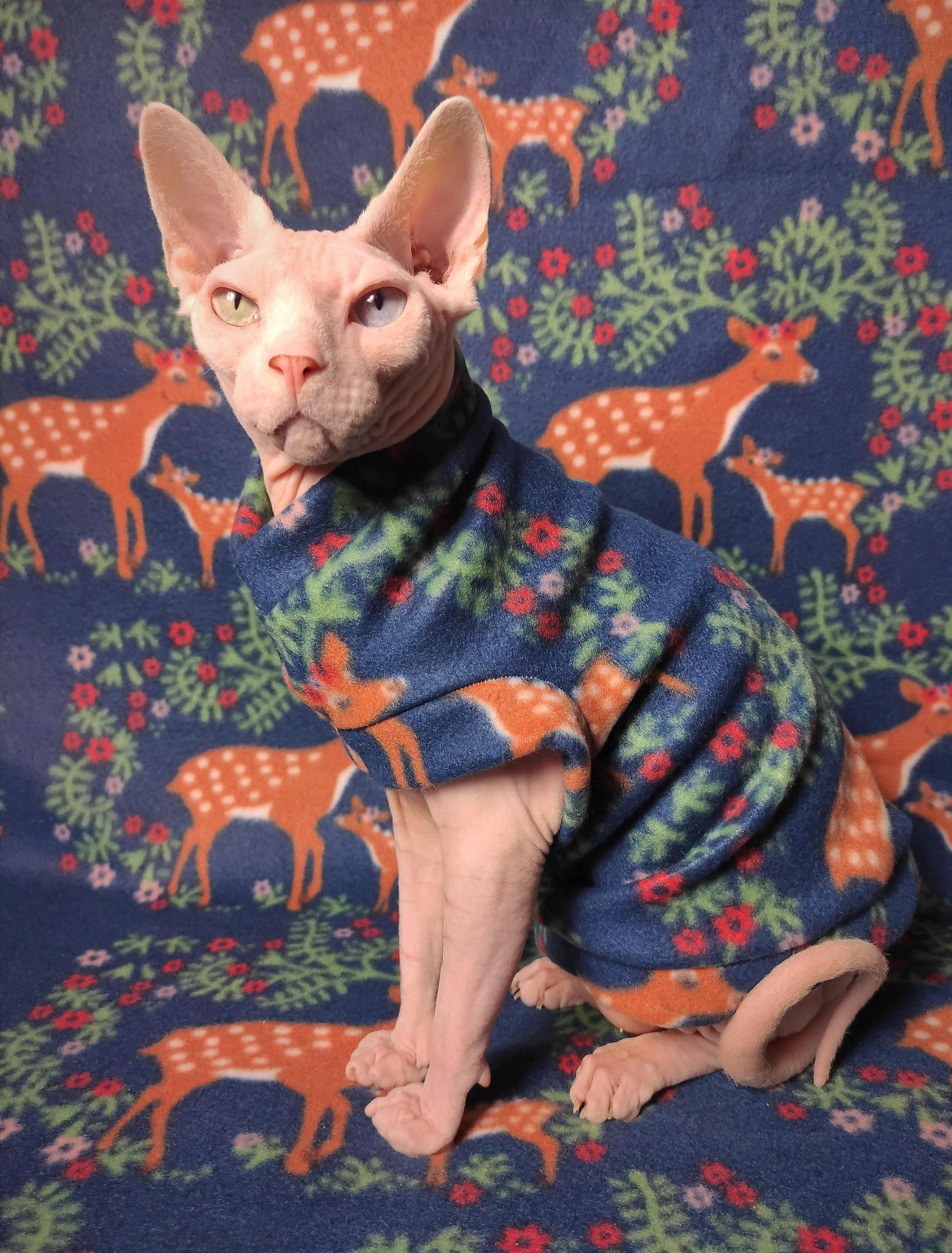 REGULAR size is for most adult hairless cats age 1 to 18. BAMBINO size fits hairless kittens age 6 months to 1 year and smaller adult cats. ANKLE BITER size fits hairless kittens 15 week to 6 month olds. LIL NIPPER size fits hairless kittens age 8 weeks to 15 week olds for when they are with the breeder or for the trip home. Custom orders are welcome for larger and smaller cats - pricing is the same - $27.50
