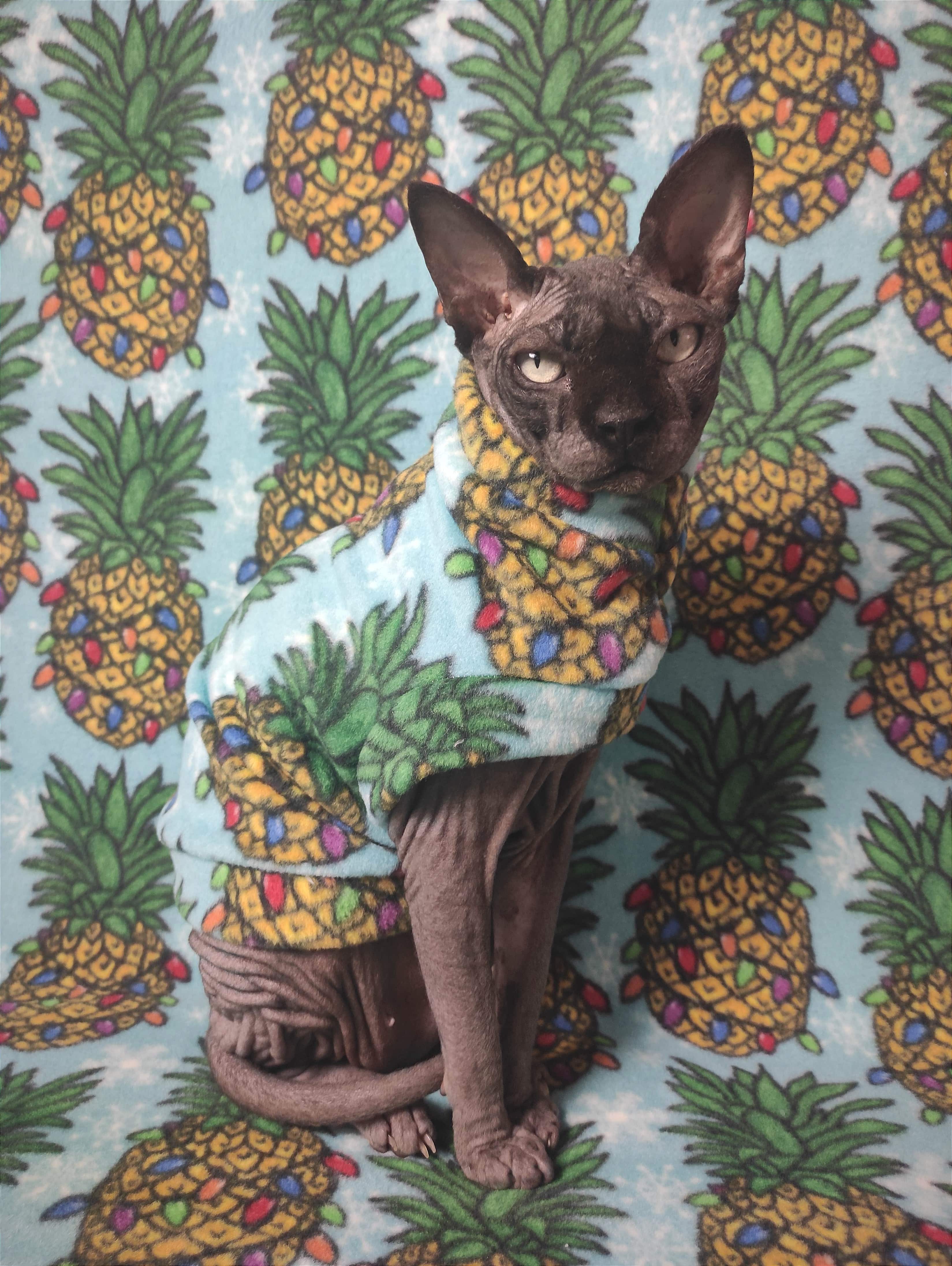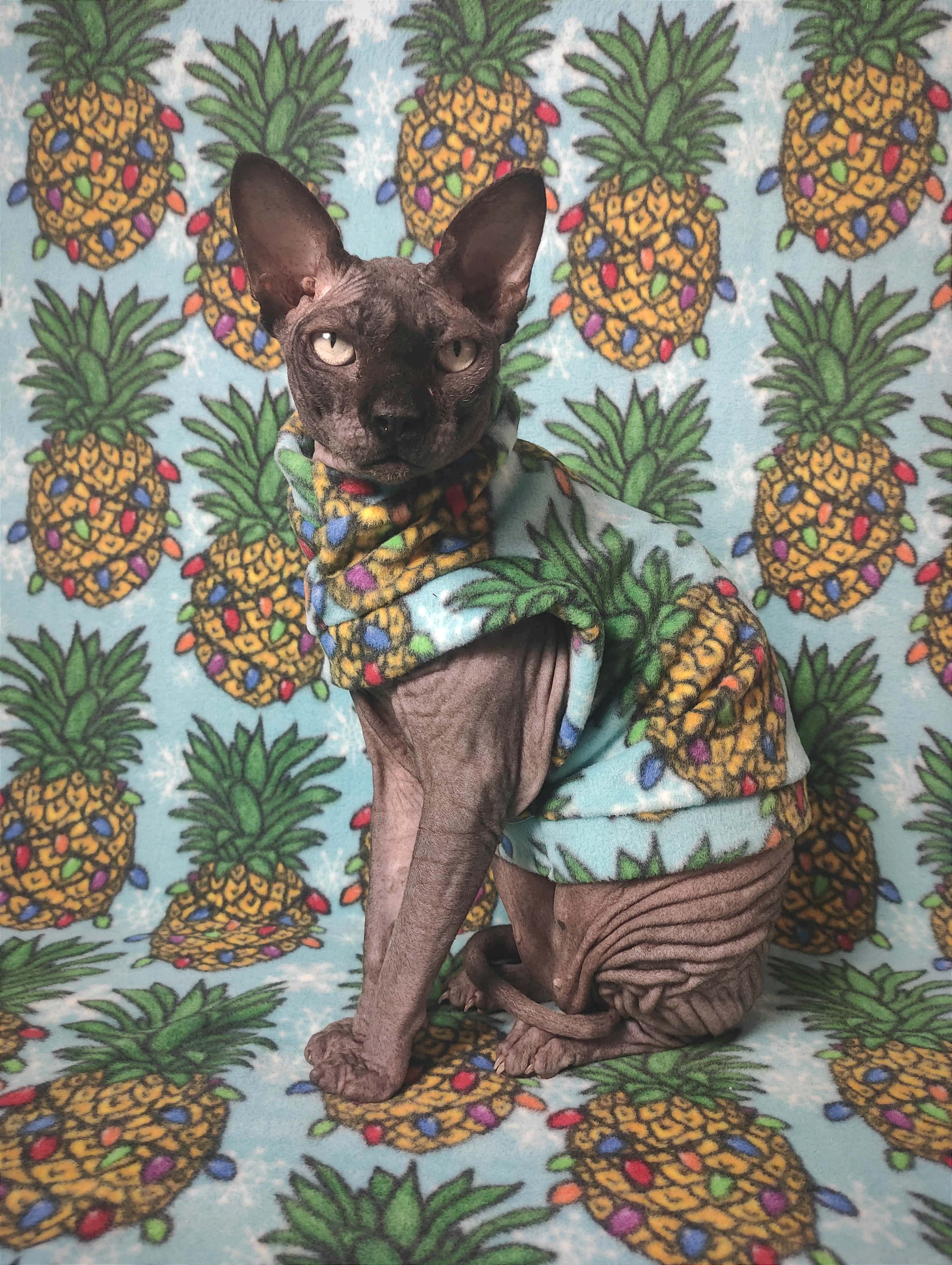 REGULAR size is for most adult hairless cats age 1 to 18. BAMBINO size fits hairless kittens age 6 months to 1 year and smaller adult cats. ANKLE BITER size fits hairless kittens 15 week to 6 month olds. LIL NIPPER size fits hairless kittens age 8 weeks to 15 week olds for when they are with the breeder or for the trip home. Custom orders are welcome for larger and smaller cats - pricing is the same - $27.50