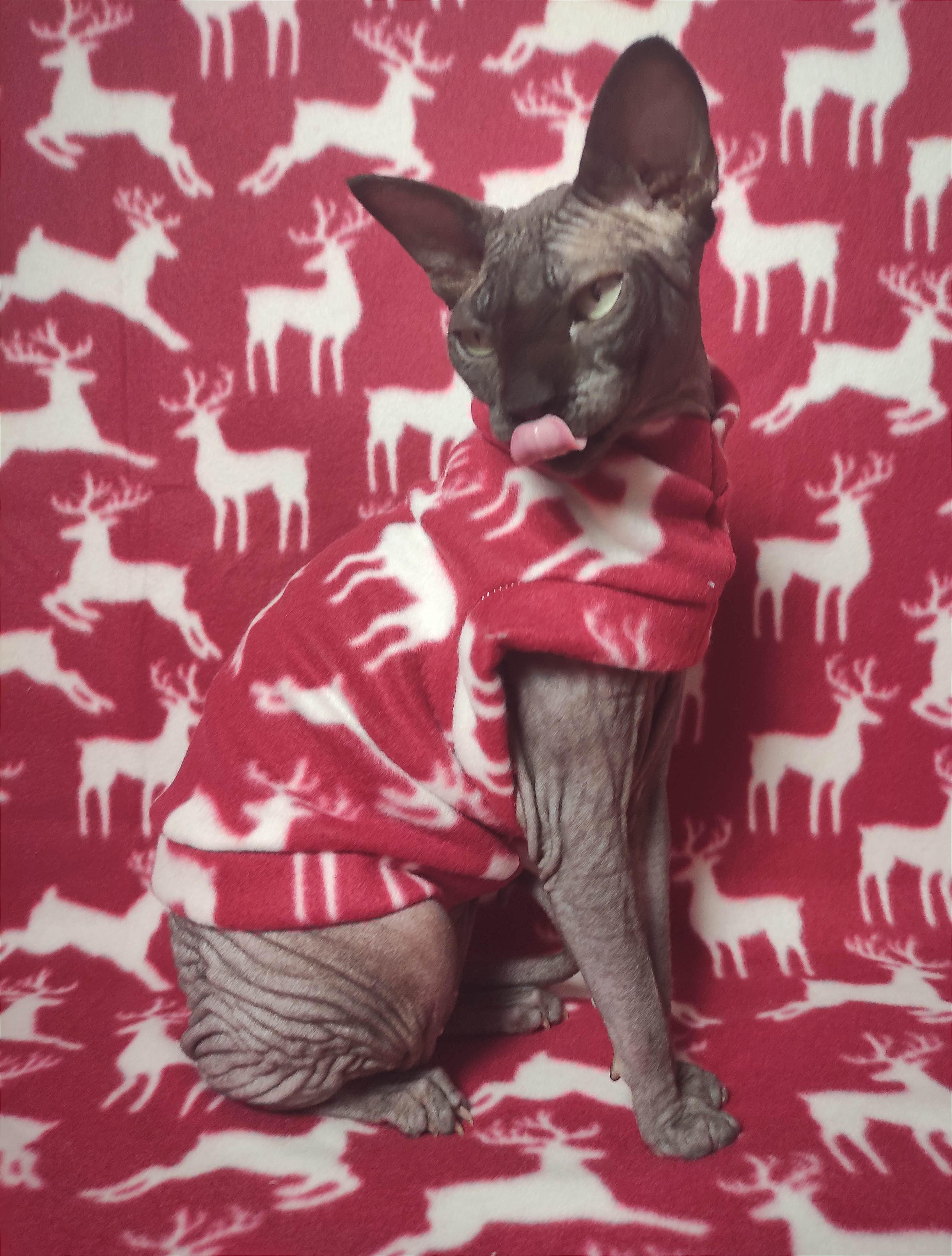 REGULAR size is for most adult hairless cats age 1 to 18. BAMBINO size fits hairless kittens age 6 months to 1 year and smaller adult cats. ANKLE BITER size fits hairless kittens 15 week to 6 month olds. LIL NIPPER size fits hairless kittens age 8 weeks to 15 week olds for when they are with the breeder or for the trip home. Custom orders are welcome for larger and smaller cats - pricing is the same - $27.50