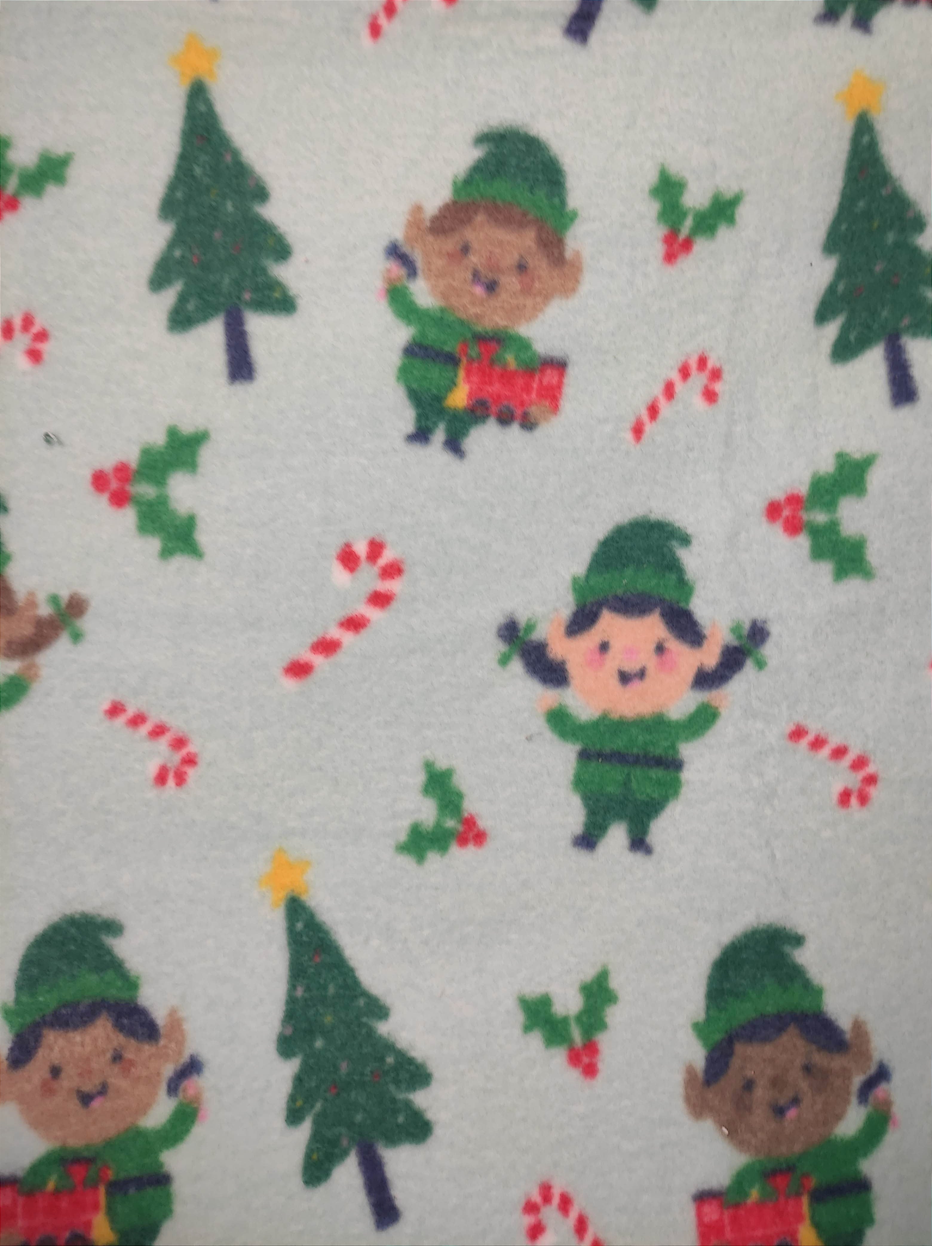 This is a soft stretchy lightweight fleece with inclusive elves with Xmas icons on light blue background. Regular Size limited to only 7. Bambino Size limited to only 7, Ankle Biter Size limited to only 2. Lil Nipper Size limited to only 2. No more will be made when they are gone.