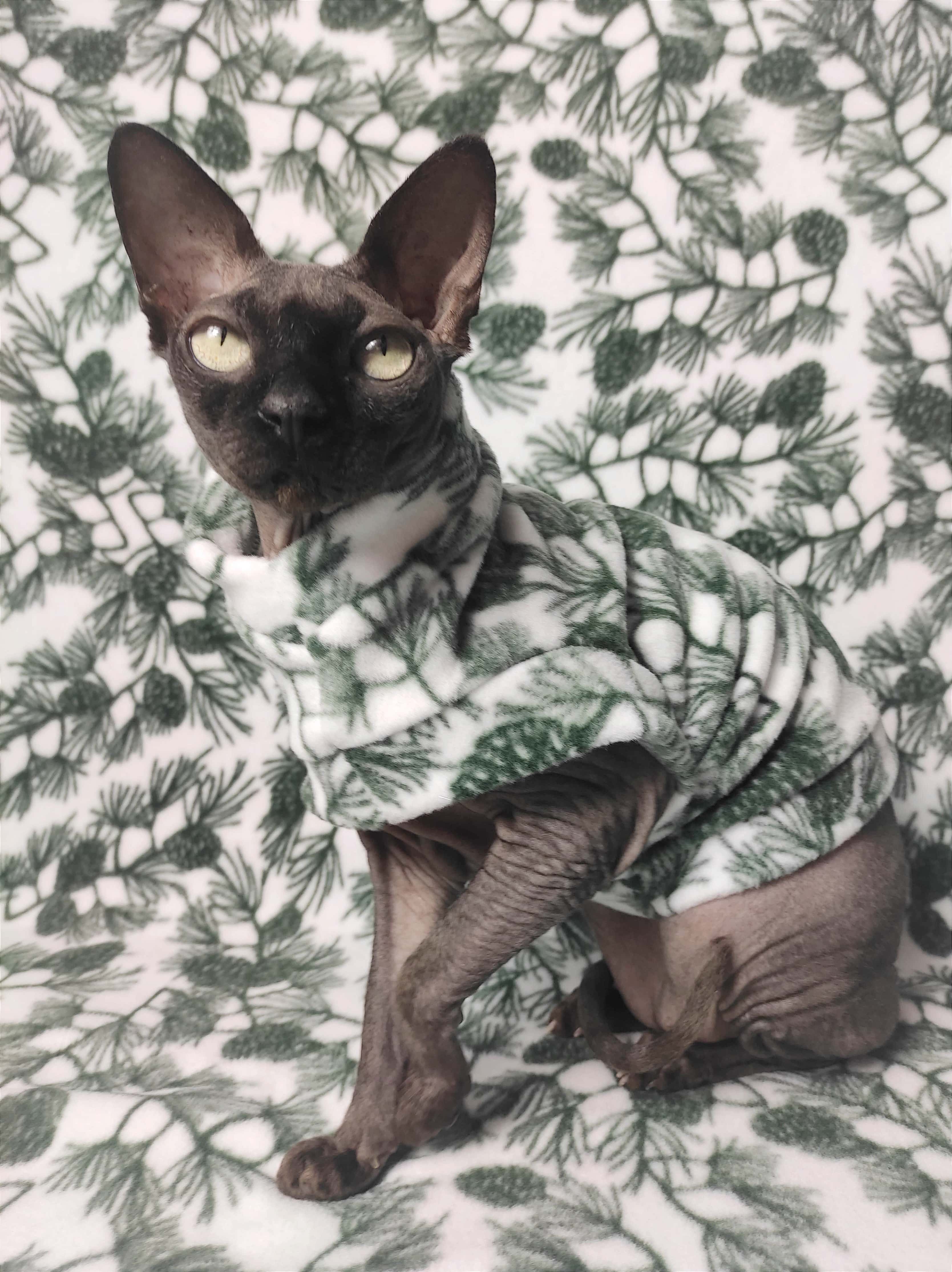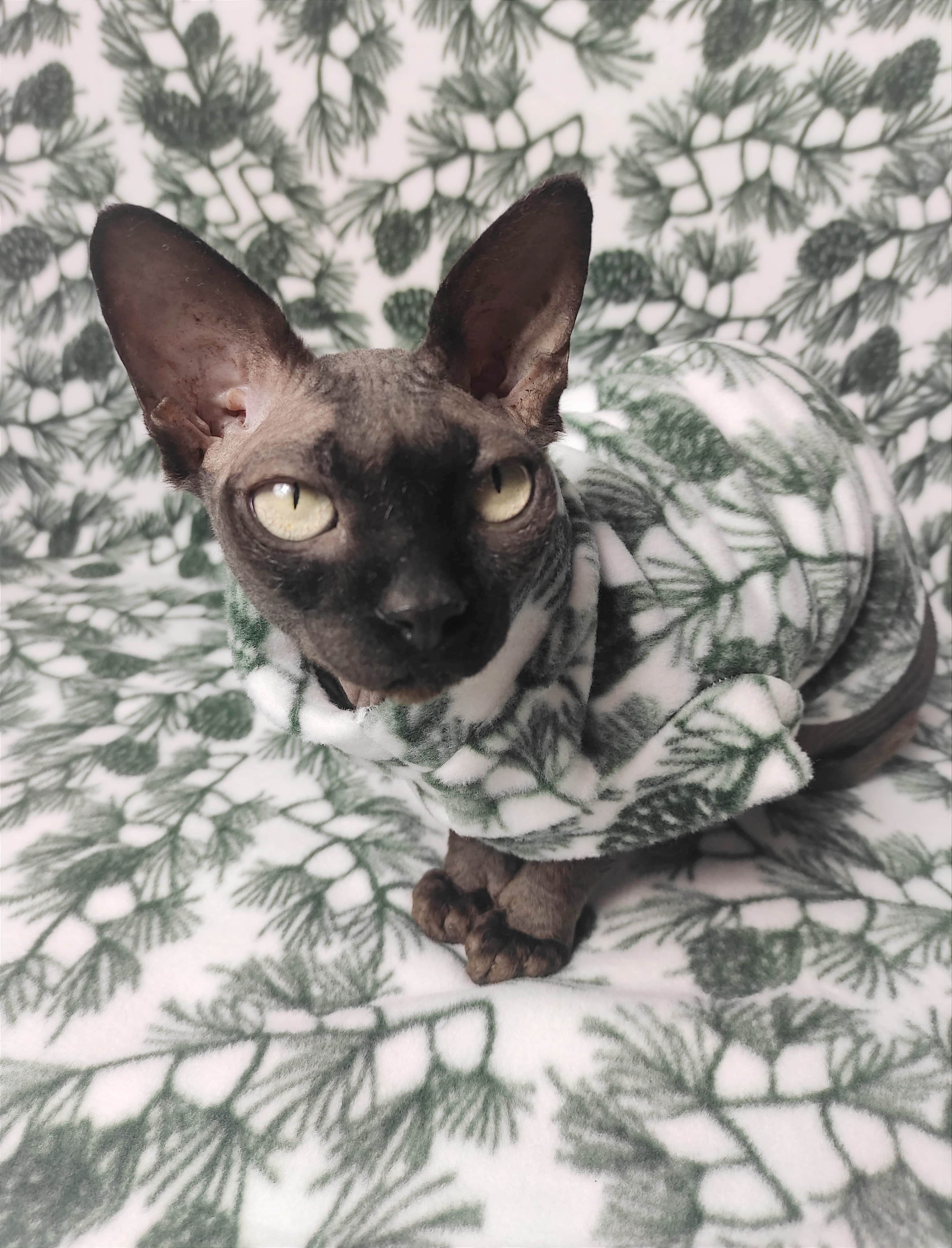 REGULAR size is for most adult hairless cats age 1 to 18. BAMBINO size fits hairless kittens age 6 months to 1 year and smaller adult cats. ANKLE BITER size fits hairless kittens 15 week to 6 month olds. LIL NIPPER size fits hairless kittens age 8 weeks to 15 week olds for when they are with the breeder or for the trip home. Custom orders are welcome for larger and smaller cats - pricing is the same - $27.50