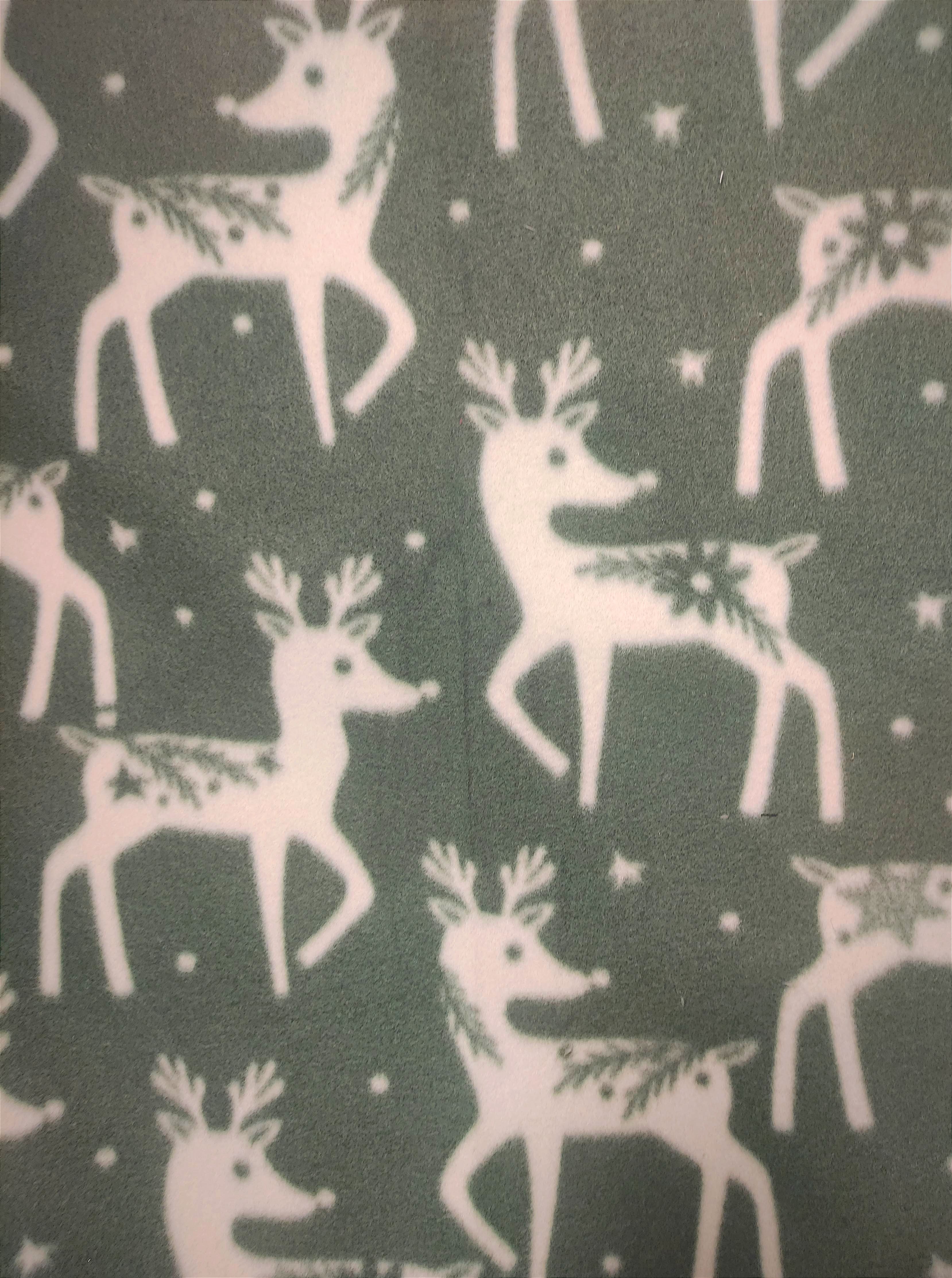 This is a soft stretchy medium weight fleece with deer on light sage green background. Regular Size limited to only 7. Bambino Size limited to only 7, Ankle Biter Size limited to only 2. Lil Nipper Size limited to only 2. No more will be made when they are gone.