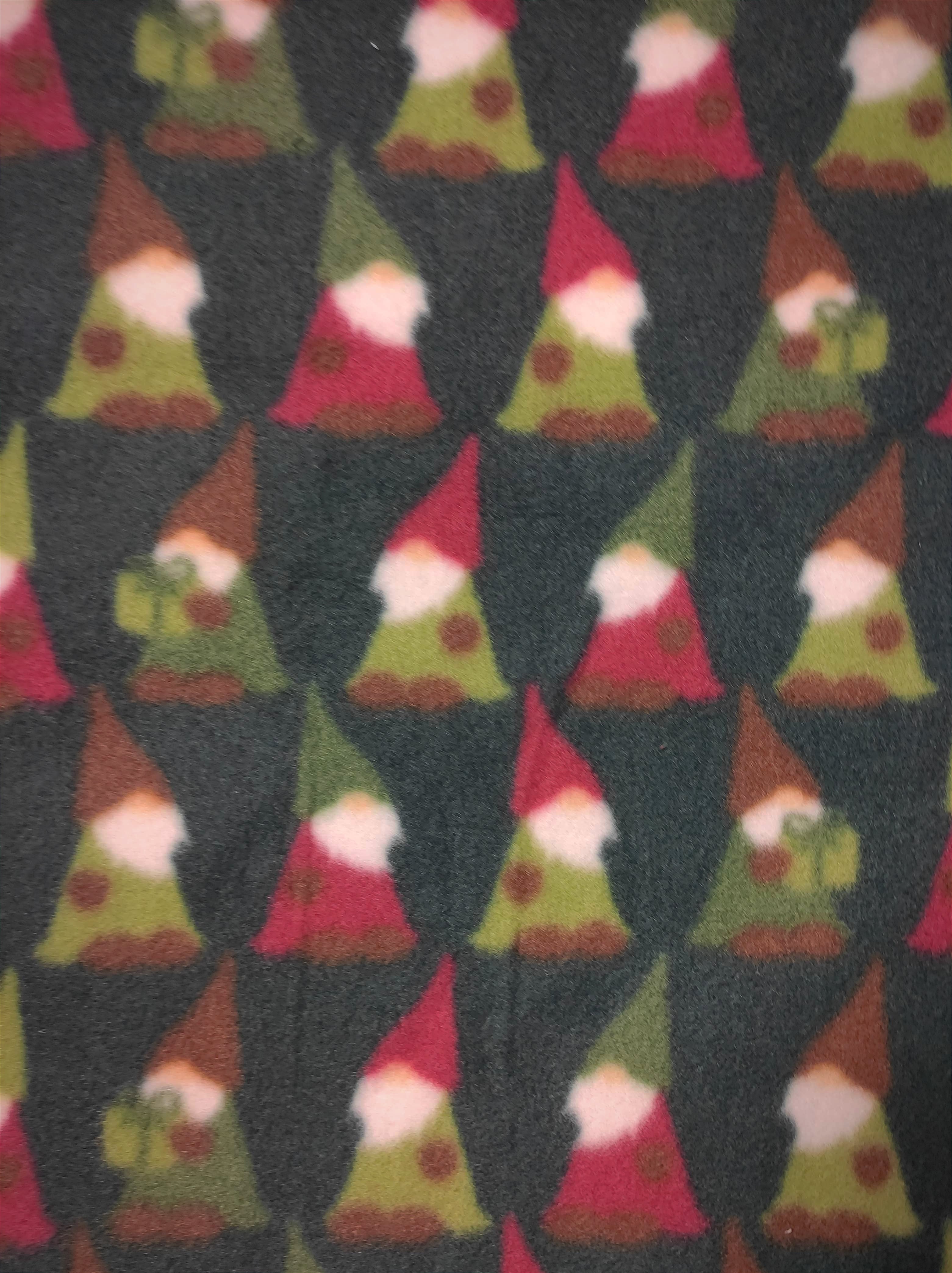 This is a soft stretchy medium weight fleece with various gnomes on evergreen background. Regular Size limited to only 7. Bambino Size limited to only 7, Ankle Biter Size limited to only 2. Lil Nipper Size limited to only 2. No more will be made when they are gone.