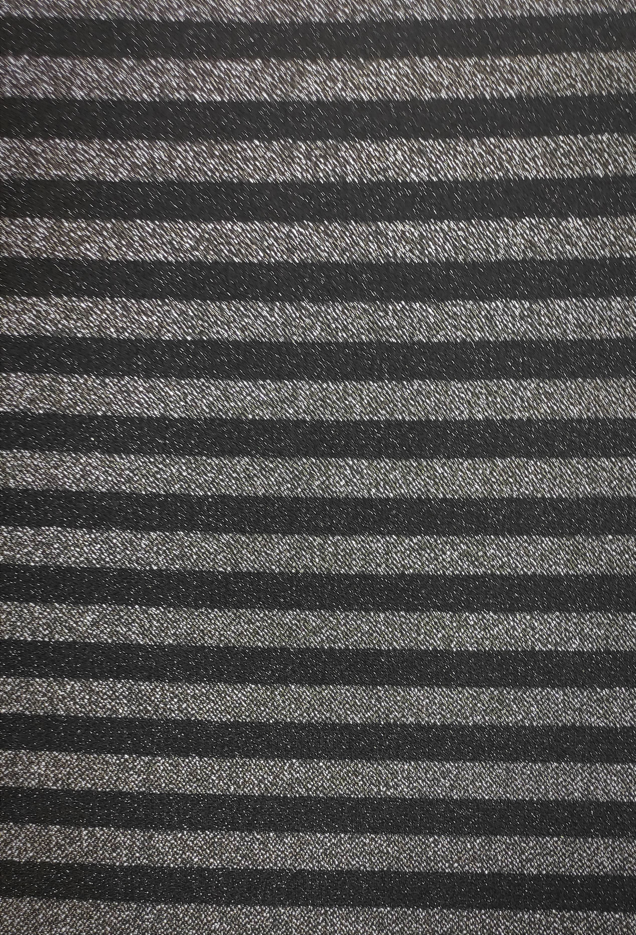 This is a stretchy mid weight polyester/ metallic silver and black striped fabric with lots of stretch.Regular Size limited to only 8. Bambino Size limited to only 8. Ankle Biter Size limited to 2 and Lil Nipper Size limited to 2. No more will be made when they are gone.