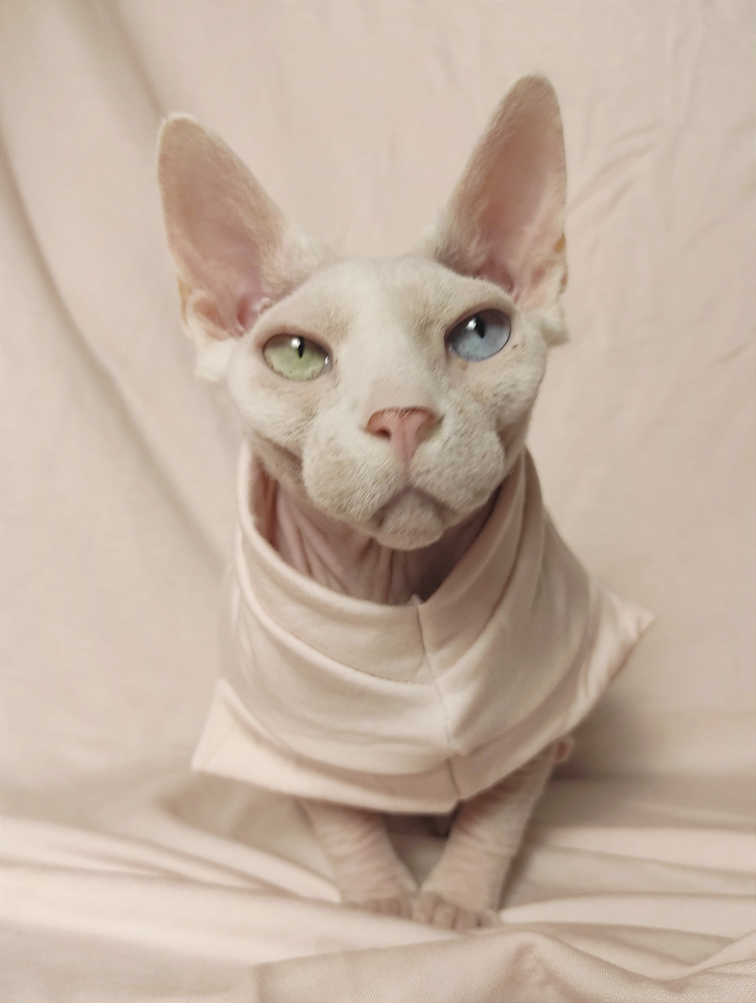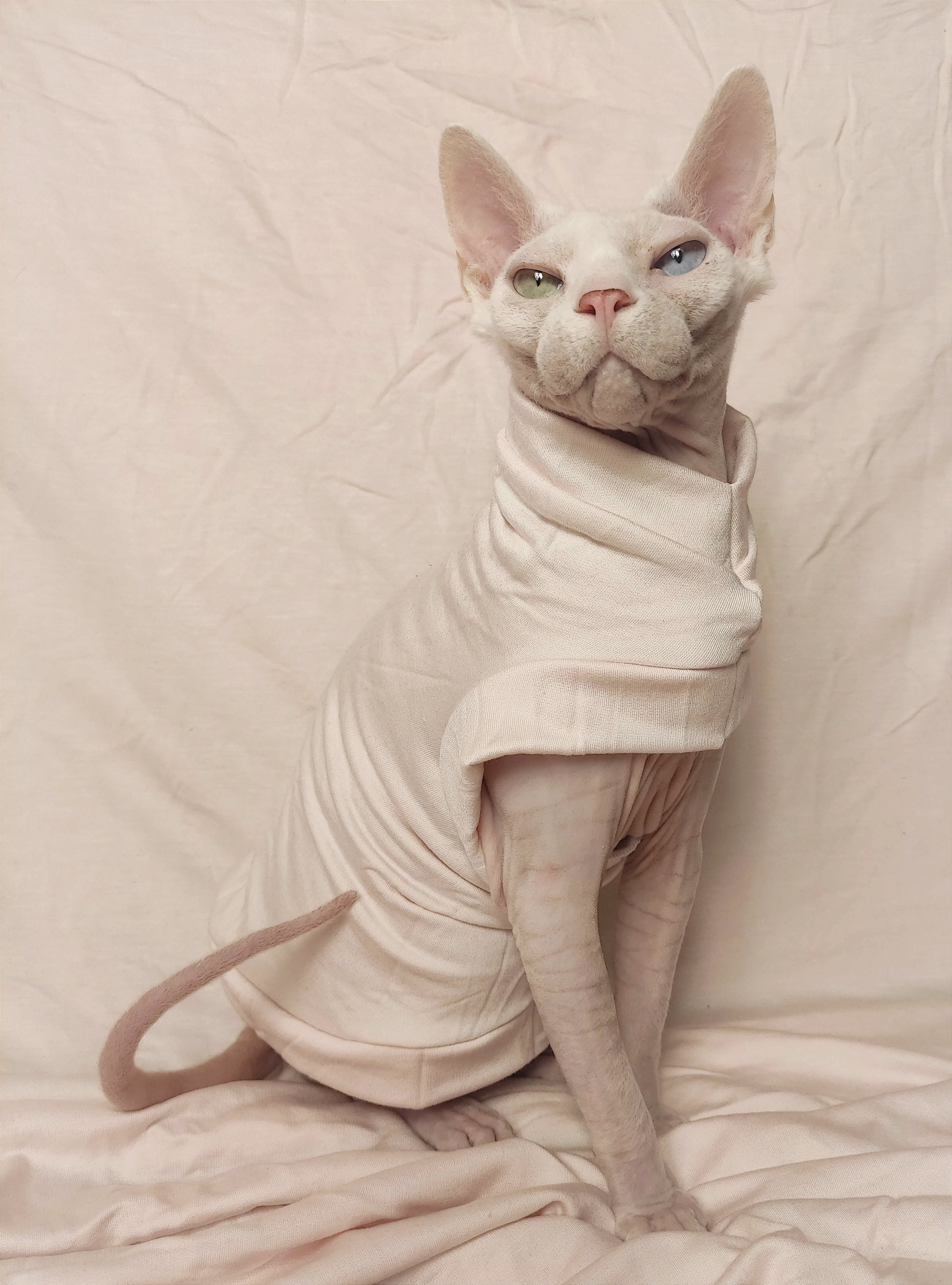 REGULAR size is for most adult hairless cats age 1 to 18. BAMBINO size fits hairless kittens age 6 months to 1 year and smaller adult cats. LIL NIPPER size fits hairless kittens age 8 weeks to 15 week olds for when they are with the breeder or for the trip home. Custom orders are welcome for larger and smaller cats - pricing is the same - $27.50