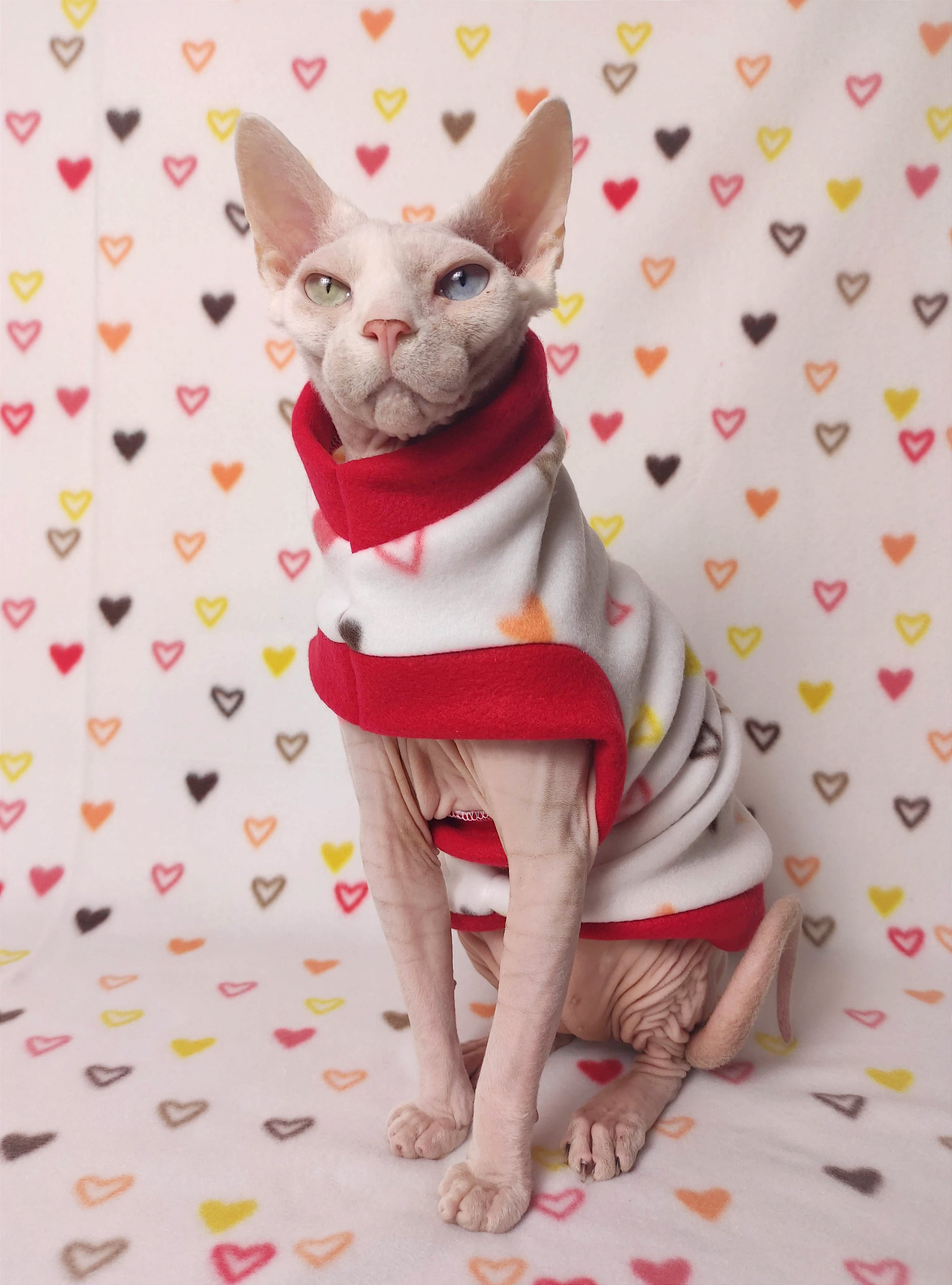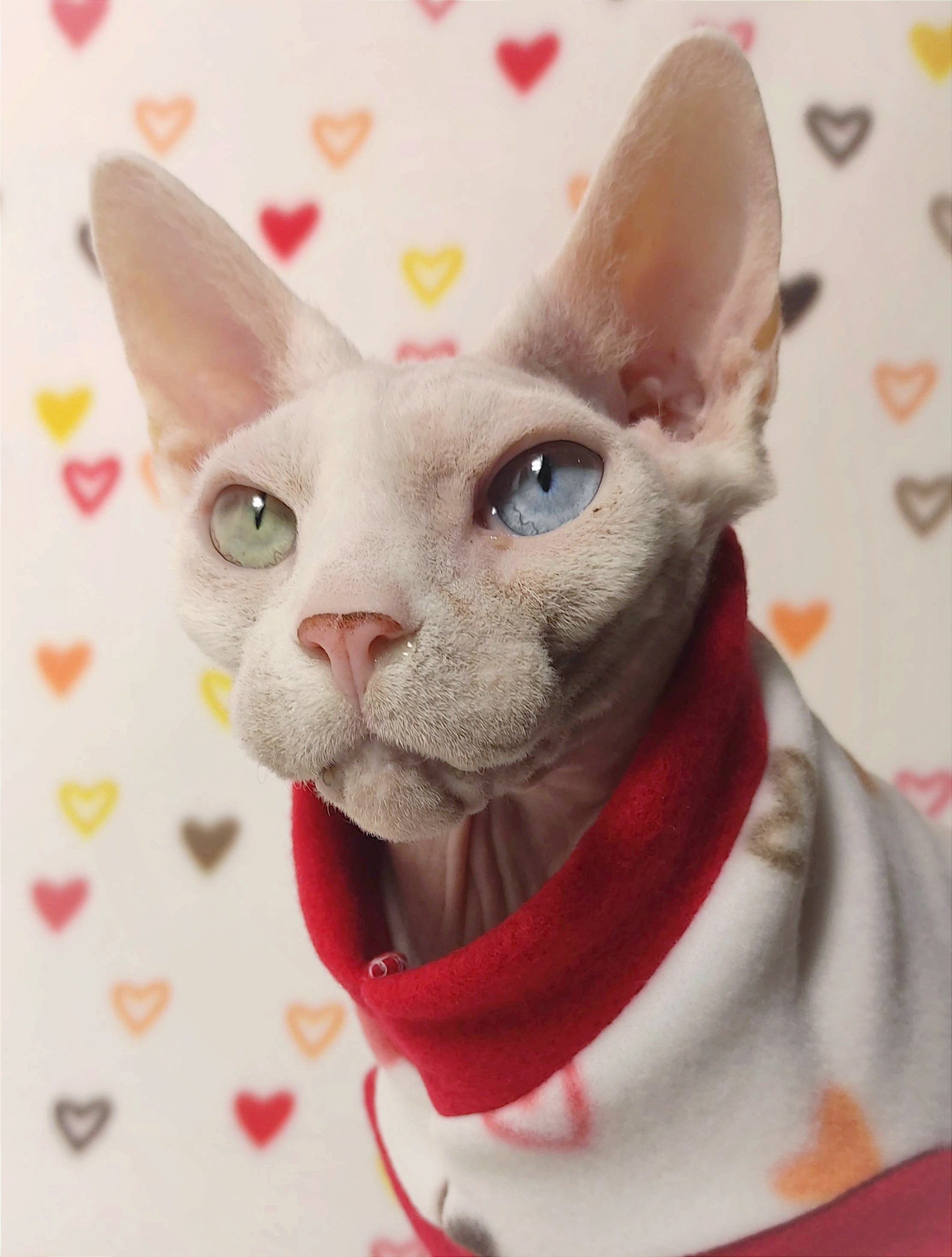 REGULAR size is for most adult hairless cats age 1 to 18. BAMBINO size fits hairless kittens age 6 months to 1 year and smaller adult cats. LIL NIPPER size fits hairless kittens age 8 weeks to 15 week olds for when they are with the breeder or for the trip home. Custom orders are welcome for larger and smaller cats - pricing is the same - $27.50