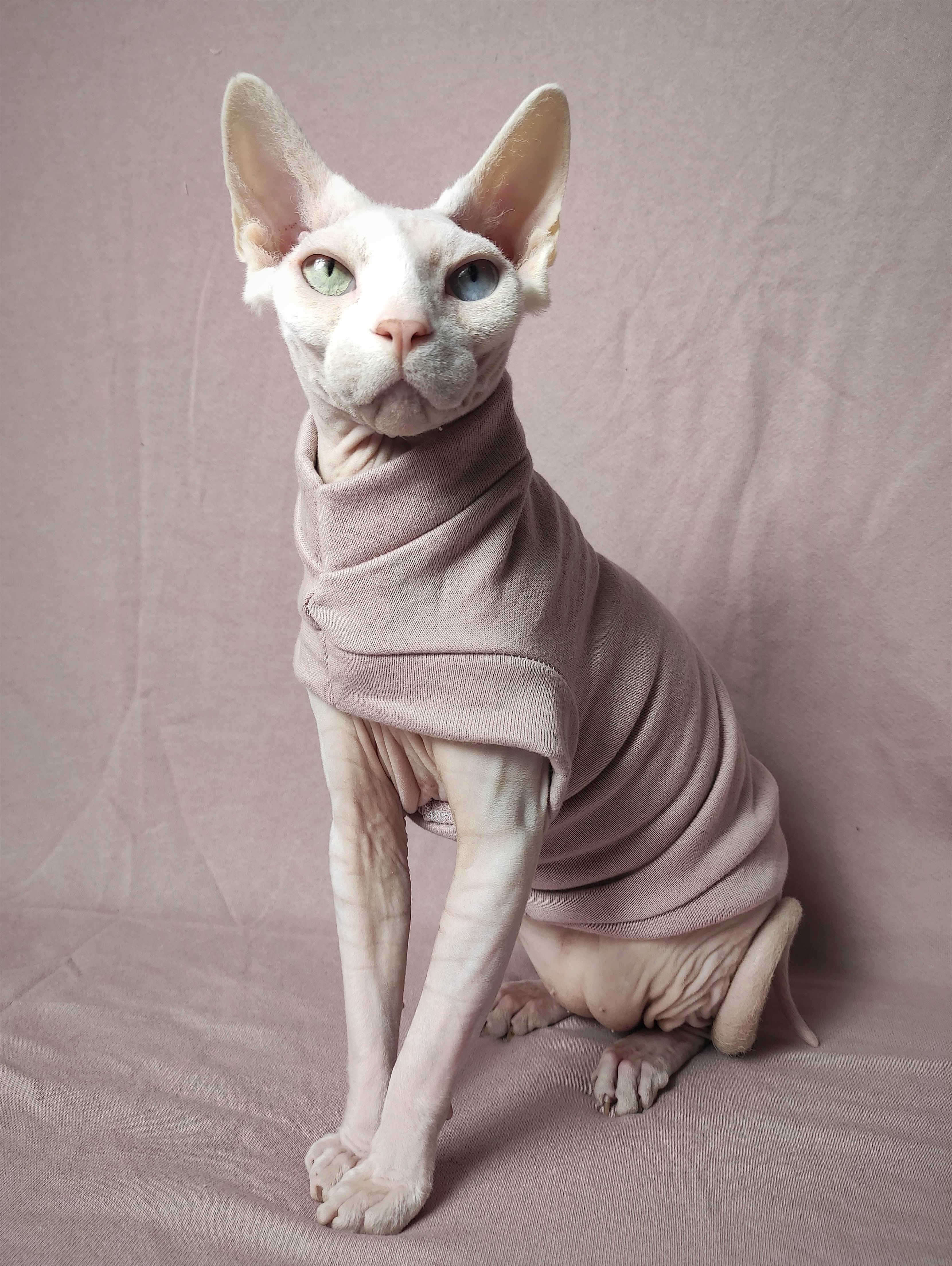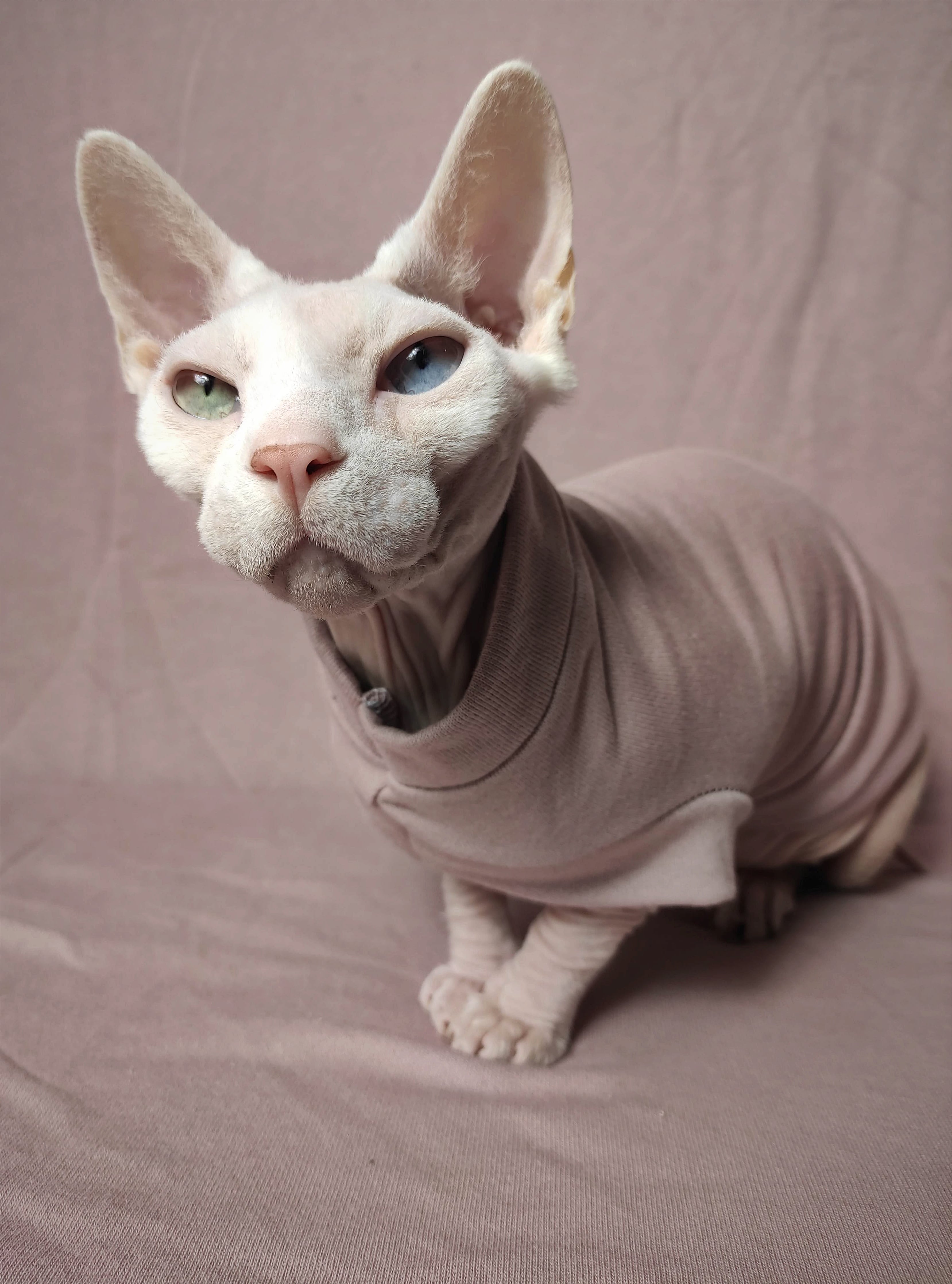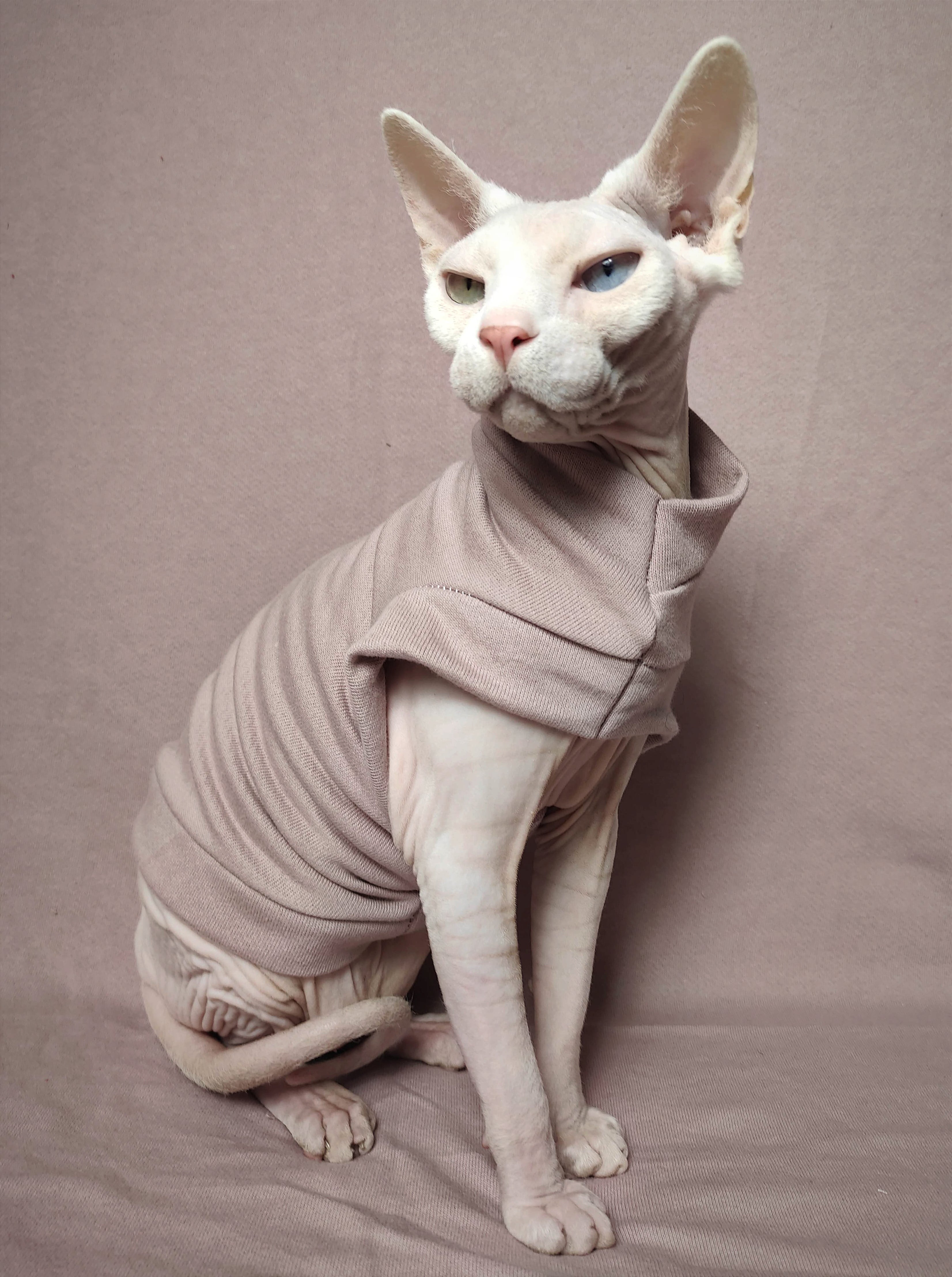 REGULAR size is for most adult hairless cats age 1 to 18. BAMBINO size fits hairless kittens age 6 months to 1 year and smaller adult cats. LIL NIPPER size fits hairless kittens age 8 weeks to 15 week olds for when they are with the breeder or for the trip home. Custom orders are welcome for larger and smaller cats - pricing is the same - $27.50