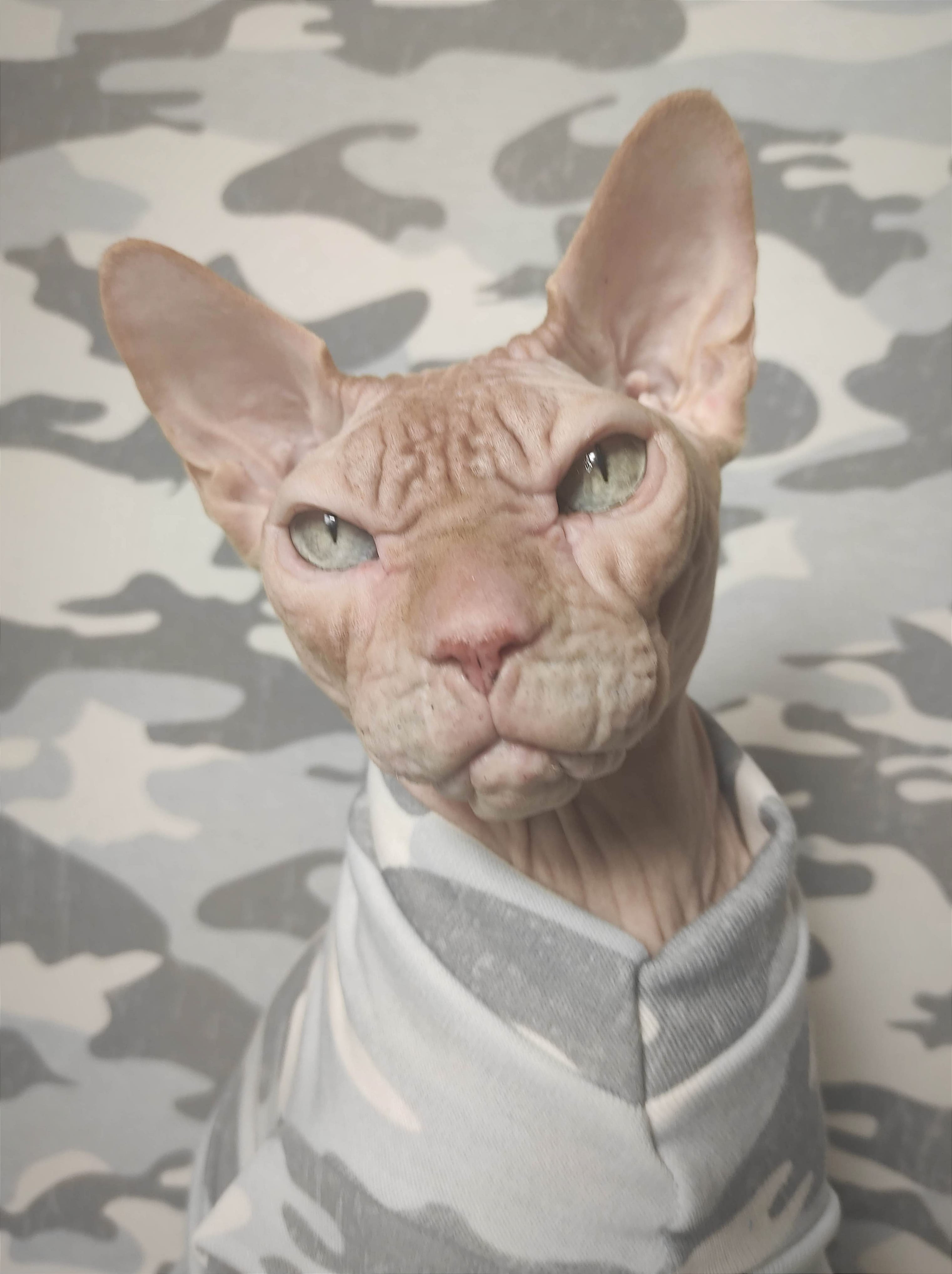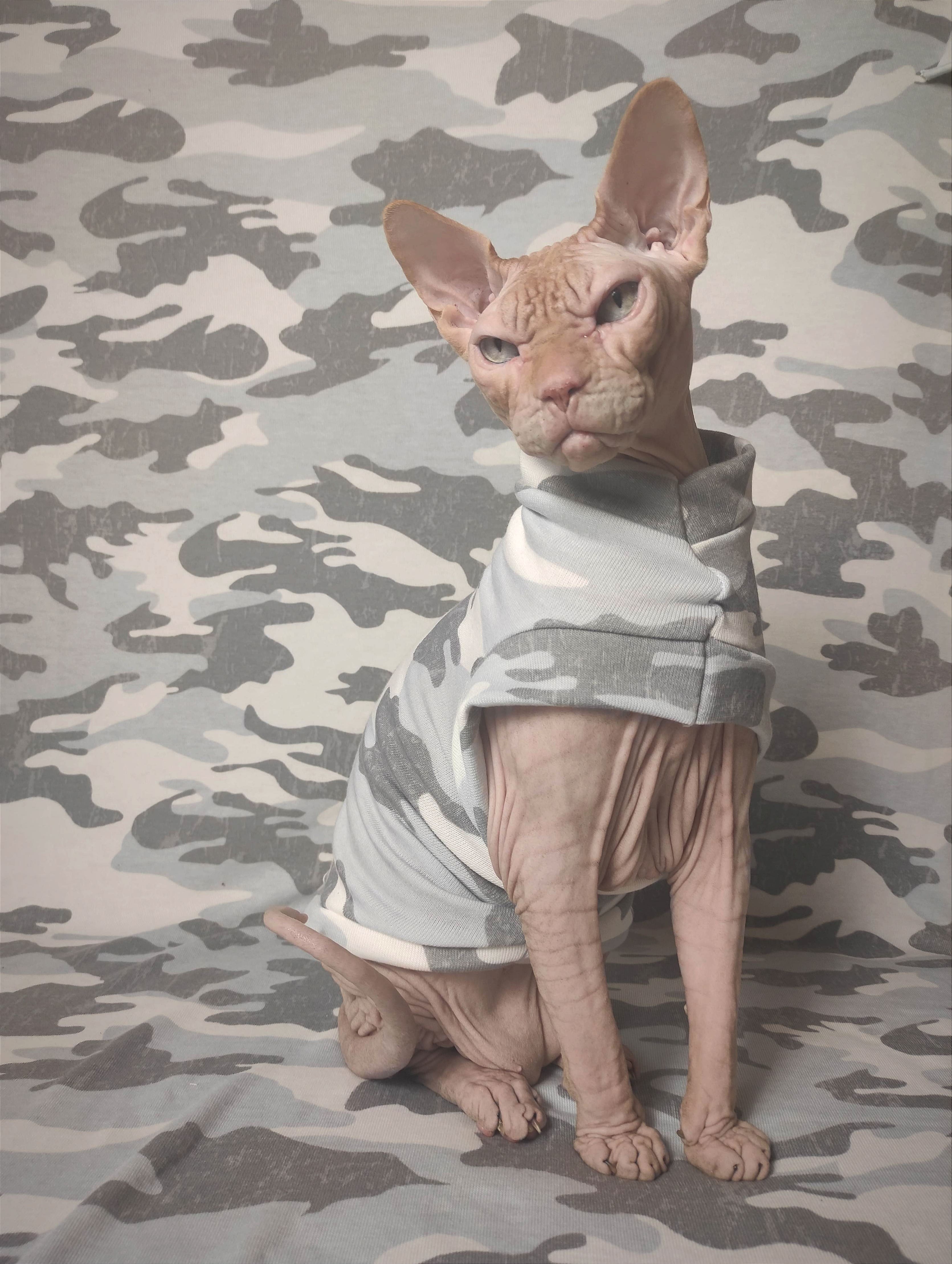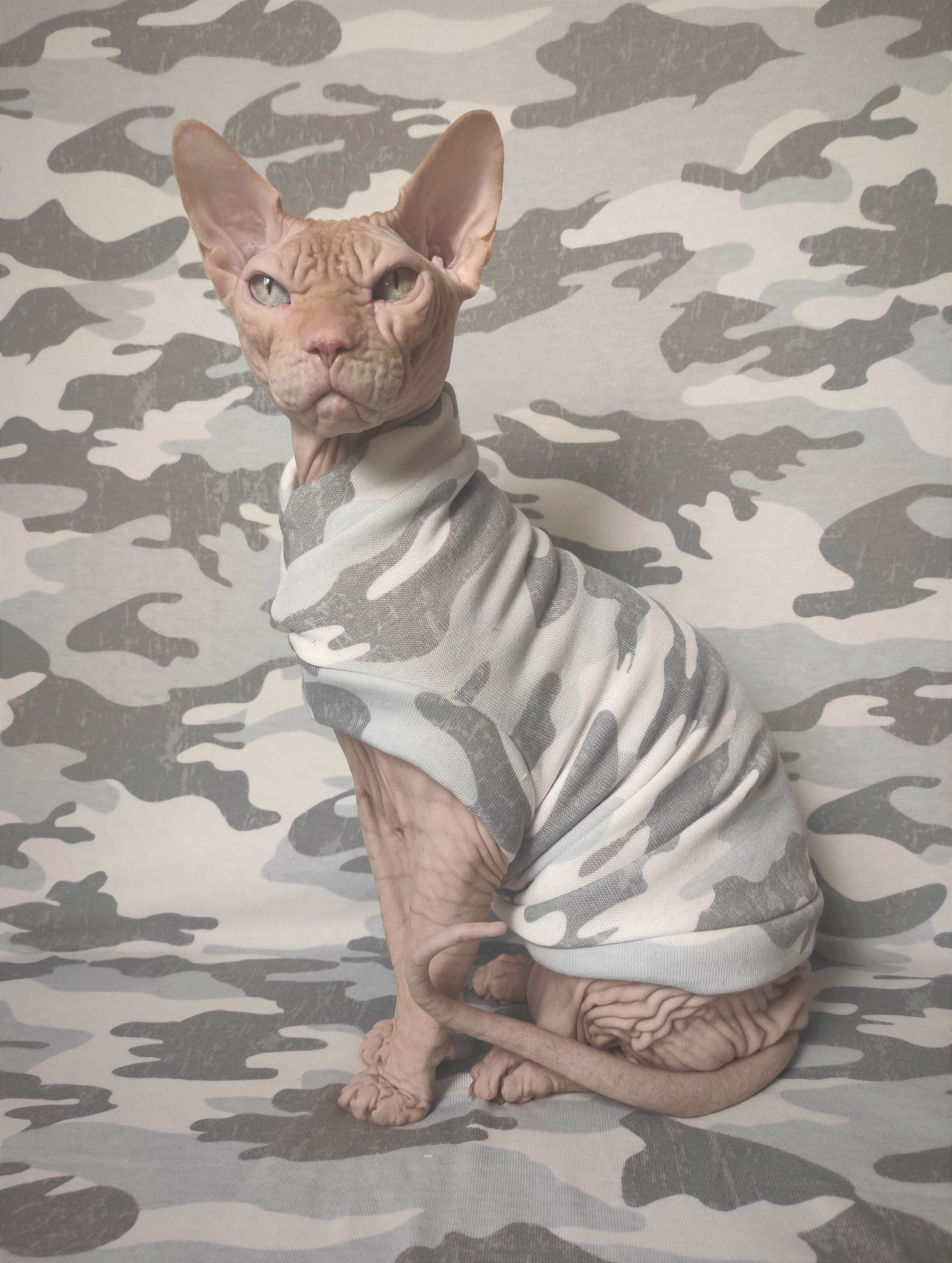 REGULAR size is for most adult hairless cats age 1 to 18. BAMBINO size fits hairless kittens age 6 months to 1 year and smaller adult cats. ANKLE BITER size fits kittens 15 weeks to 6 month olds. LIL NIPPER size fits hairless kittens age 8 weeks to 15 week olds for when they are with the breeder or for the trip home. Custom orders are welcome for larger and smaller cats - pricing is the same - $27.50