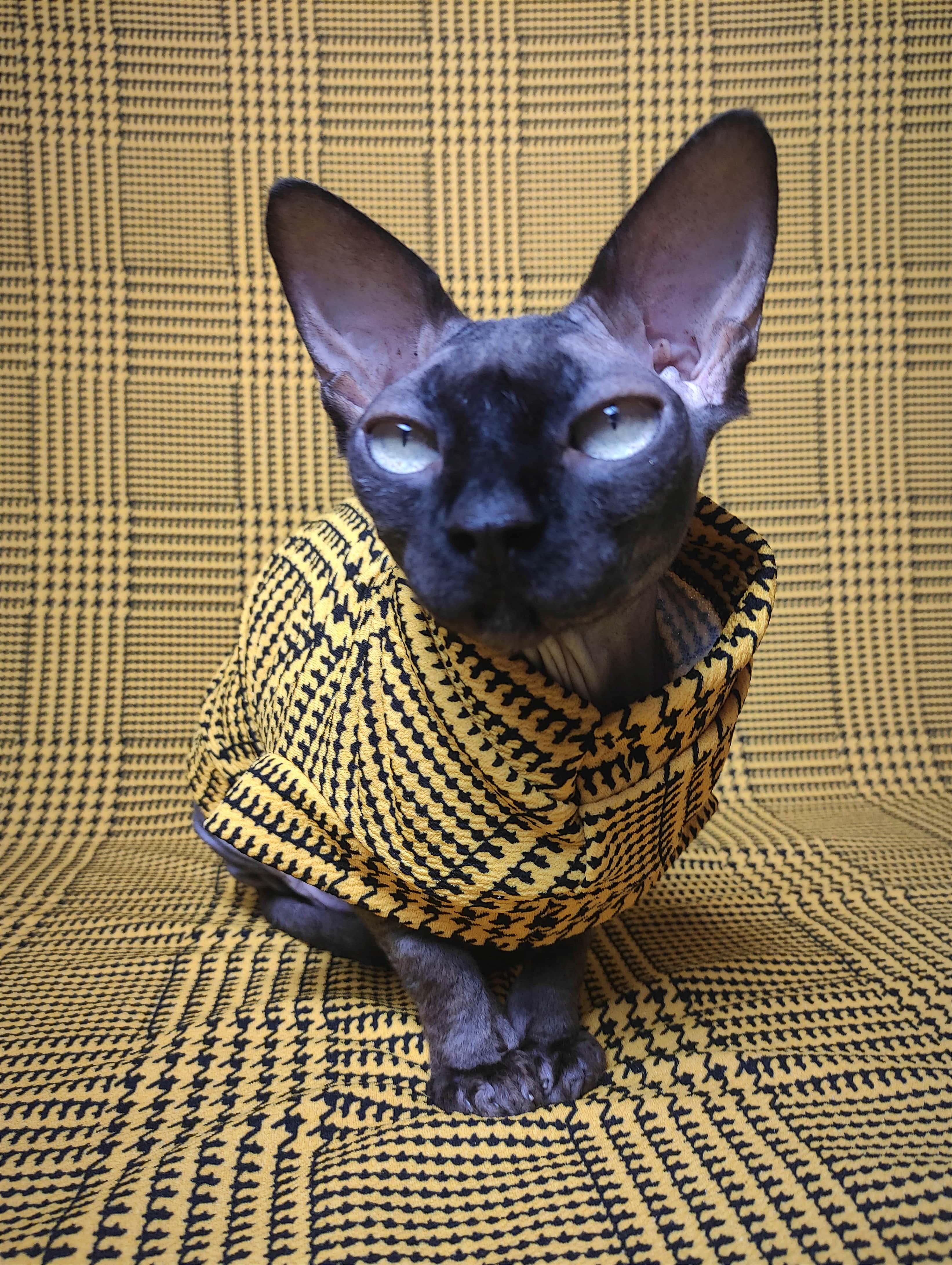 REGULAR size is for most adult hairless cats age 1 to 18. BAMBINO size fits hairless kittens age 6 months to 1 year and smaller adult cats. ANKLE BITER size fits kittens 15 weeks to 6 month olds. LIL NIPPER size fits hairless kittens age 8 weeks to 15 week olds for when they are with the breeder or for the trip home. Custom orders are welcome for larger and smaller cats - pricing is the same - $27.50