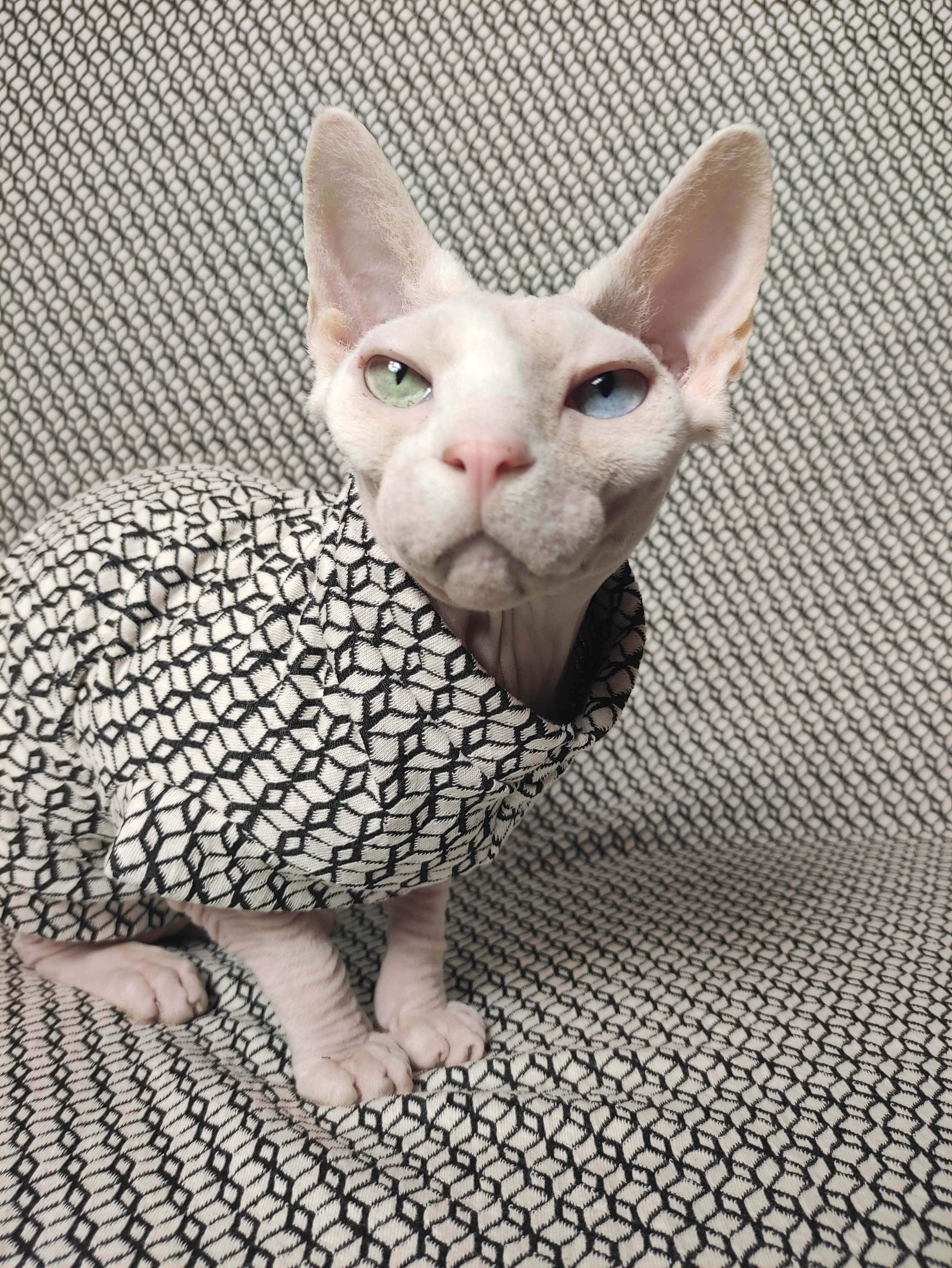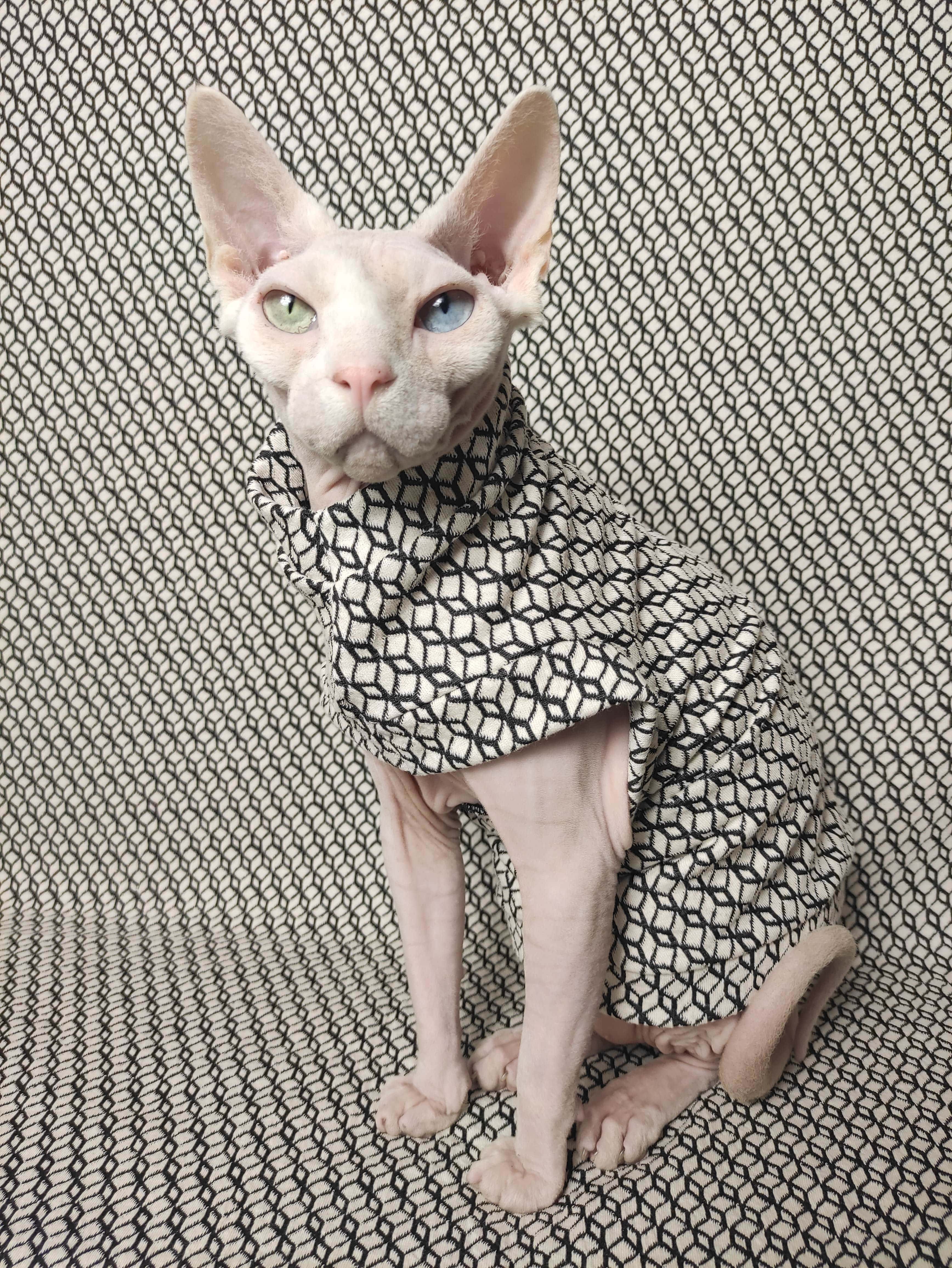 REGULAR size is for most adult hairless cats age 1 to 18. BAMBINO size fits hairless kittens age 6 months to 1 year and smaller adult cats. ANKLE BITER size fits kittens 15 weeks to 6 month olds. LIL NIPPER size fits hairless kittens age 8 weeks to 15 week olds for when they are with the breeder or for the trip home. Custom orders are welcome for larger and smaller cats - pricing is the same - $27.50