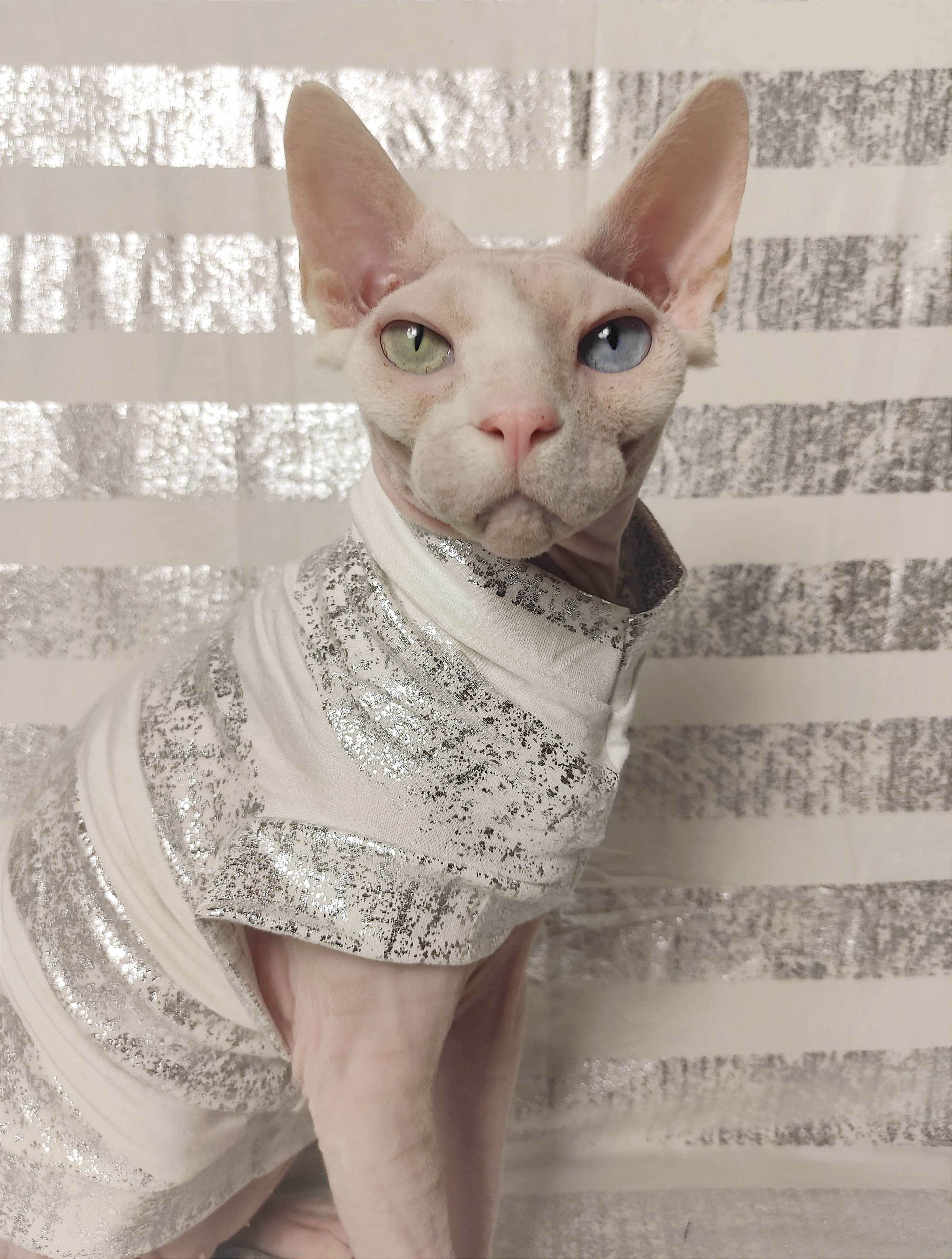 REGULAR size is for most adult hairless cats age 1 to 18. BAMBINO size fits hairless kittens age 6 months to 1 year and smaller adult cats. ANKLE BITER size fits kittens 15 weeks to 6 month olds. LIL NIPPER size fits hairless kittens age 8 weeks to 15 week olds for when they are with the breeder or for the trip home. Custom orders are welcome for larger and smaller cats - pricing is the same - $27.50