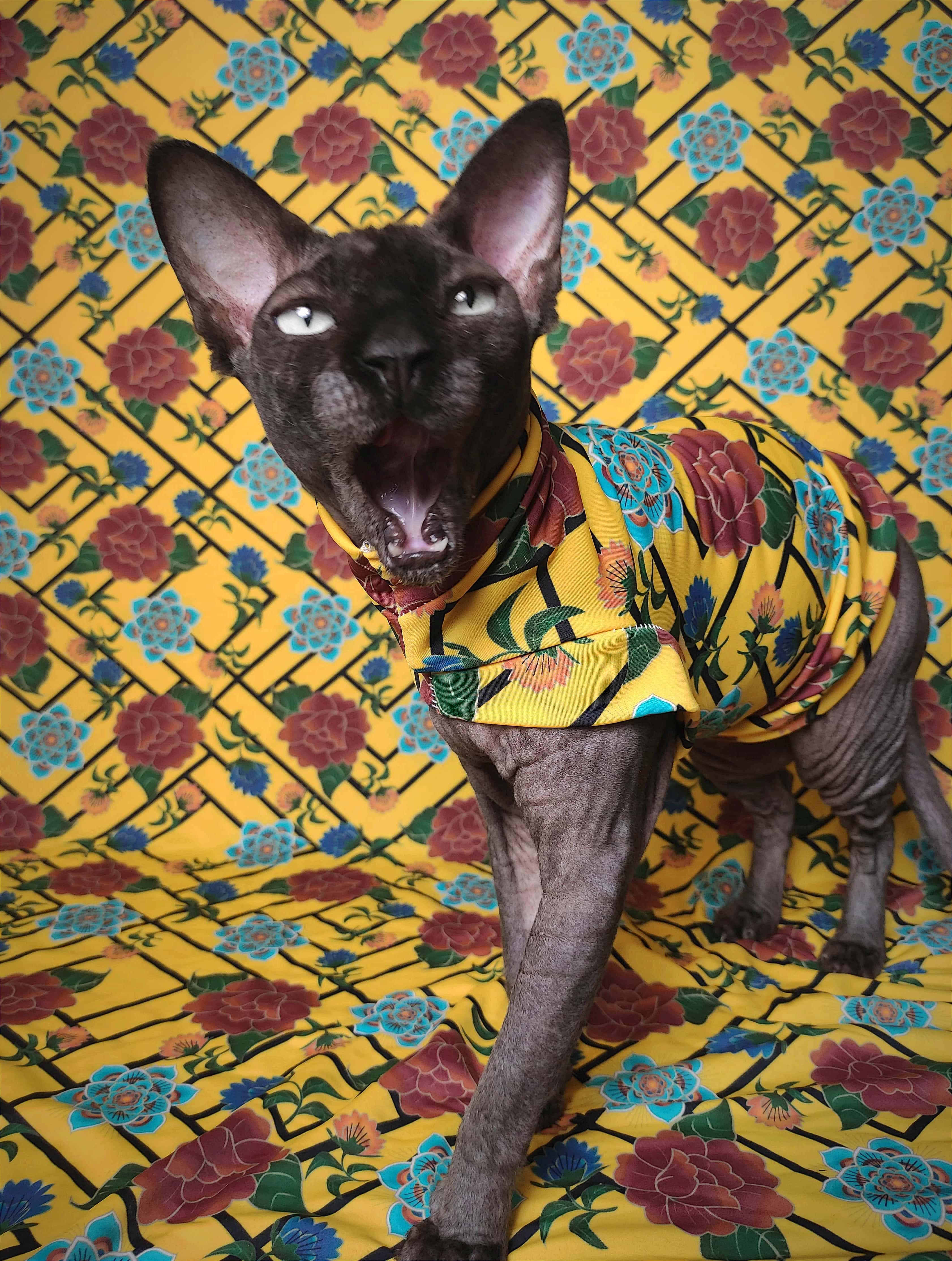 floral maze print on marigolds background. Activewear is made from stretchy spandex fabrics that have a slimmer fit, larger armholes, and smaller trim that provide extra support for cats on the go! Made with special seams that minimize the seem profile. Regular Size limited to only 8. Bambino Size is limited to only 8, Ankle Biter Size is limited to 3, Lil Nipper Size is limited to 3. No more will be made when they are gone.