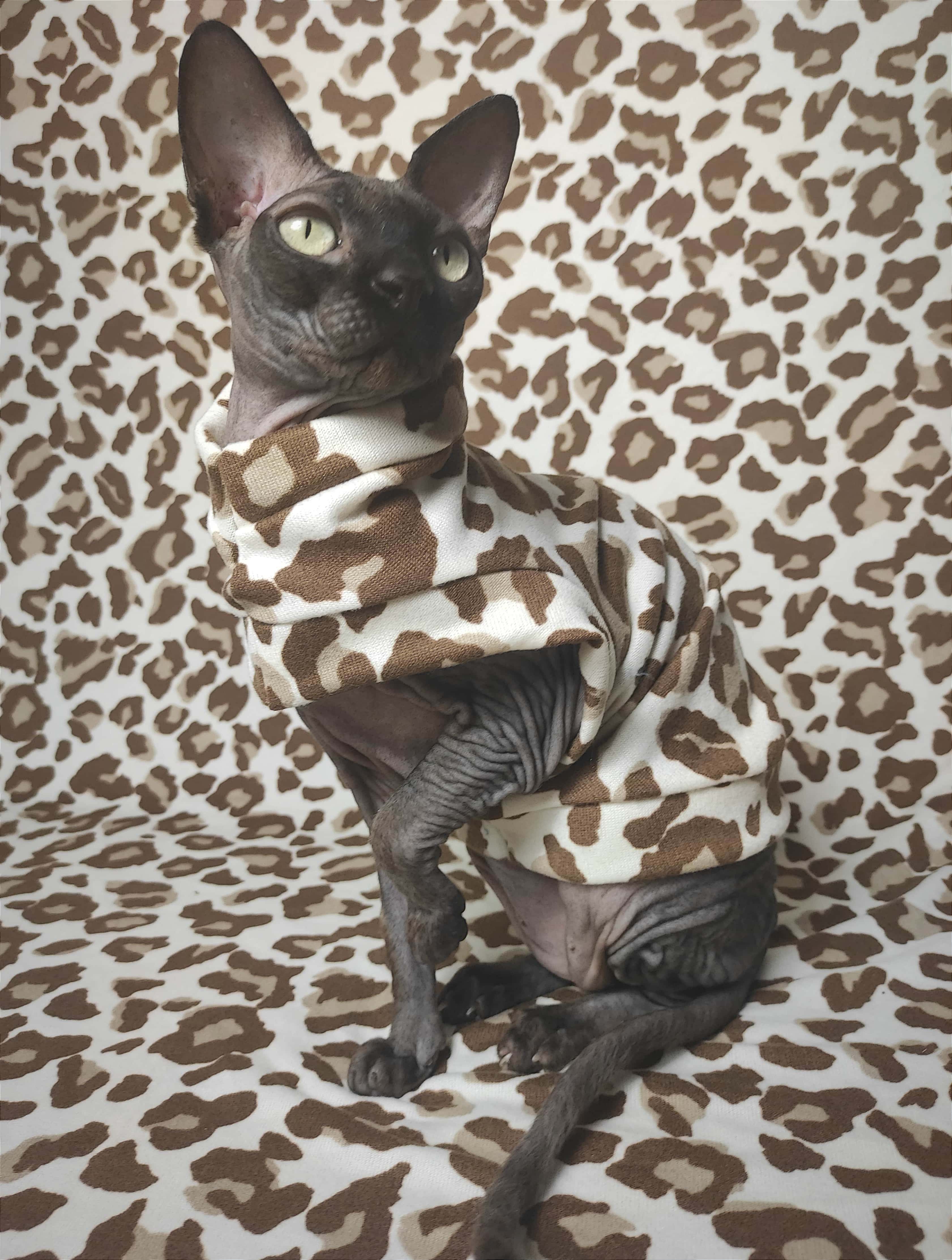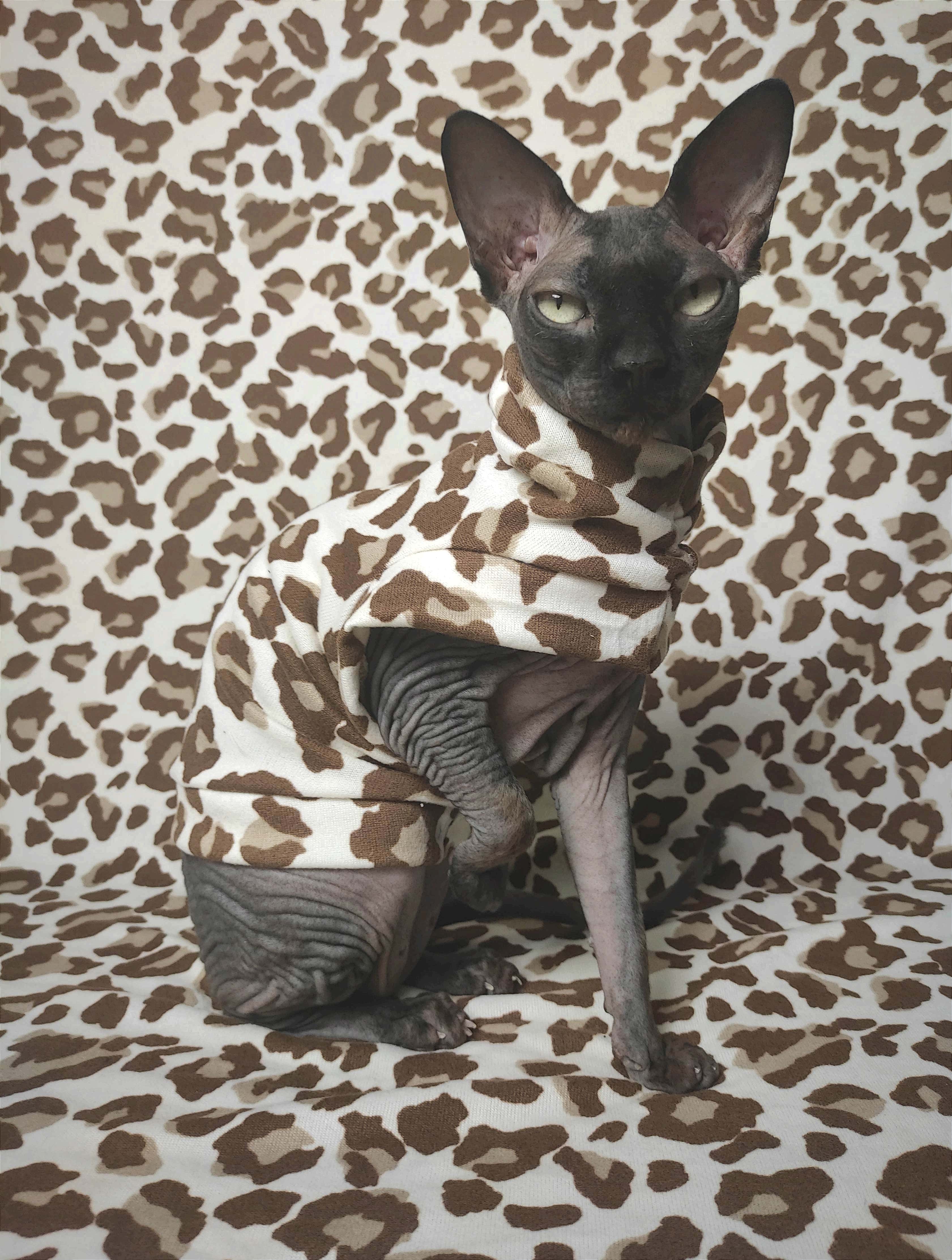REGULAR size is for most adult hairless cats age 1 to 18. BAMBINO size fits hairless kittens age 6 months to 1 year and smaller adult cats. ANKLE BITER size fits hairless kittens 15 week to 6 month olds. LIL NIPPER size fits hairless kittens age 8 weeks to 15 week olds for when they are with the breeder or for the trip home. Custom orders are welcome for larger and smaller cats - pricing is the same - $27.50
