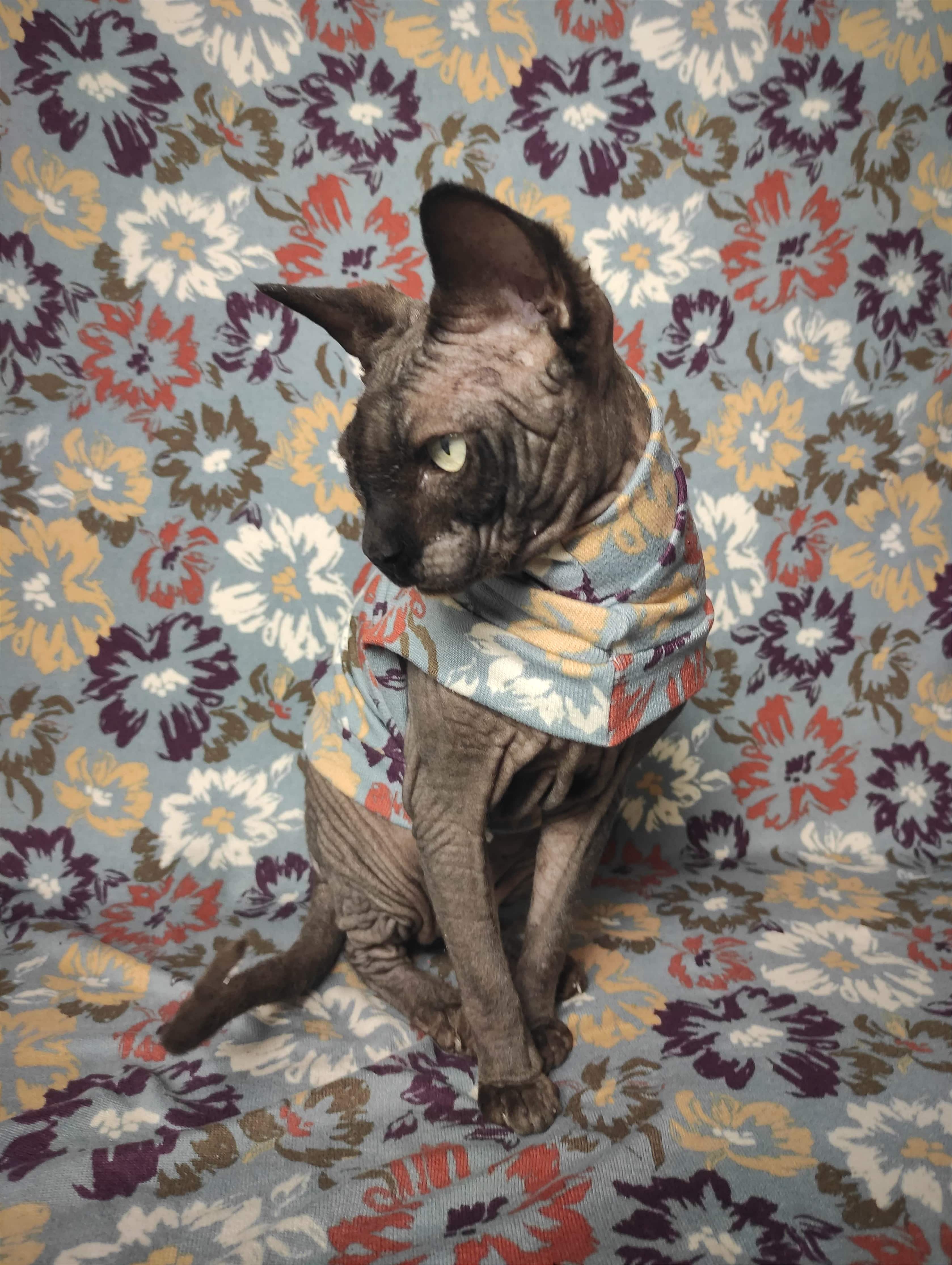 REGULAR size is for most adult hairless cats age 1 to 18. BAMBINO size fits hairless kittens age 6 months to 1 year and smaller adult cats. ANKLE BITER size fits hairless kittens 15 week to 6 month olds. LIL NIPPER size fits hairless kittens age 8 weeks to 15 week olds for when they are with the breeder or for the trip home. Custom orders are welcome for larger and smaller cats - pricing is the same - $27.50