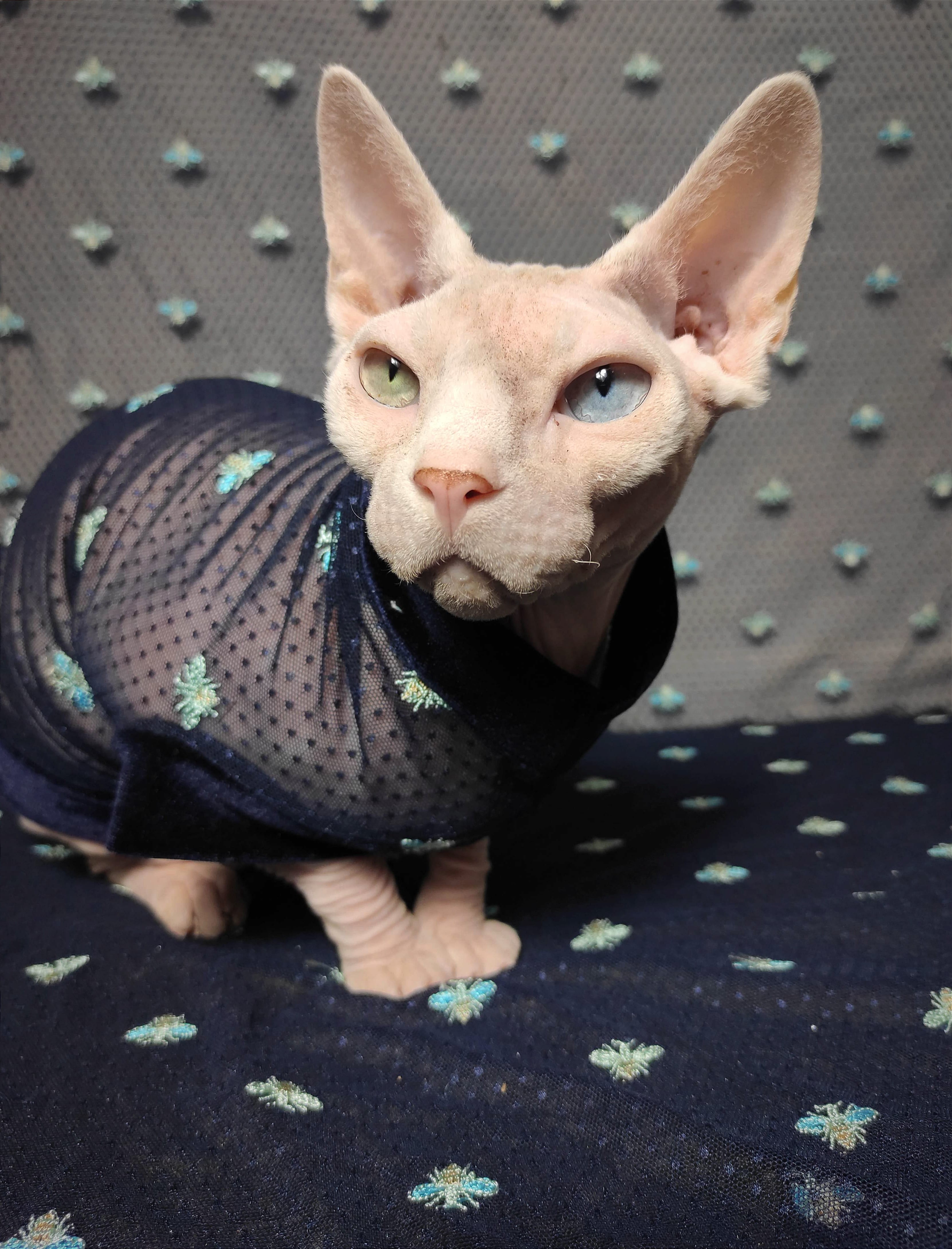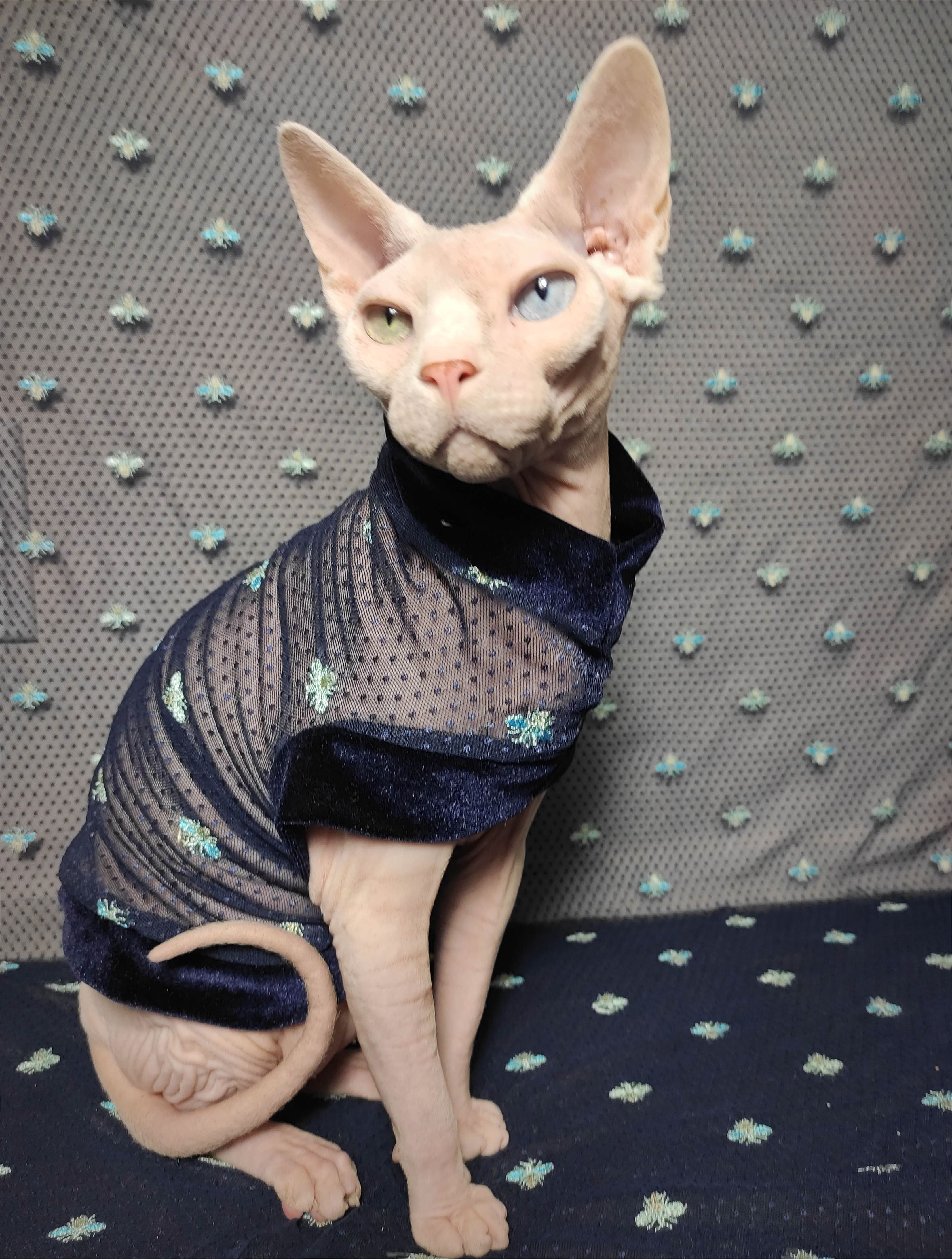 REGULAR size is for most adult hairless cats age 1 to 18. BAMBINO size fits hairless kittens age 6 months to 1 year and smaller adult cats. ANKLE BITER size fits kittens 15 weeks to 6 month olds. LIL NIPPER size fits hairless kittens age 8 weeks to 15 week olds for when they are with the breeder or for the trip home. Custom orders are welcome for larger and smaller cats - pricing is the same - $27.50