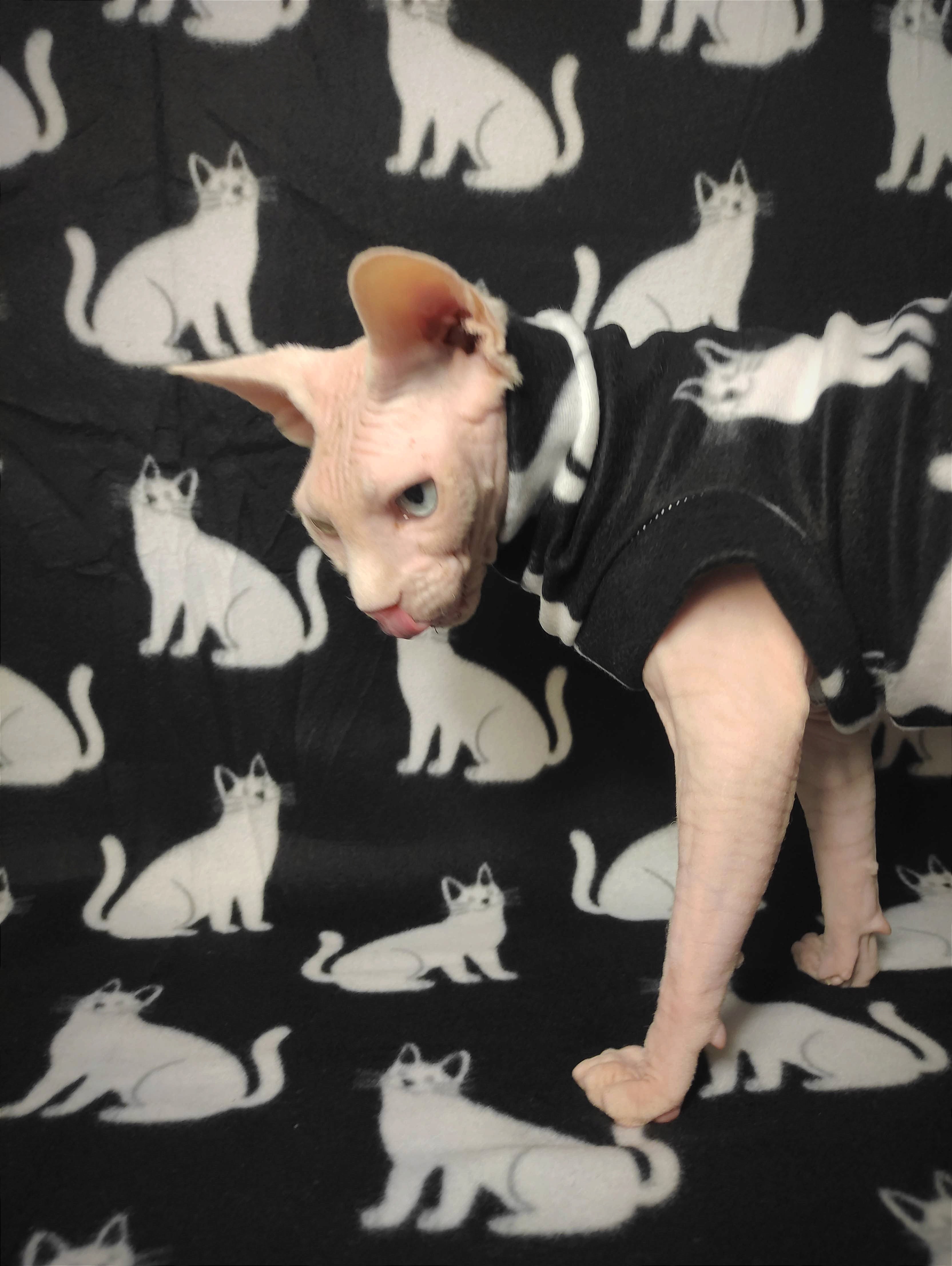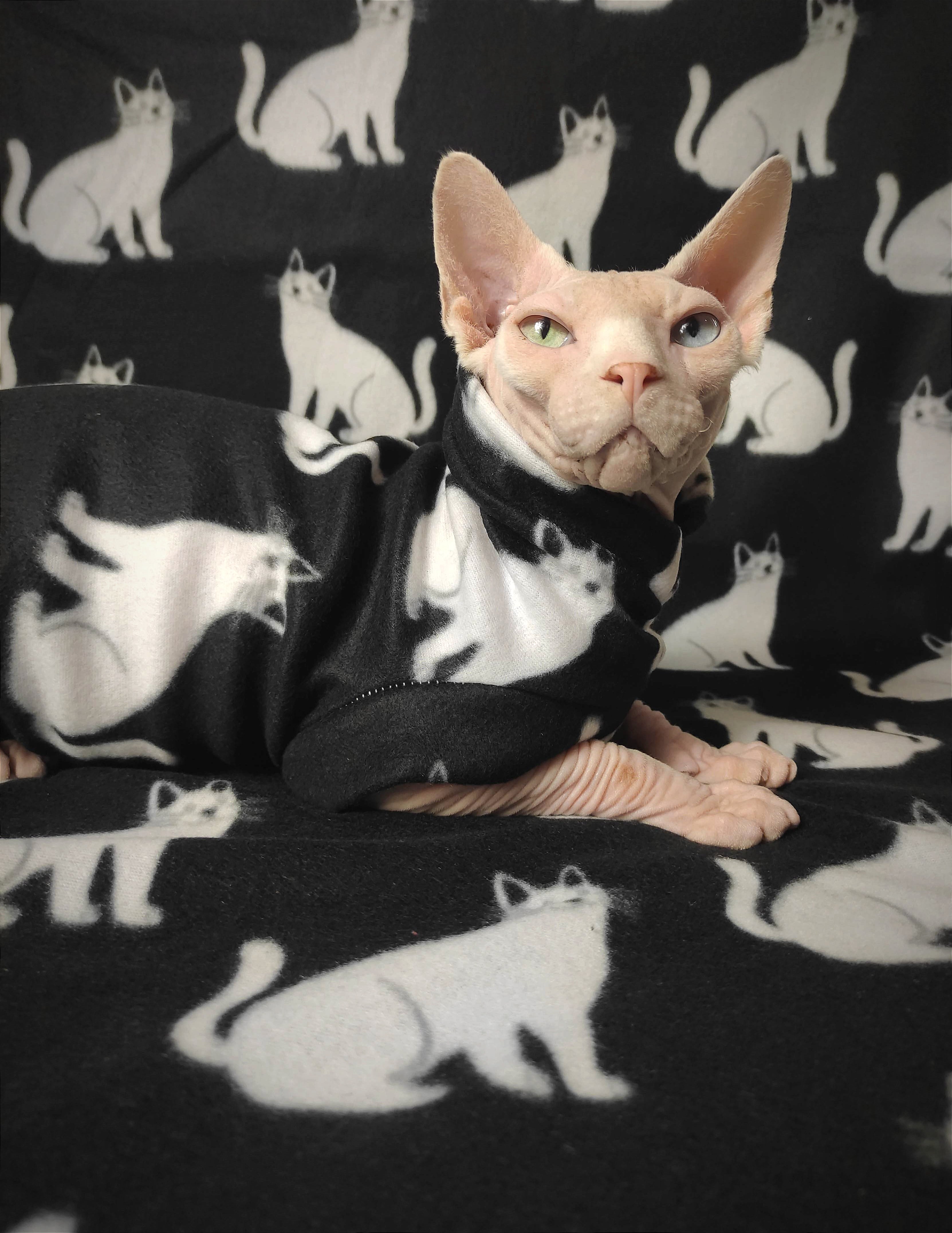 REGULAR size is for most adult hairless cats age 1 to 18. BAMBINO size fits hairless kittens age 6 months to 1 year and smaller adult cats. LIL NIPPER size fits hairless kittens age 8 weeks to 15 week olds for when they are with the breeder or for the trip home. Custom orders are welcome for larger and smaller cats - pricing is the same - $27.50