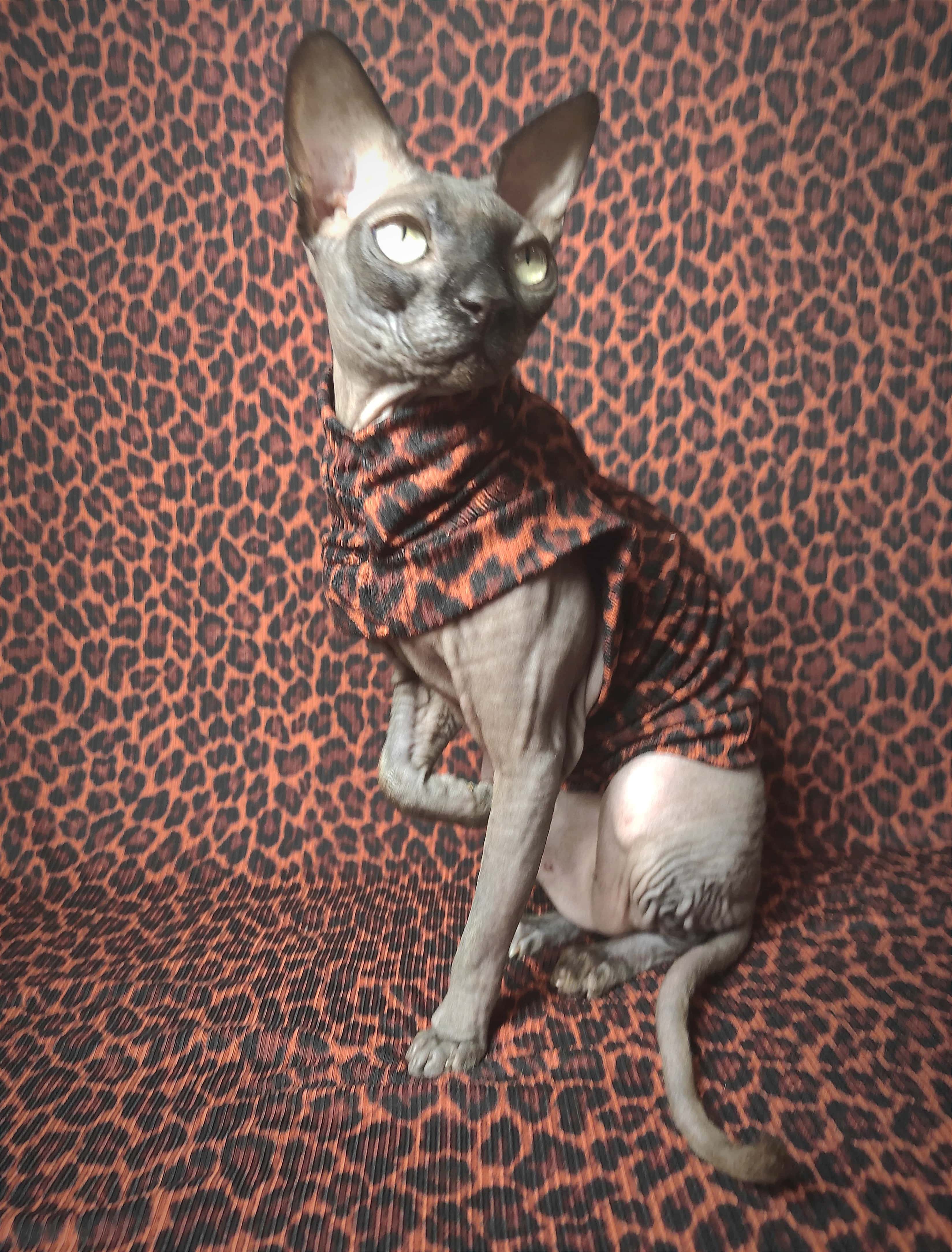 REGULAR size is for most adult hairless cats age 1 to 18. BAMBINO size fits hairless kittens age 6 months to 1 year and smaller adult cats. ANKLE BITER size fits kittens 15 weeks to 6 month olds. LIL NIPPER size fits hairless kittens age 8 weeks to 15 week olds for when they are with the breeder or for the trip home. Custom orders are welcome for larger and smaller cats - pricing is the same - $27.50