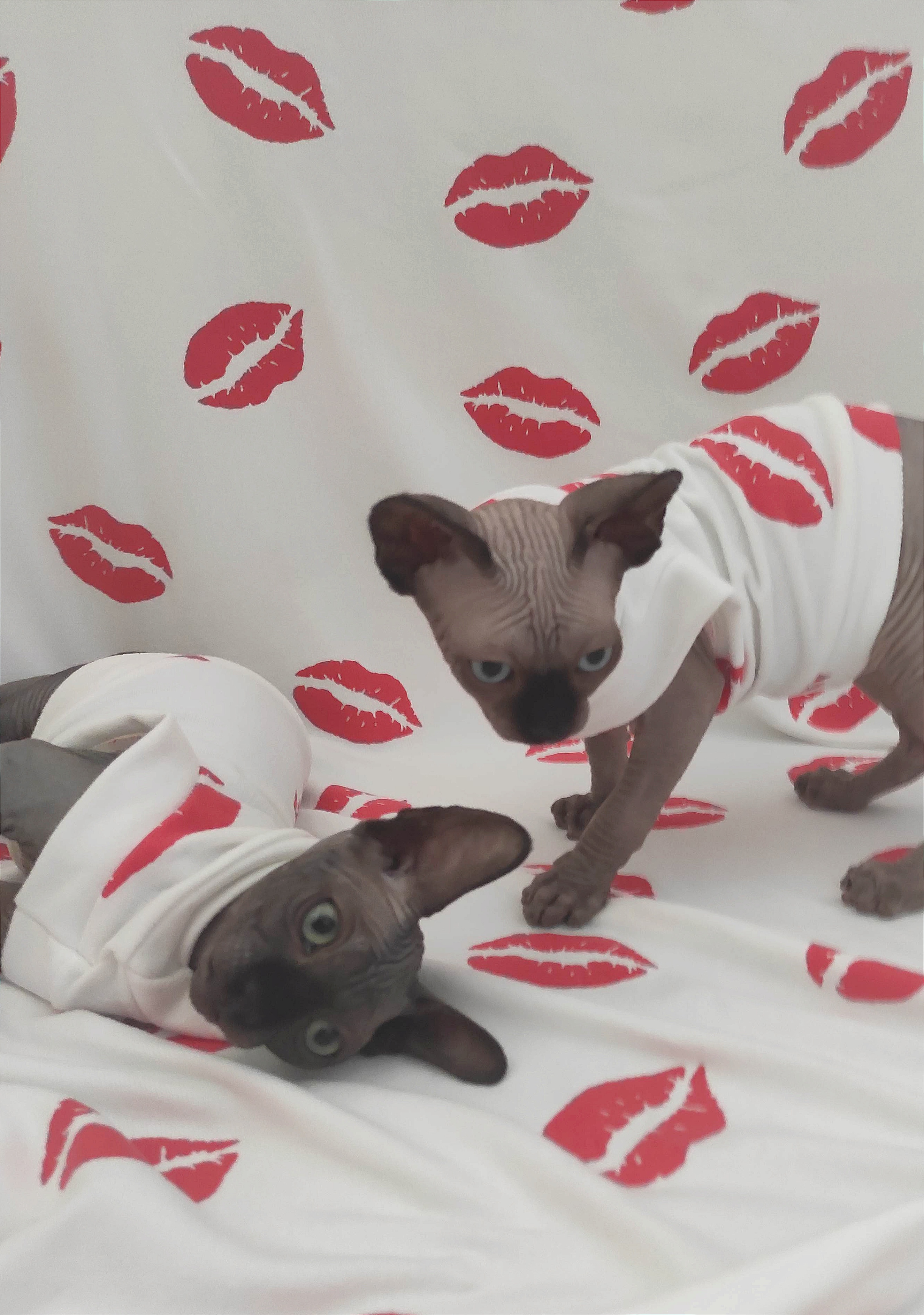 This sleepwear is a beautiful stretchy cotton blend fabric with printed lips on white. Made with special seams that minimize the seem profile. Swag Sleepwear has a slimmer fit, larger armholes, and smaller trim to provide extra snuggly comfort for sleeping or catnapping! Regular Size limited to only 7. Bambino Size is limited to only 8, Ankle Biter Size is limited to 2, Lil Nipper Size is limited to 2. No more will be made when they are gone.
