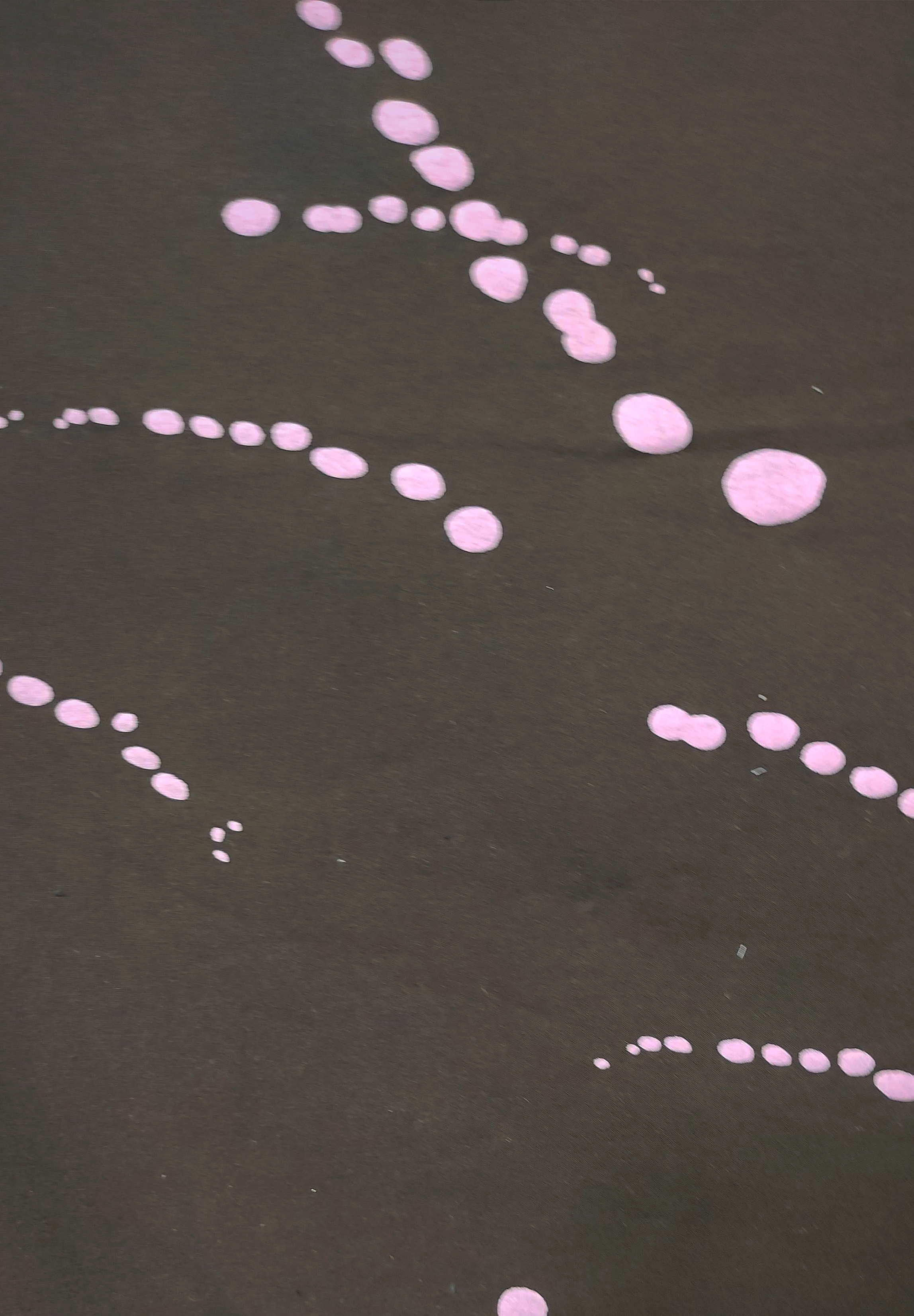 This is a soft mid weight stretchy brown sweatshirt fleece (fleeced interior) with pink splatter 😻