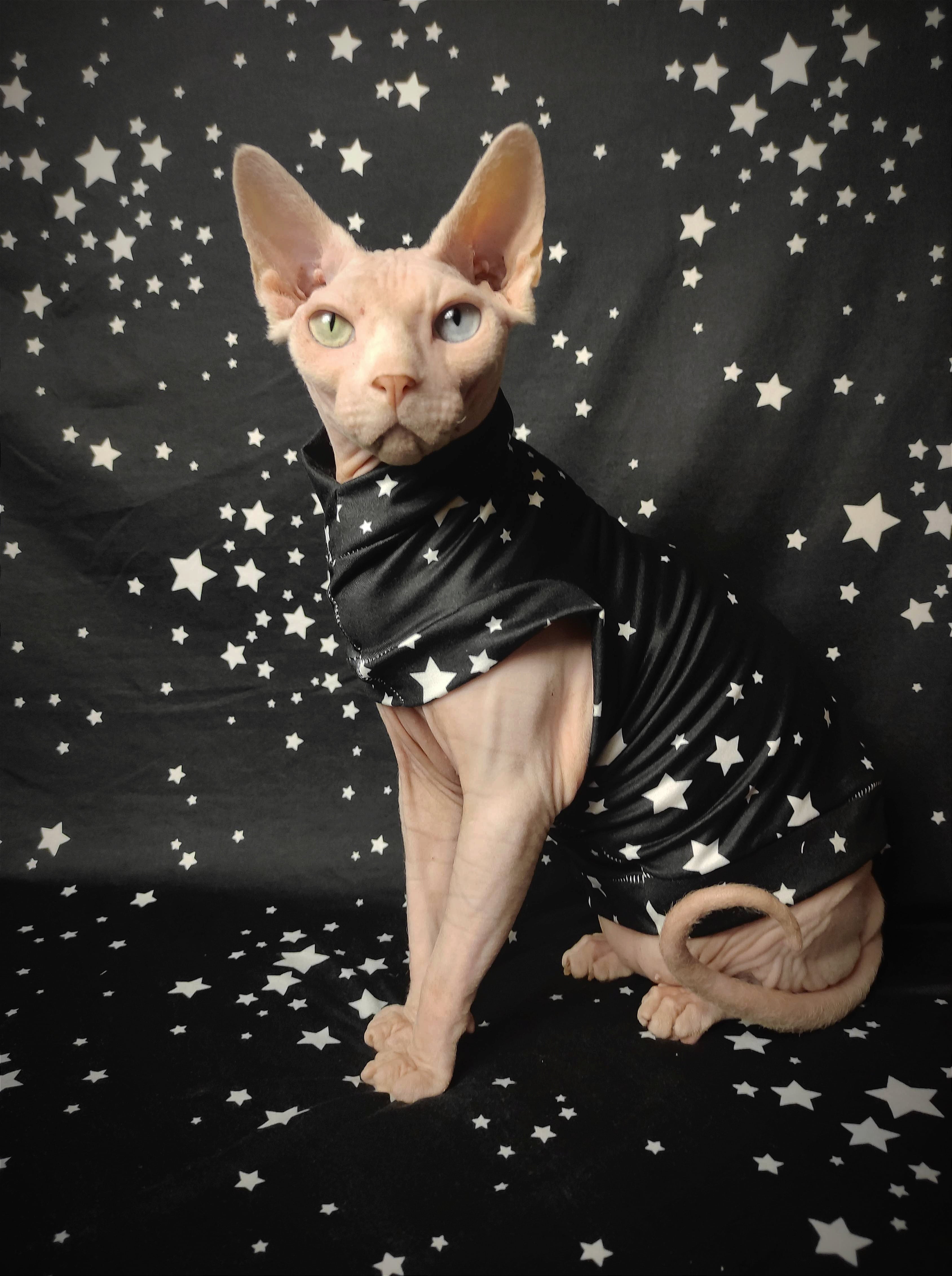 REGULAR size is for most adult hairless cats age 1 to 18. BAMBINO size fits hairless kittens age 6 months to 1 year and smaller adult cats. ANKLE BITER size fits kittens 15 weeks to 6 month olds. LIL NIPPER size fits hairless kittens age 8 weeks to 15 week olds for when they are with the breeder or for the trip home. Custom orders are welcome for larger and smaller cats - pricing is the same - $27.50