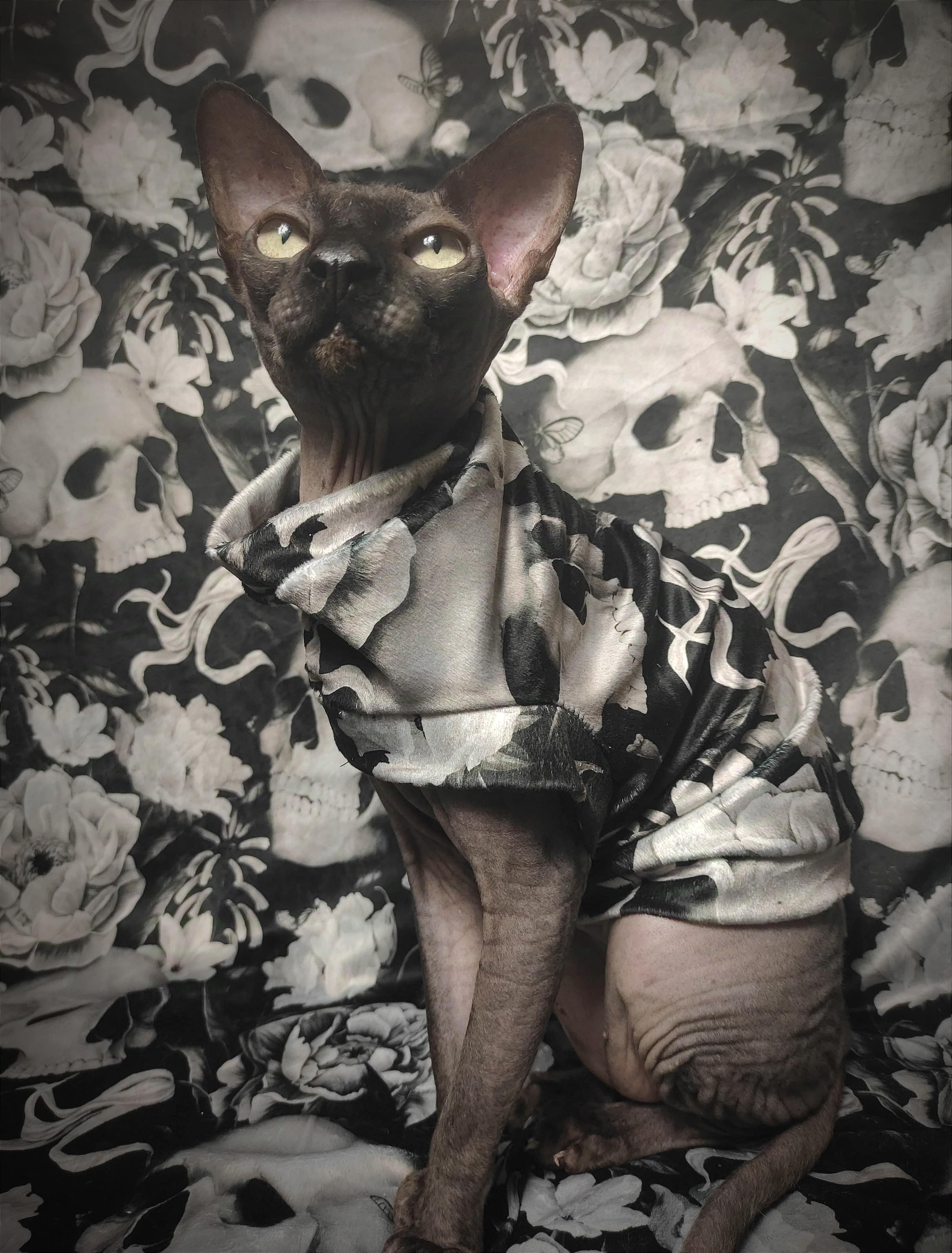 REGULAR size is for most adult hairless cats age 1 to 18. BAMBINO size fits hairless kittens age 6 months to 1 year and smaller adult cats. ANKLE BITER size fits kittens 15 weeks to 6 month olds. LIL NIPPER size fits hairless kittens age 8 weeks to 15 week olds for when they are with the breeder or for the trip home. Custom orders are welcome for larger and smaller cats - pricing is the same - $27.50