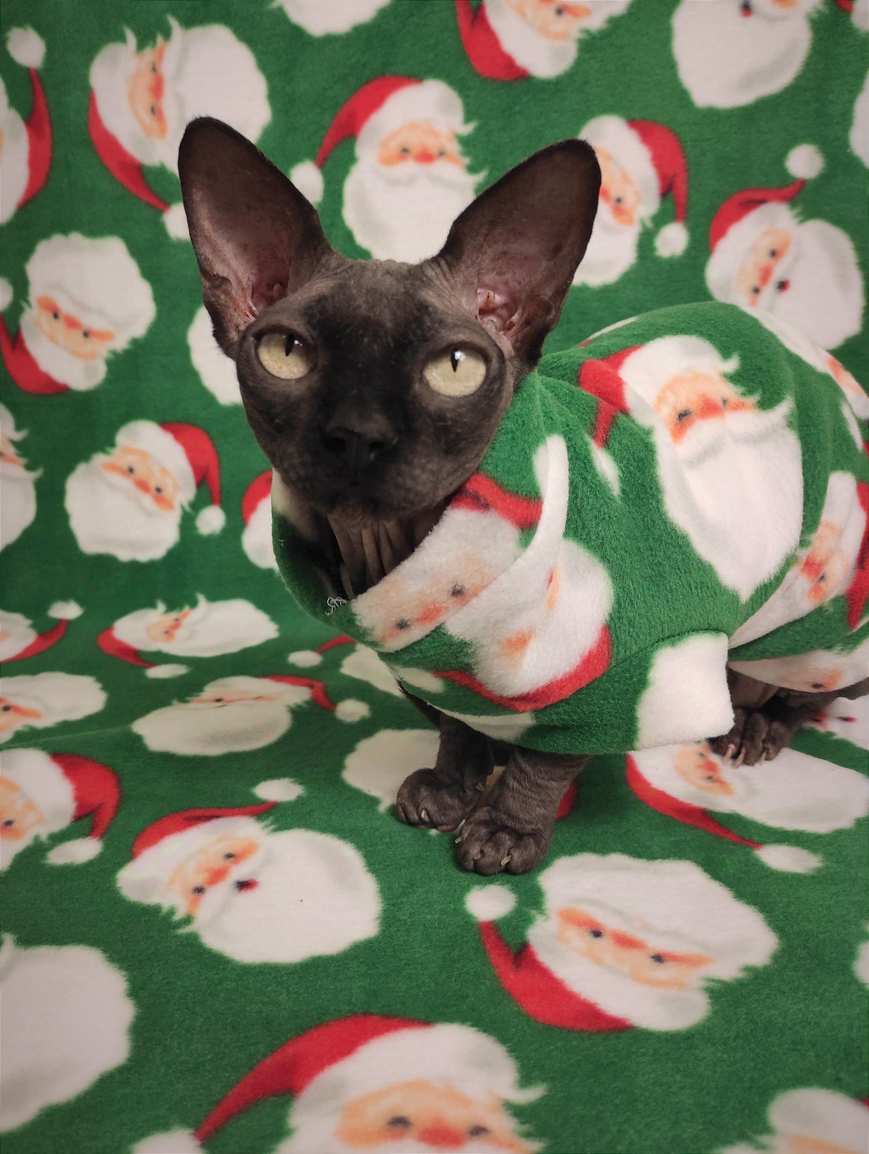 REGULAR size is for most adult hairless cats age 1 to 18. BAMBINO size fits hairless kittens age 6 months to 1 year and smaller adult cats. LIL NIPPER size fits hairless kittens age 8 weeks to 15 week olds for when they are with the breeder or for the trip home. Custom orders are welcome for larger and smaller cats - pricing is the same - $27.50