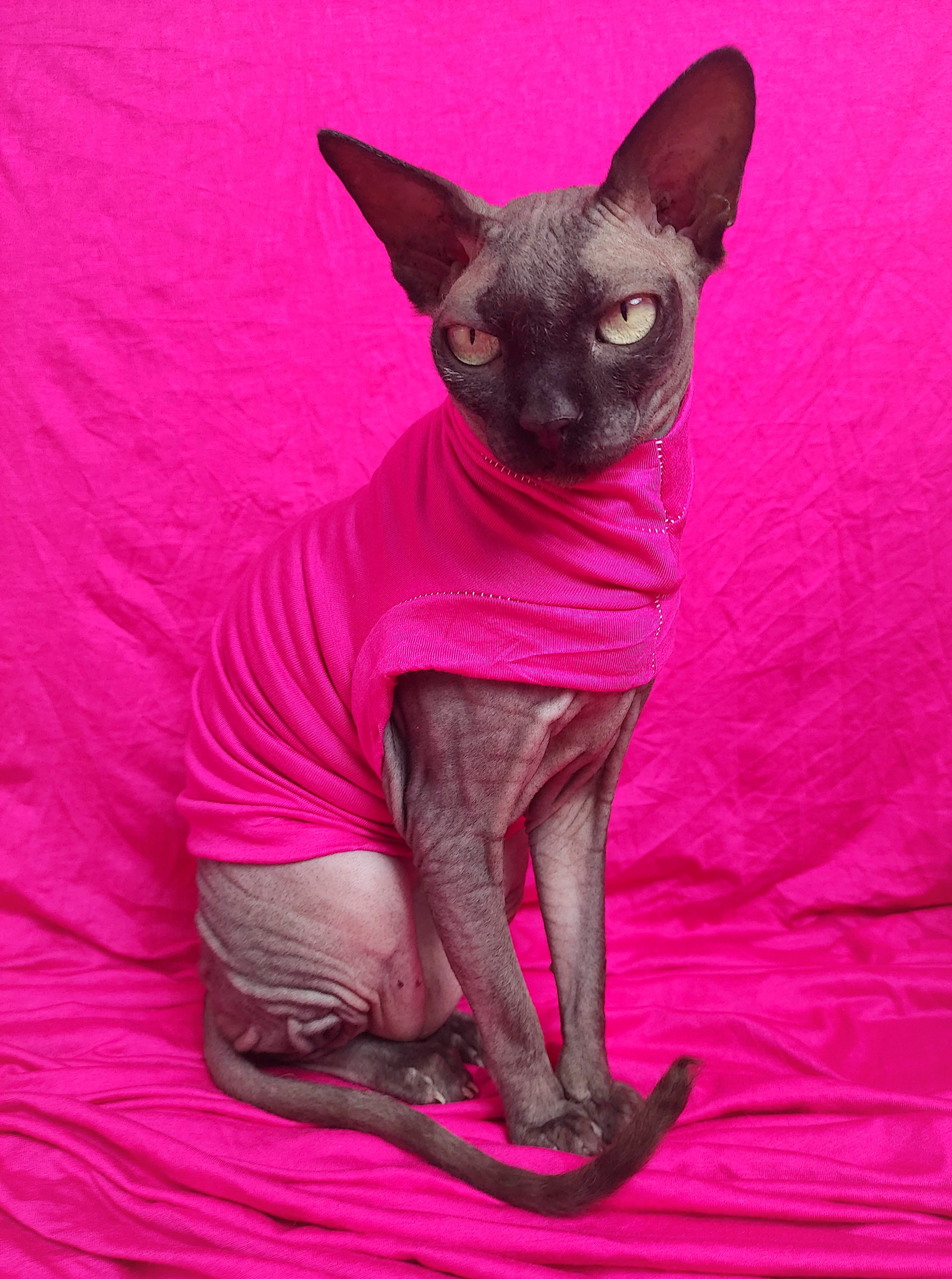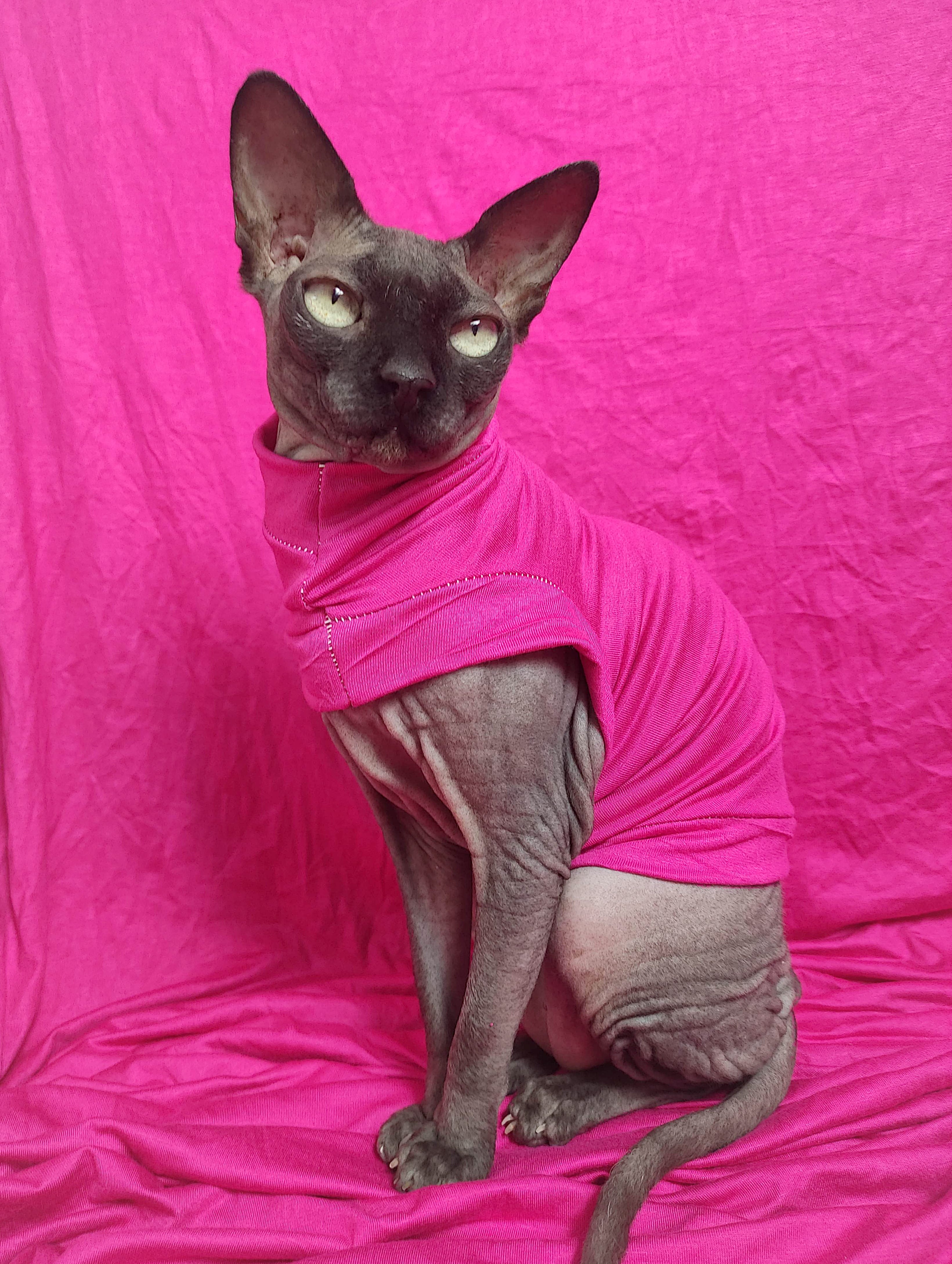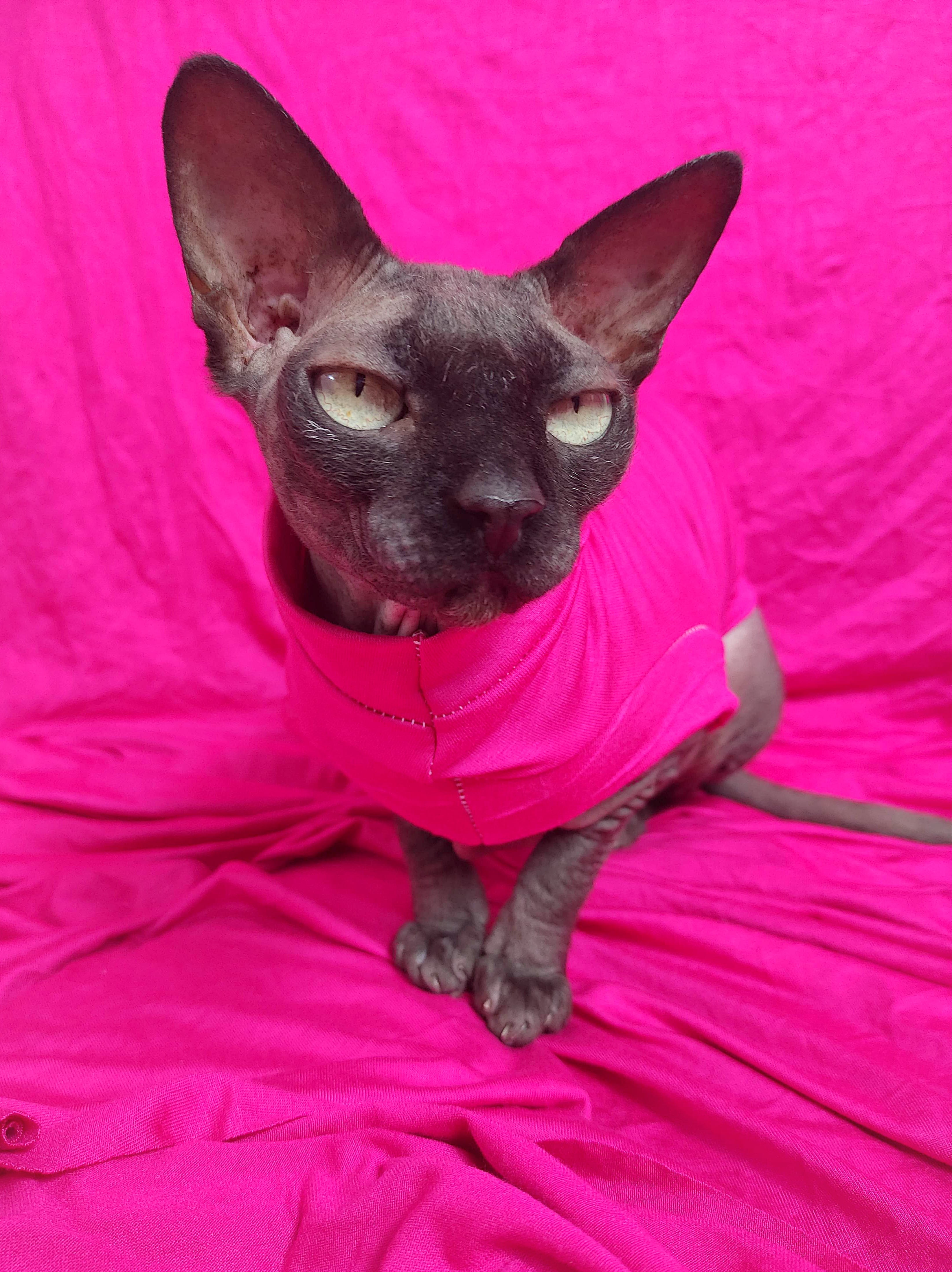 This is a Limited Edition cat shirt / sweater for your hairless Sphynx / Devon Rex / Cornish Rex / Peterbald, and even for some of our stylish furry friends. This sleeper is made from a stretchy cotton blend fabric. Made with special seams that minimize the seem profile. The Swag Sleepwear has a slimmer fit, larger armholes, and smaller trim to provide extra snuggly comfort for sleeping or catnapping! Regular Size limited to only 3. Bambino Size is limited to only 4, Ankle Biter Size is limited to 2, Lil Nipper Size is limited to 1. No more will be made when they are gone.