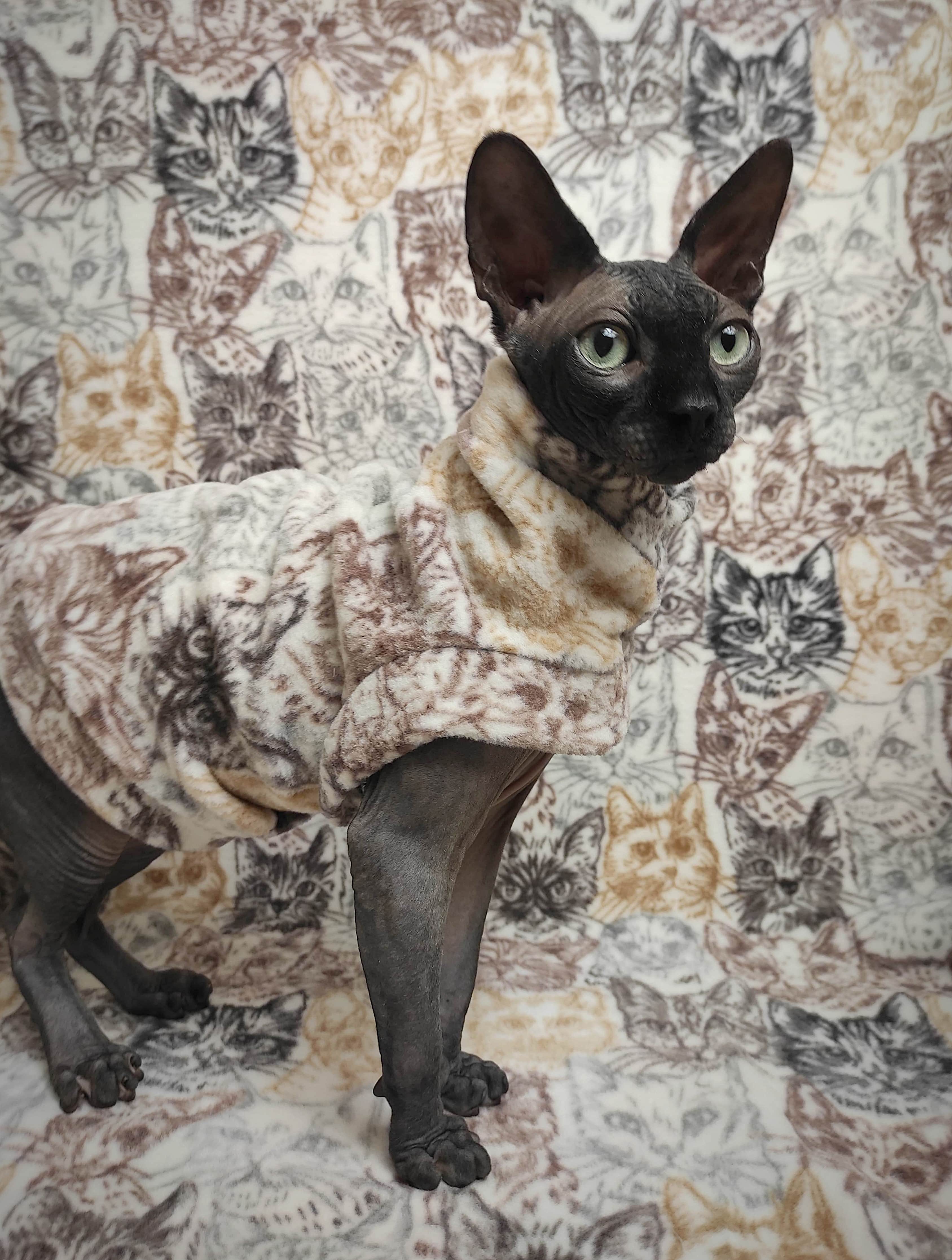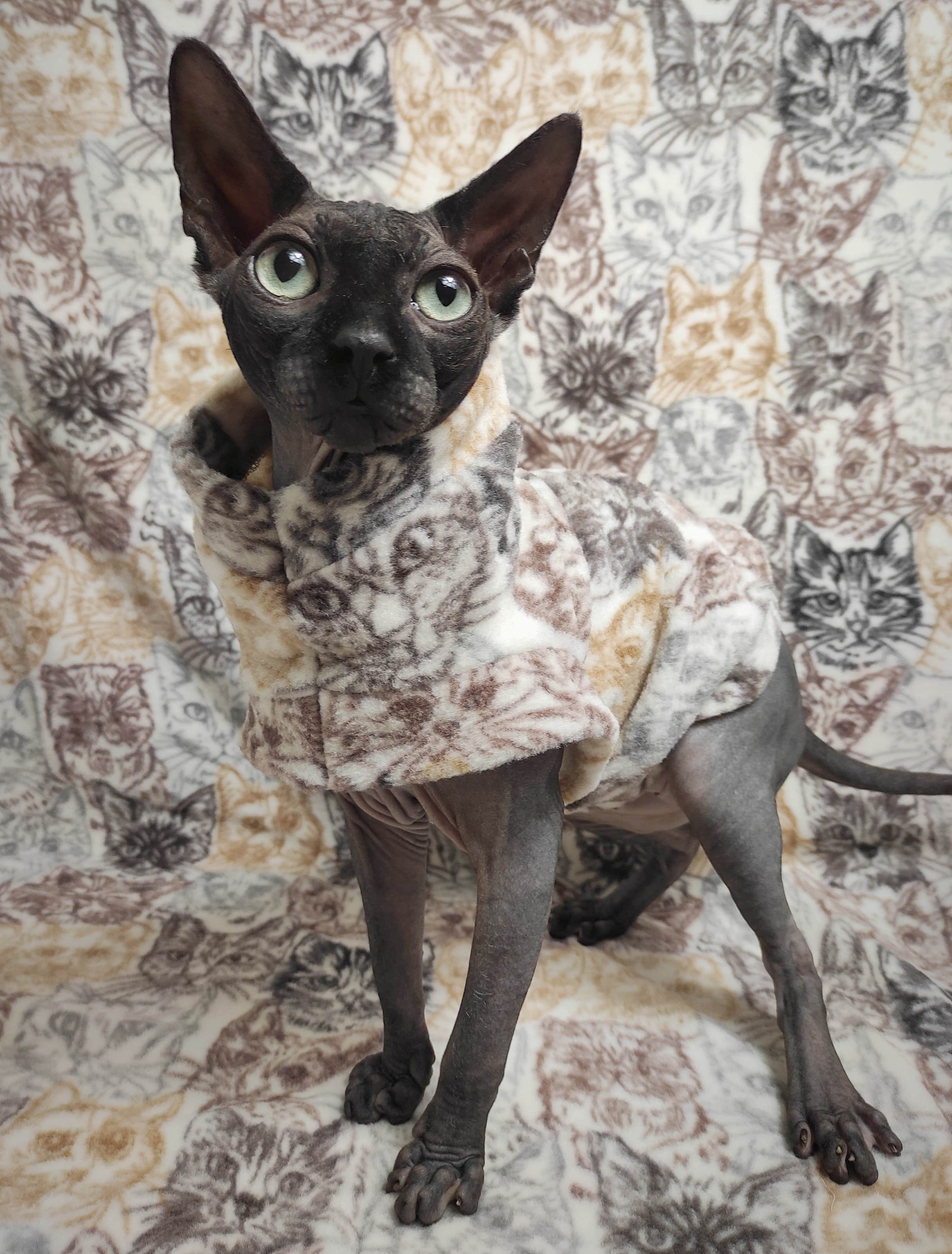 REGULAR size is for most adult hairless cats age 1 to 18. BAMBINO size fits hairless kittens age 6 months to 1 year and smaller adult cats. LIL NIPPER size fits hairless kittens age 8 weeks to 15 week olds for when they are with the breeder or for the trip home. Custom orders are welcome for larger and smaller cats - pricing is the same - $27.50