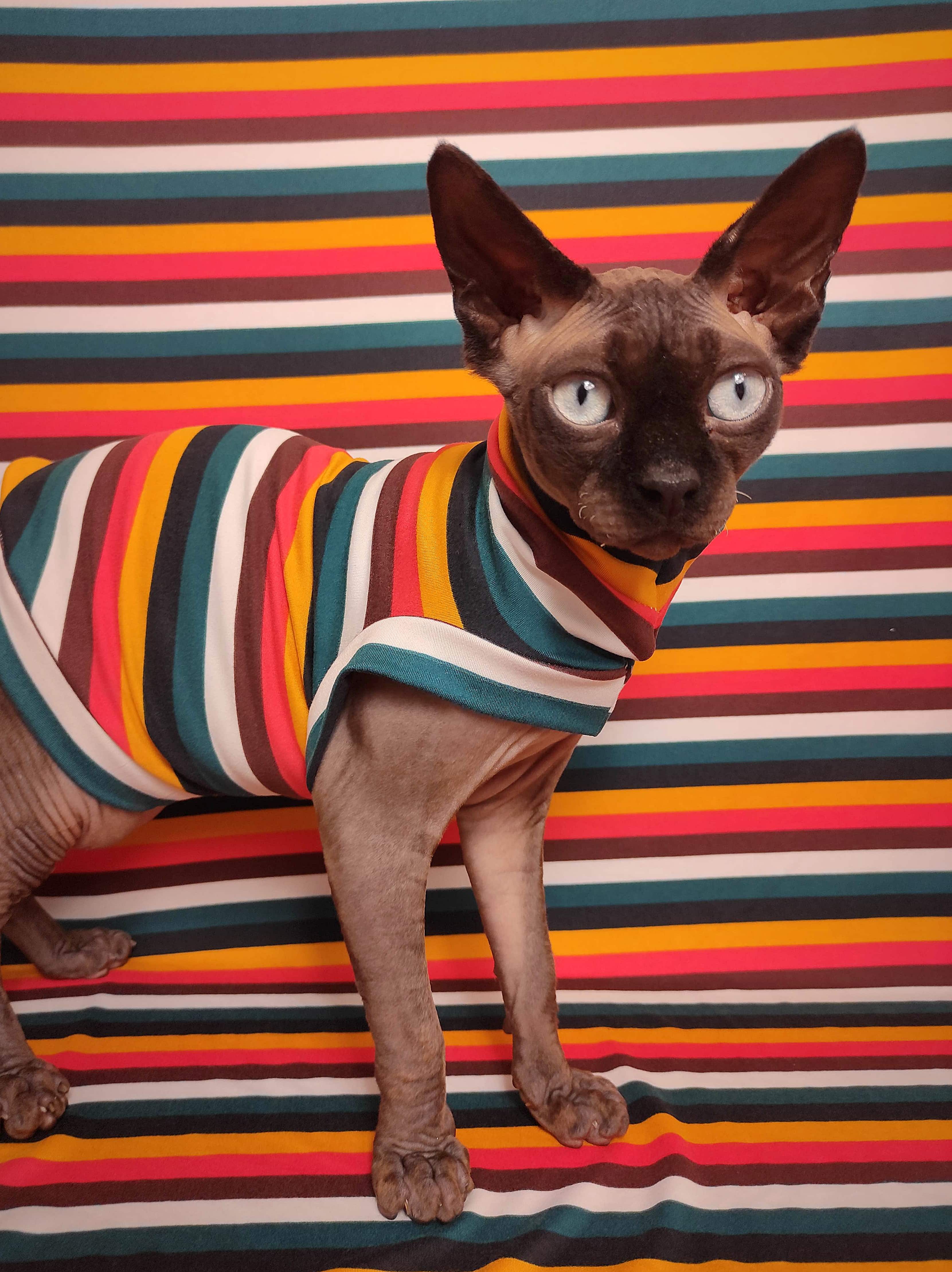 REGULAR size is for most adult hairless cats age 1 to 18. BAMBINO size fits hairless kittens age 6 months to 1 year and smaller adult cats. ANKLE BITER size fits kittens 15 weeks to 6 month olds. LIL NIPPER size fits hairless kittens age 8 weeks to 15 week olds for when they are with the breeder or for the trip home. Custom orders are welcome for larger and smaller cats - pricing is the same - $27.50
