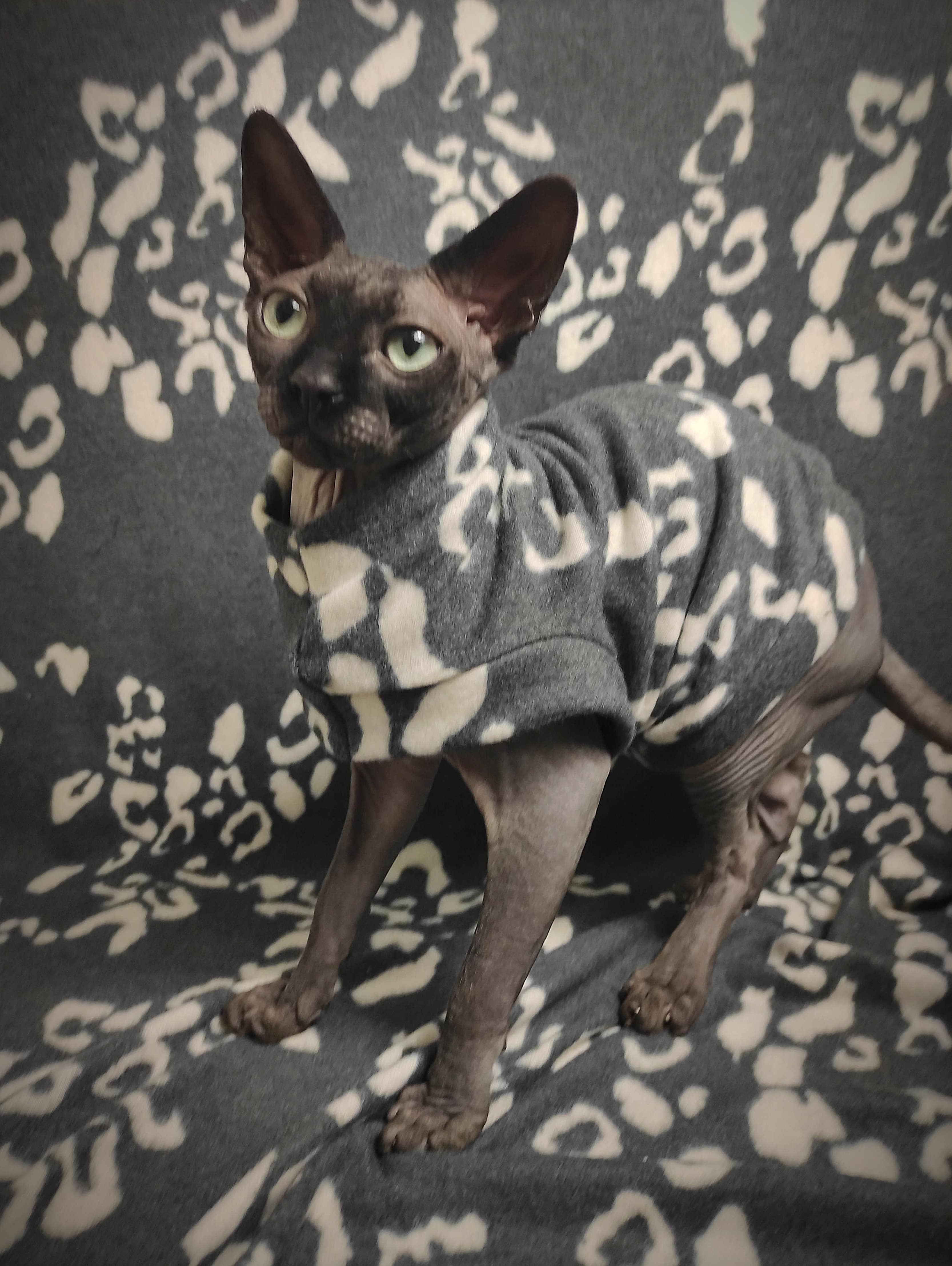 REGULAR size is for most adult hairless cats age 1 to 18. BAMBINO size fits hairless kittens age 6 months to 1 year and smaller adult cats. ANKLE BITER size fits kittens 15 weeks to 6 month olds. LIL NIPPER size fits hairless kittens age 8 weeks to 15 week olds for when they are with the breeder or for the trip home. Custom orders are welcome for larger and smaller cats - pricing is the same - $27.50
