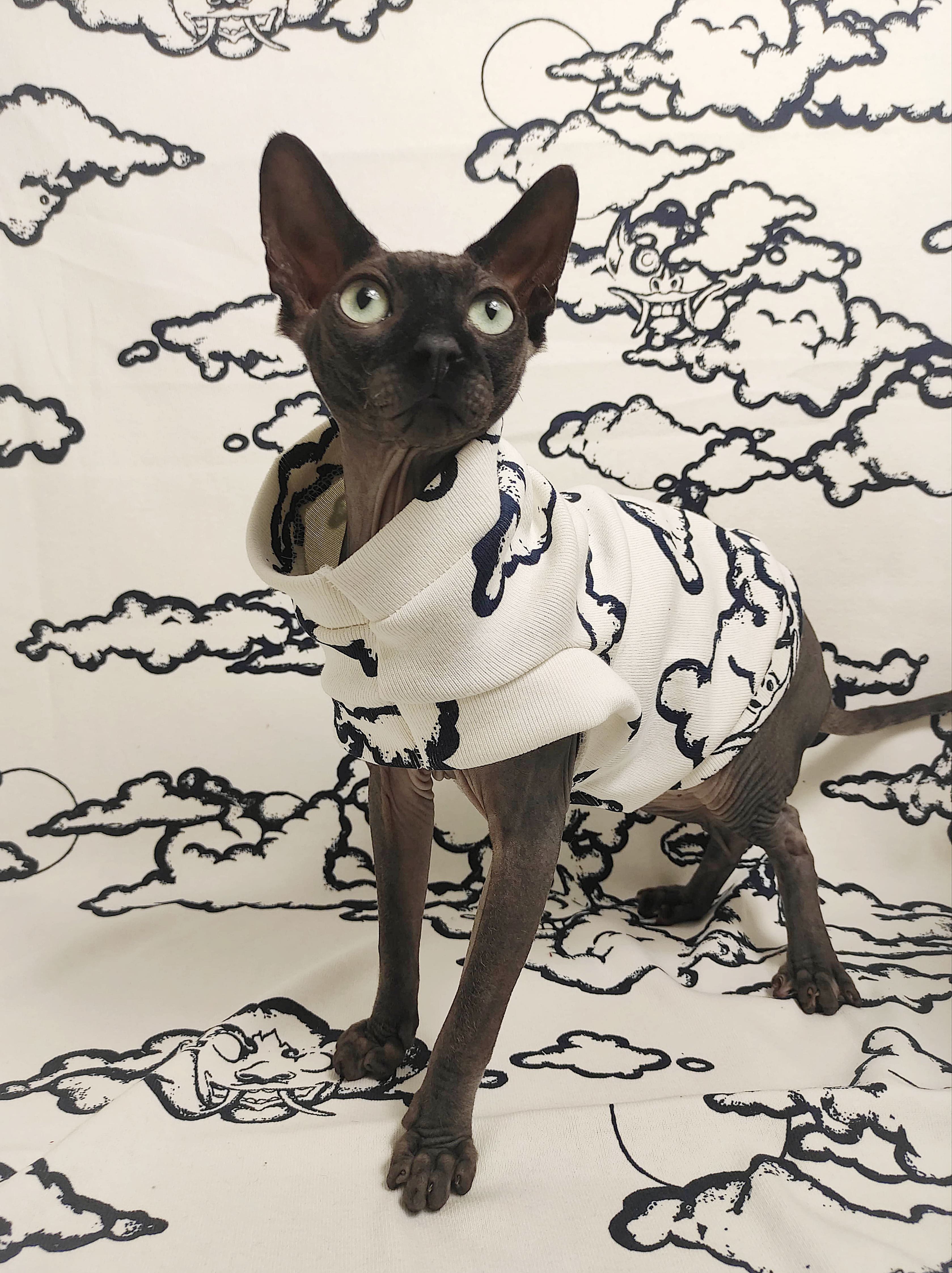 REGULAR size is for most adult hairless cats age 1 to 18. BAMBINO size fits hairless kittens age 6 months to 1 year and smaller adult cats. ANKLE BITER size fits kittens 15 weeks to 6 month olds. LIL NIPPER size fits hairless kittens age 8 weeks to 15 week olds for when they are with the breeder or for the trip home. Custom orders are welcome for larger and smaller cats - pricing is the same - $27.50