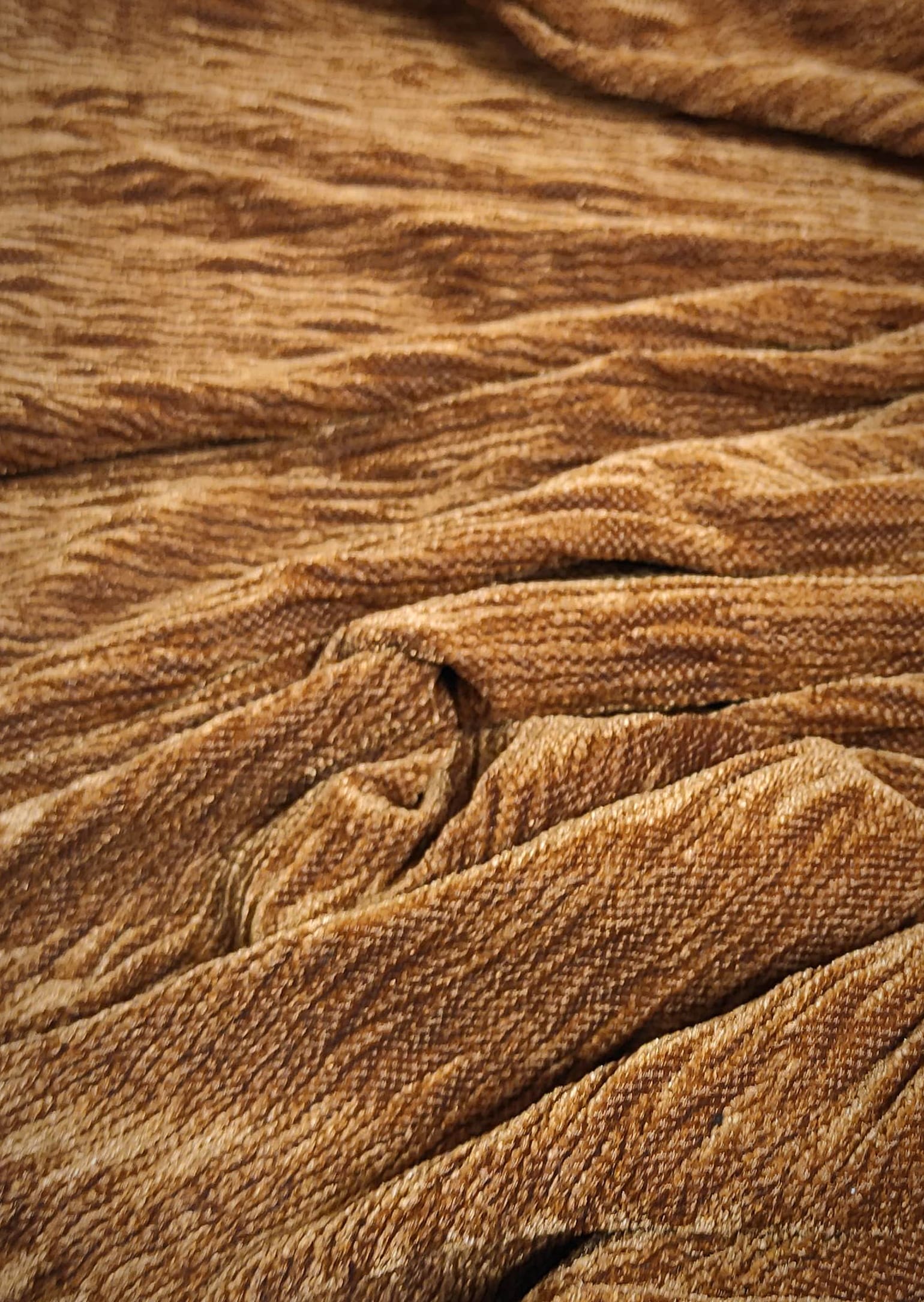 This is a midweight stretchy puckered brassy velvet.