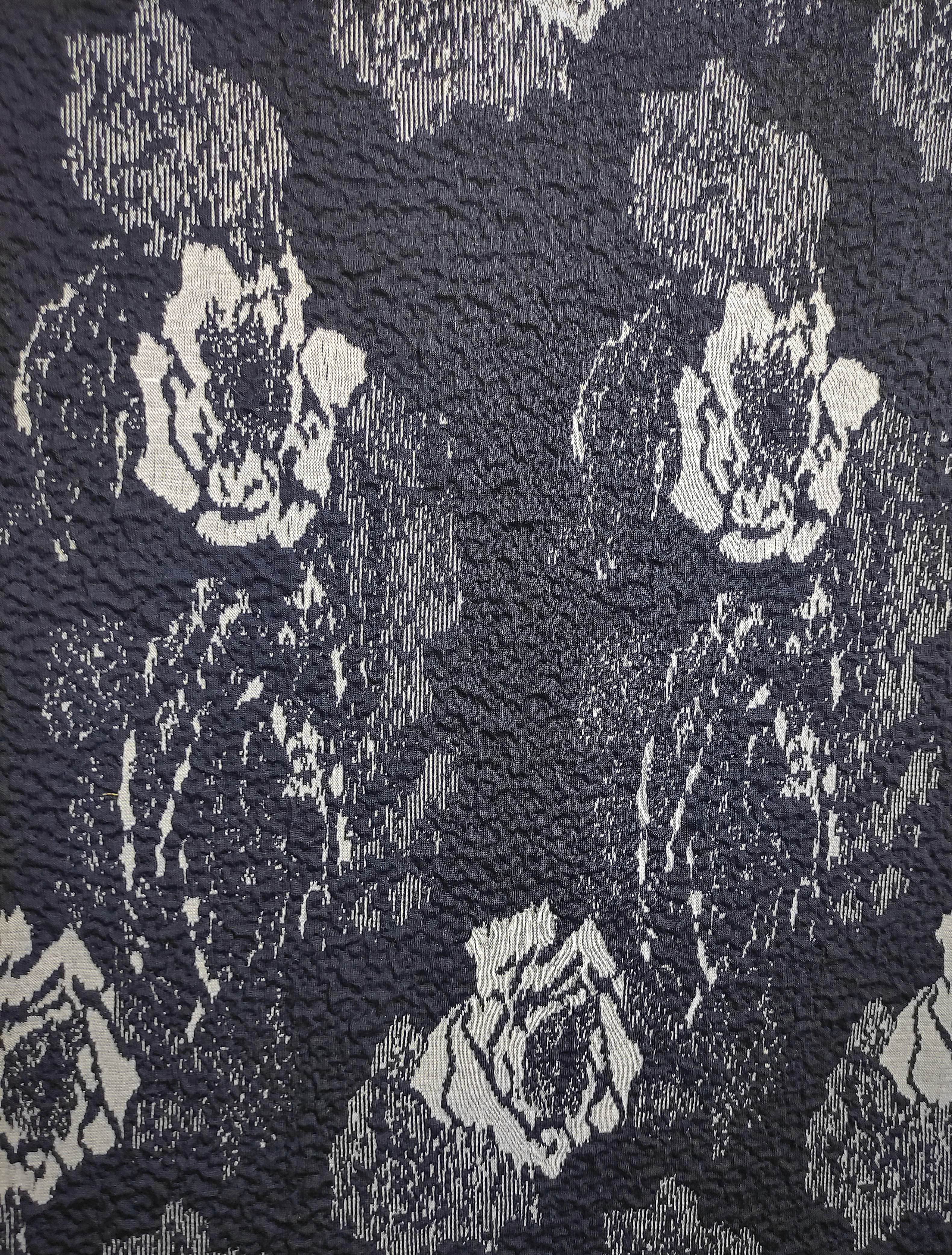This is a beautiful thick cotton spandex stretchy dark blue and white woven abstract floral print fabric. Regular Size limited to only 9. Bambino Size is limited to only 10, Ankle Biter Size is limited to 2, Lil Nipper Size is limited to 2. No more will be made when they are gone.