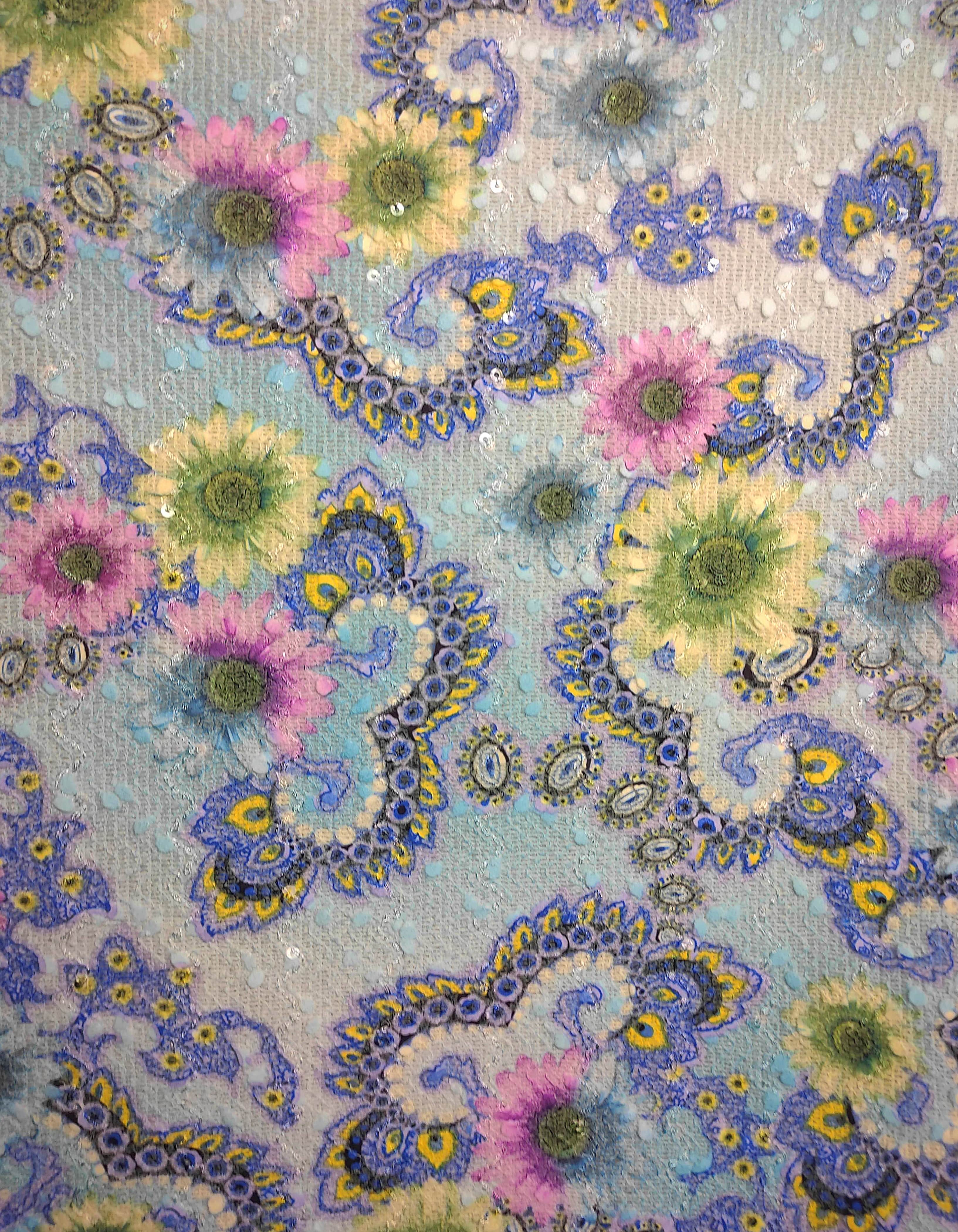 This is a beautiful lightweight partially see through woven zigzag fabric with printed floral pattern and a few sequins. Regular Size limited to only 9. Bambino Size is limited to only 10, Ankle Biter Size is limited to 2, Lil Nipper Size is limited to 2. No more will be made when they are gone.