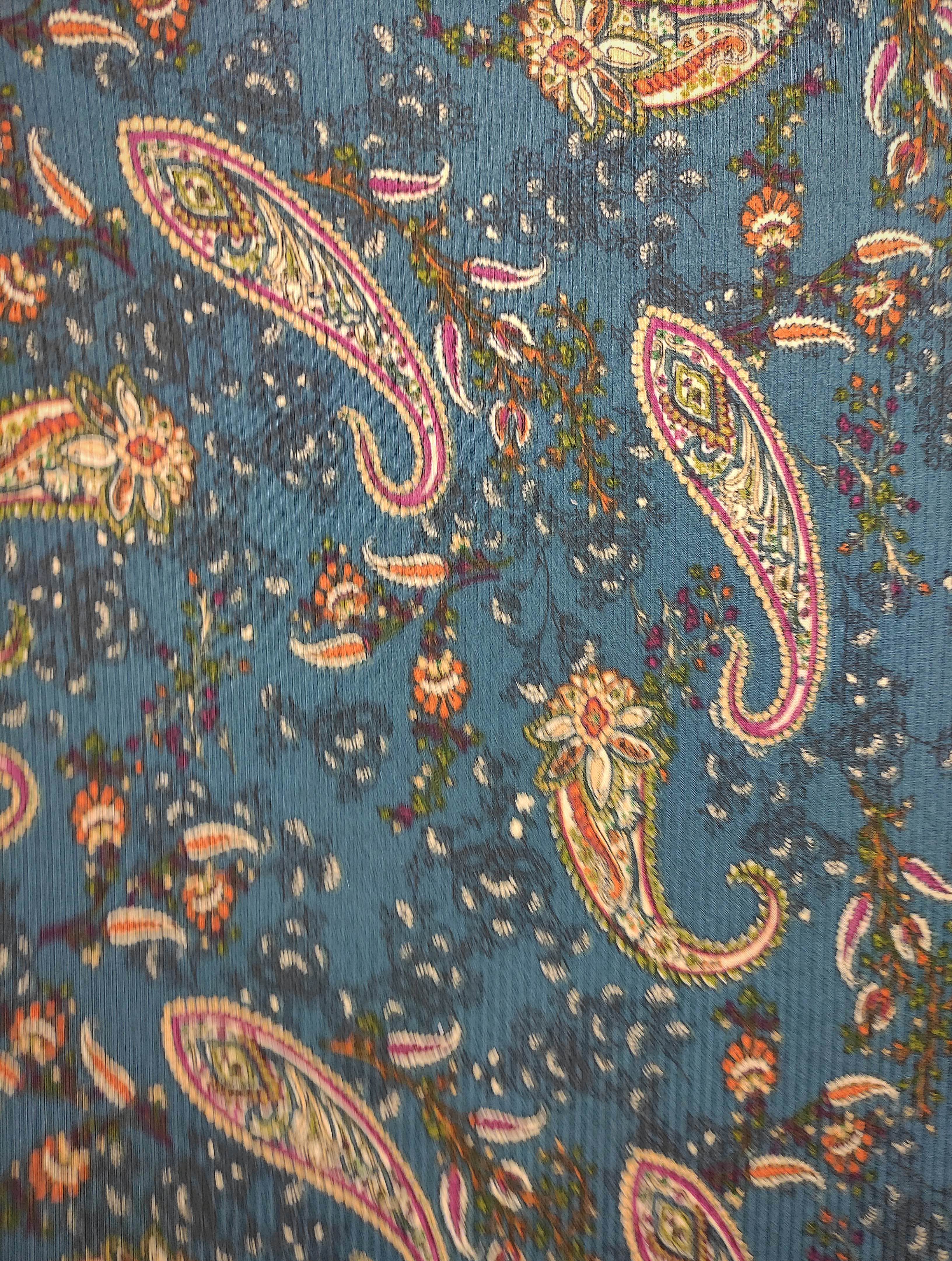 This is a beautiful ribbed midweight stretchy knit fabric with paisley print on teal background. Regular Size limited to only 9. Bambino Size is limited to only 10, Ankle Biter Size is limited to 2, Lil Nipper Size is limited to 2. No more will be made when they are gone.
